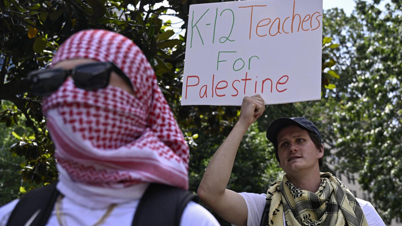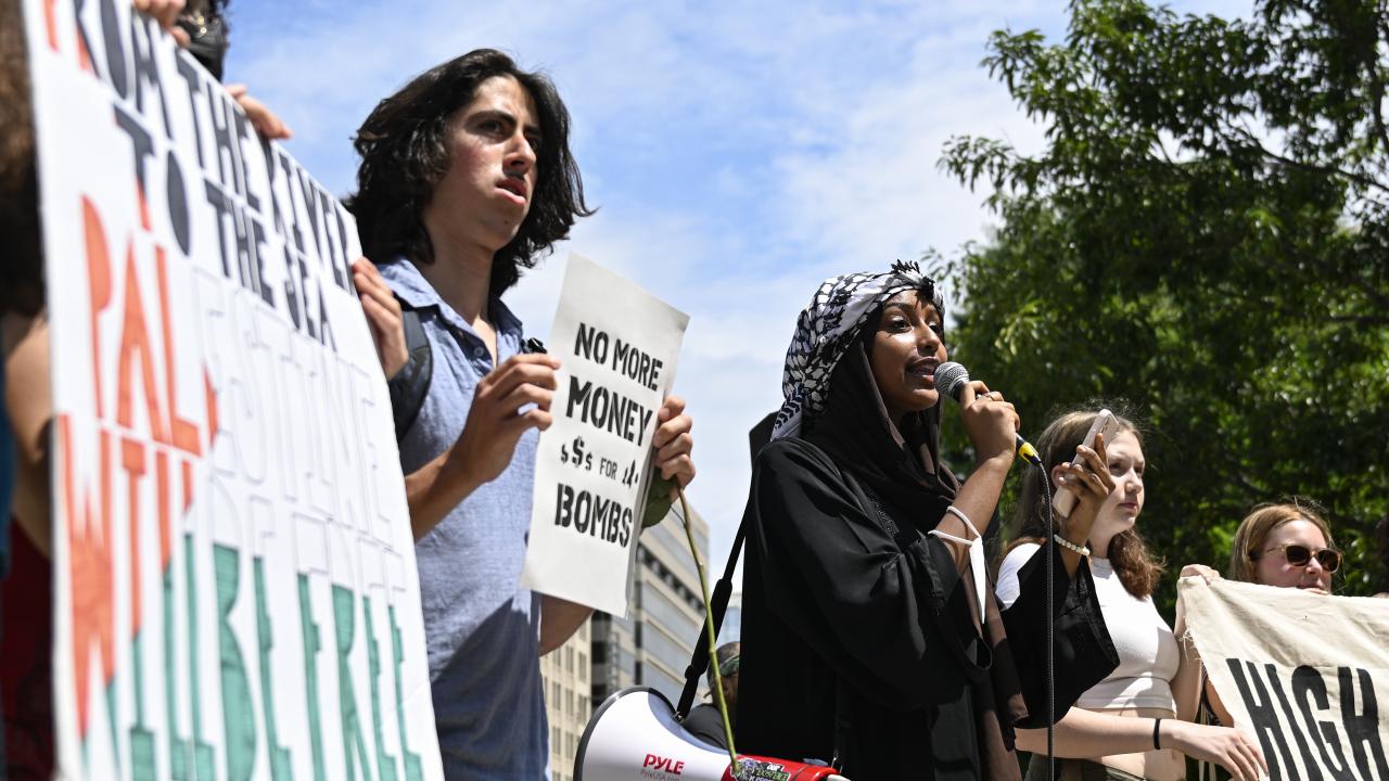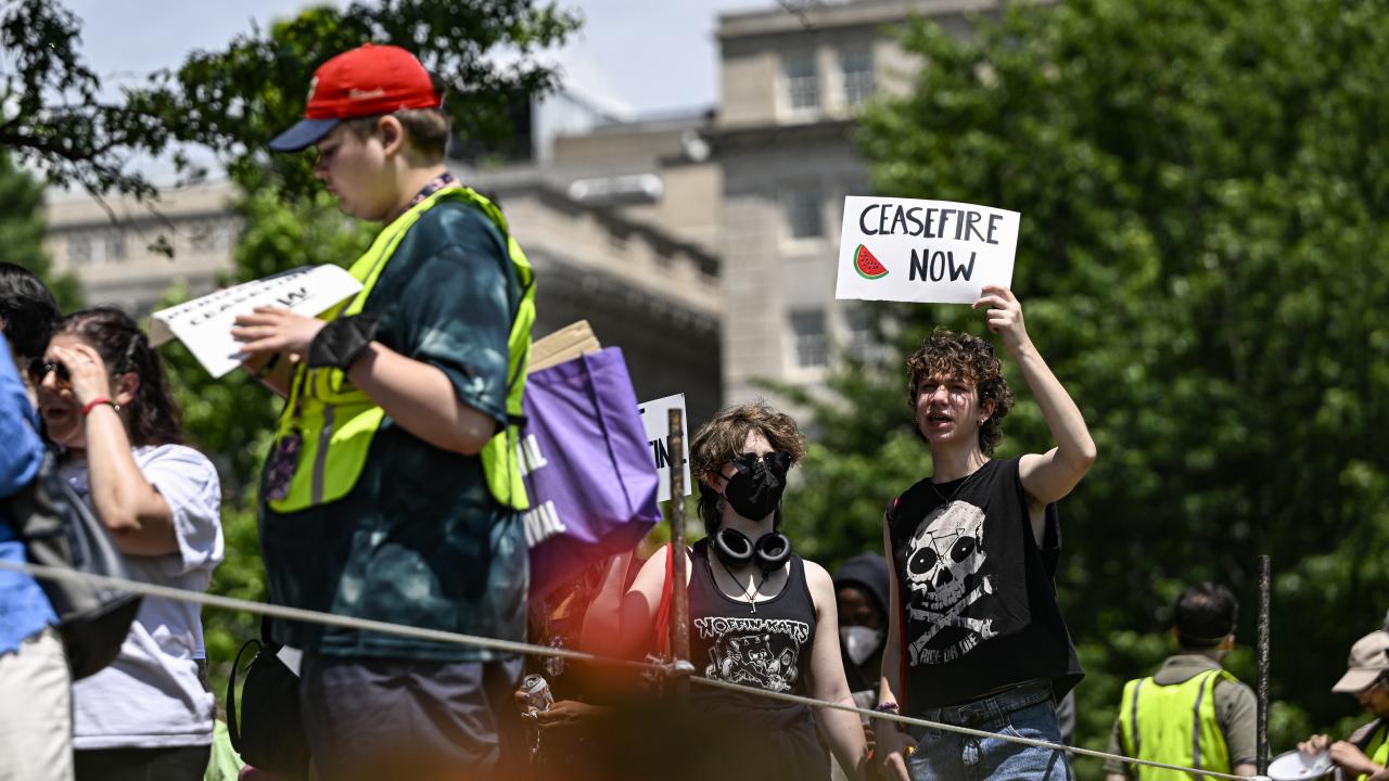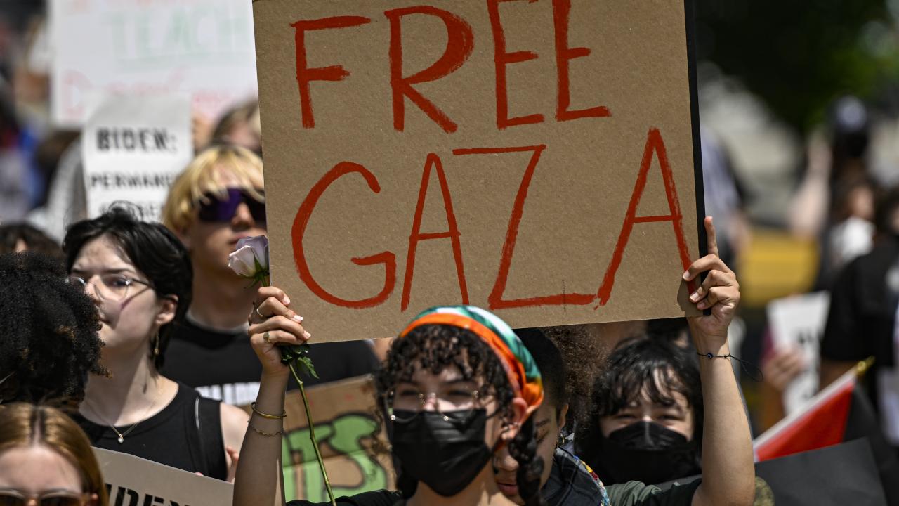 ABD'nin başkenti Washington'da bulunan çok sayıda üniversite öğrencisi genç, Gazze'de ateşkes çağrısı için Beyaz Saray'ın önünde bulunan Lafayette Parkı'nda bir araya geldi.