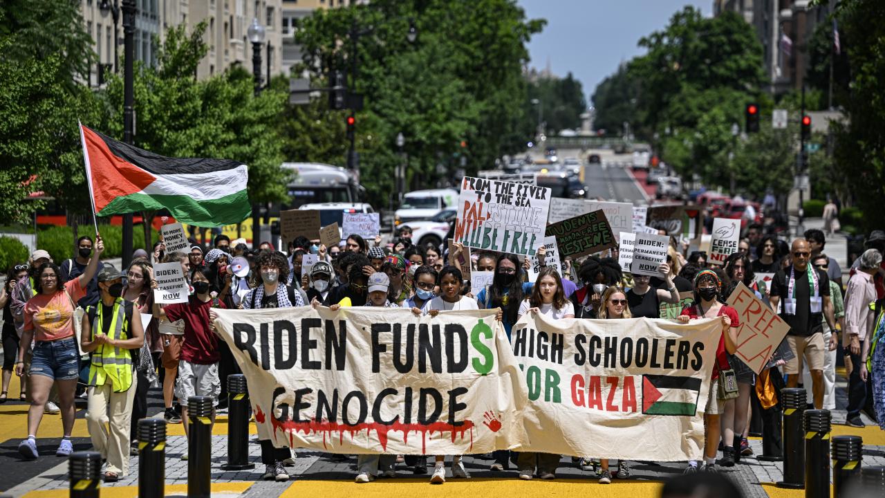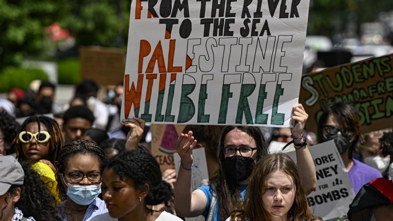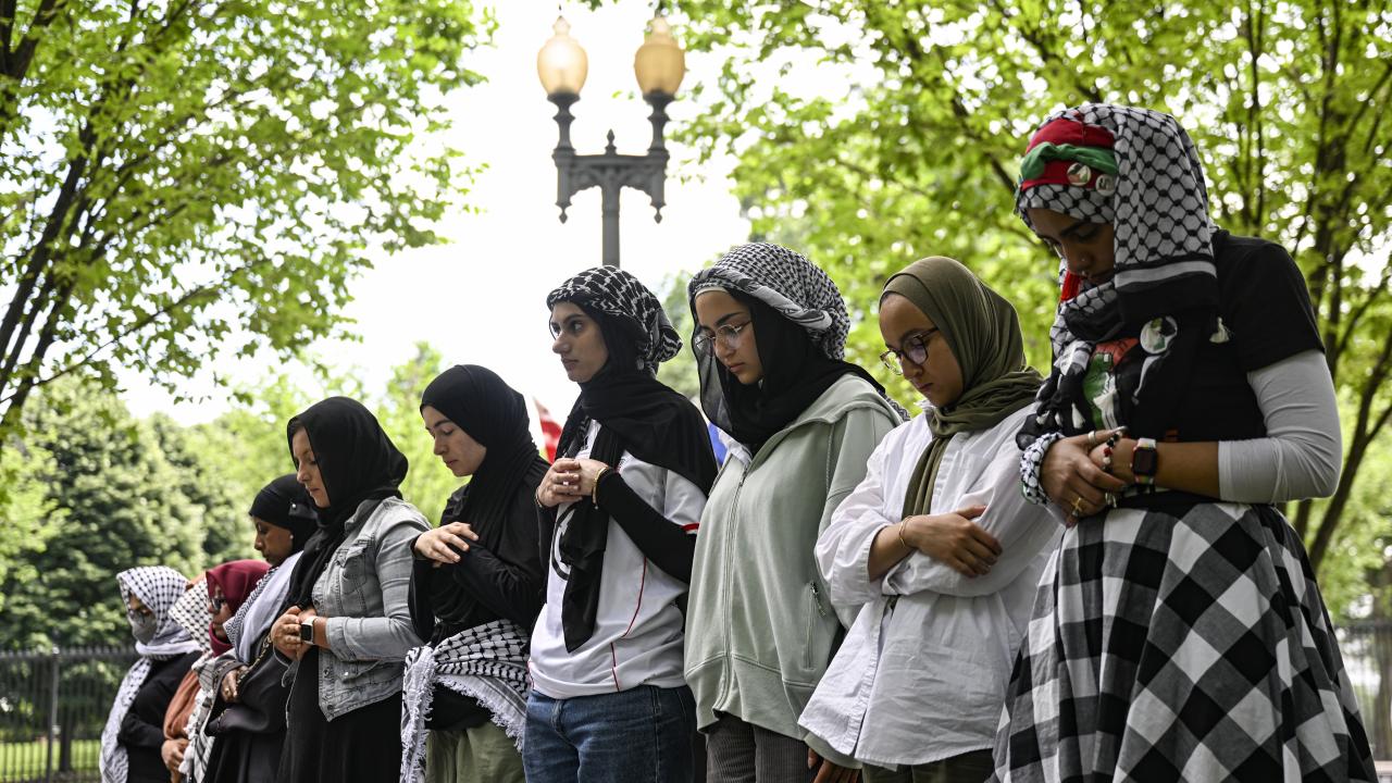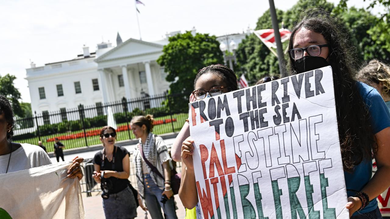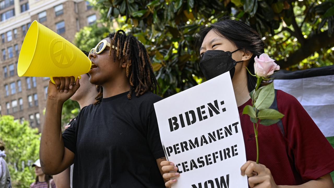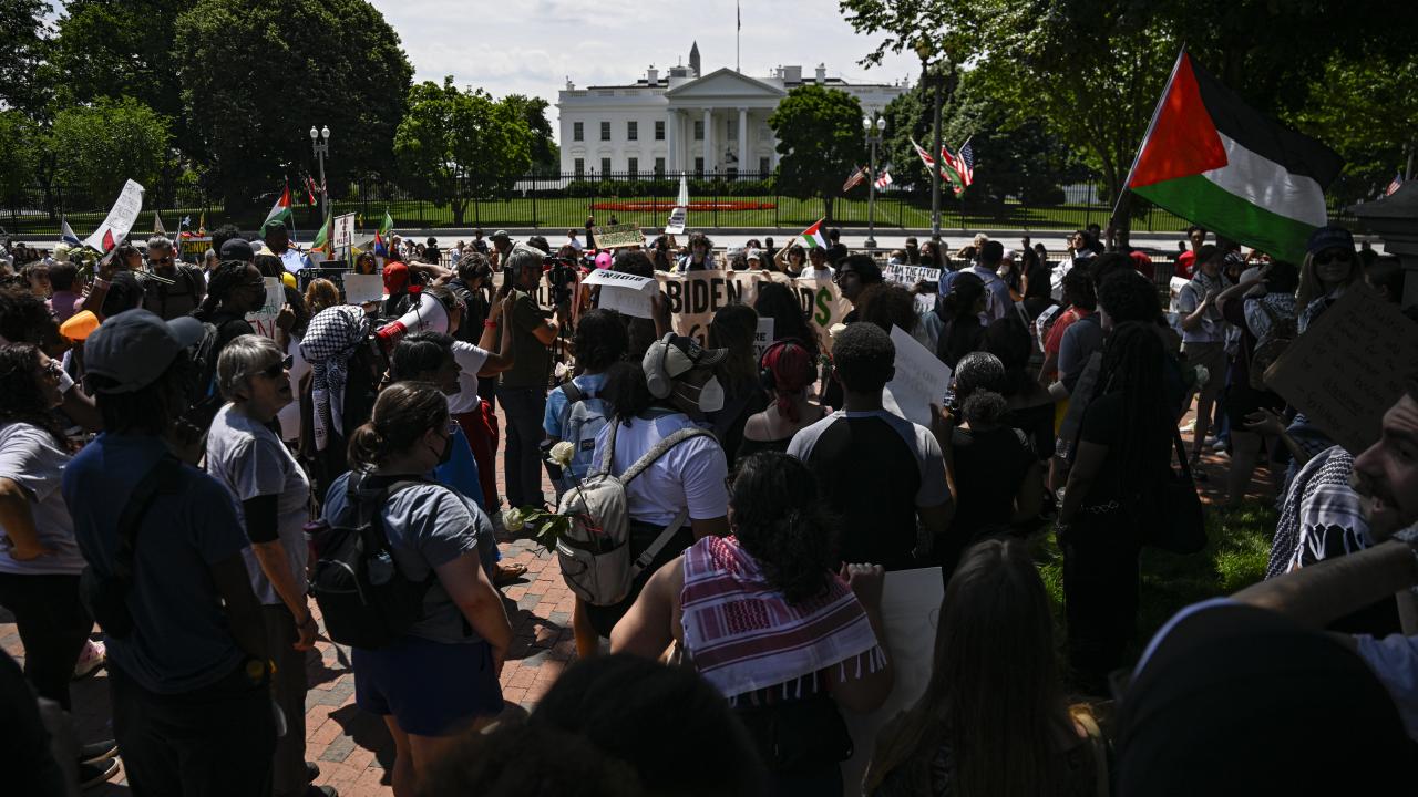 Beyaz Saray önünde toplanan çok sayıda üniversite öğrencisi, Gazze`de ateşkes çağrısı yaptı ve Filistin`e desteklerini dile getirdi.