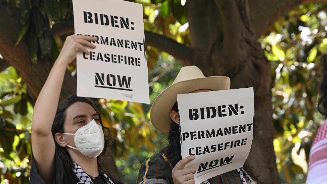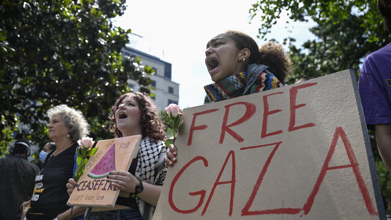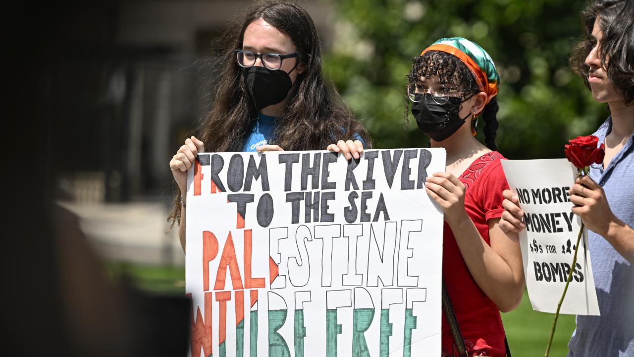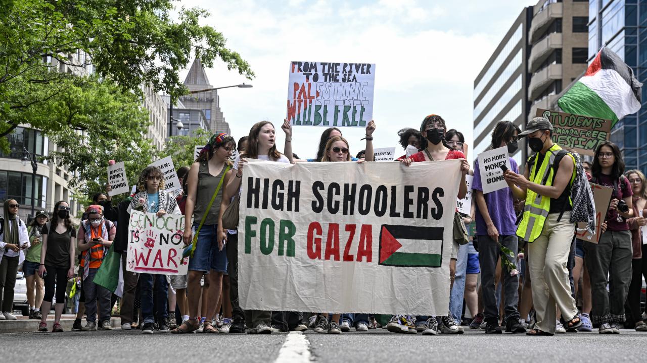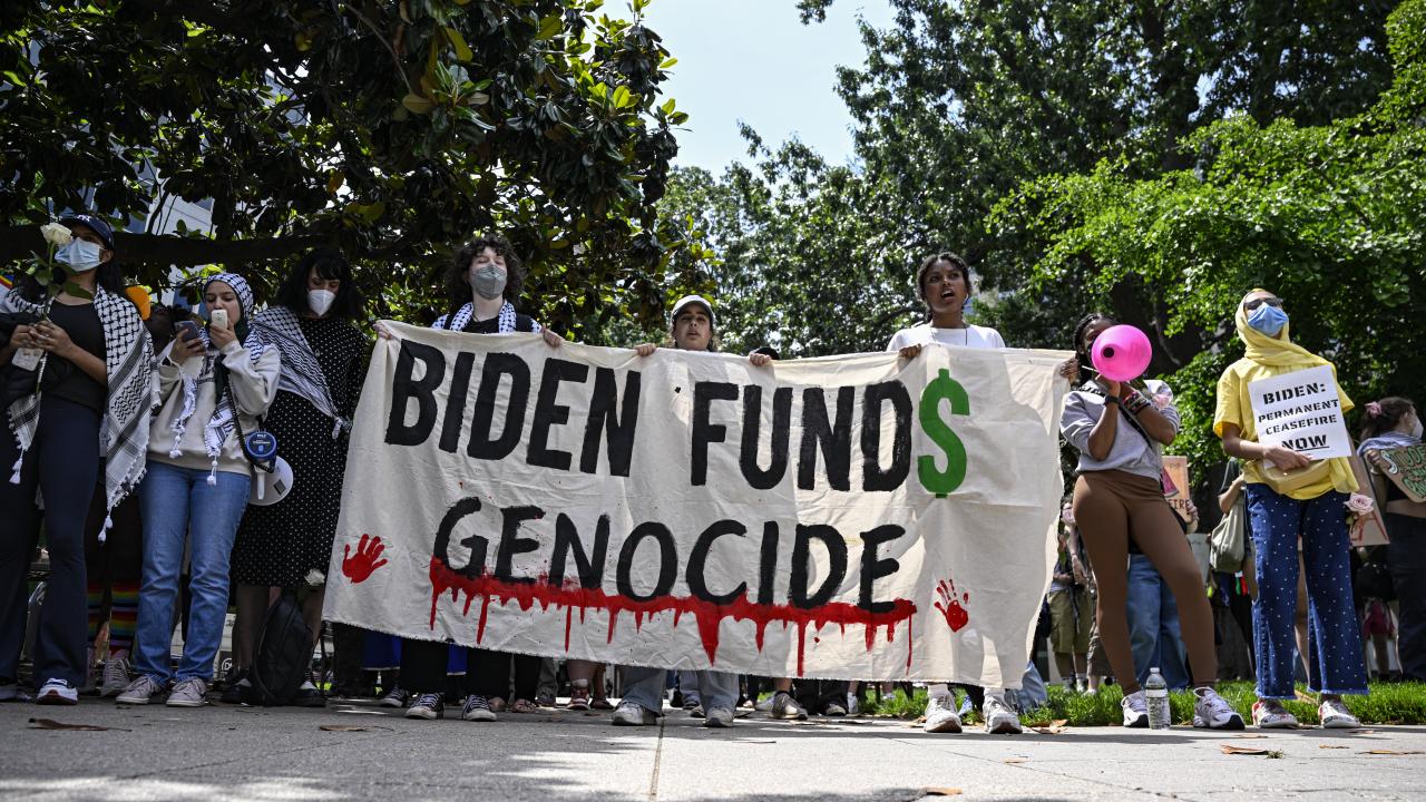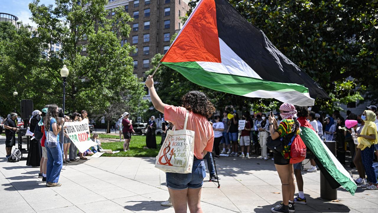 Beyaz Saray önünde toplanan çok sayıda üniversite öğrencisi, Gazze`de ateşkes çağrısı yaptı ve Filistin`e desteklerini dile getirdi.