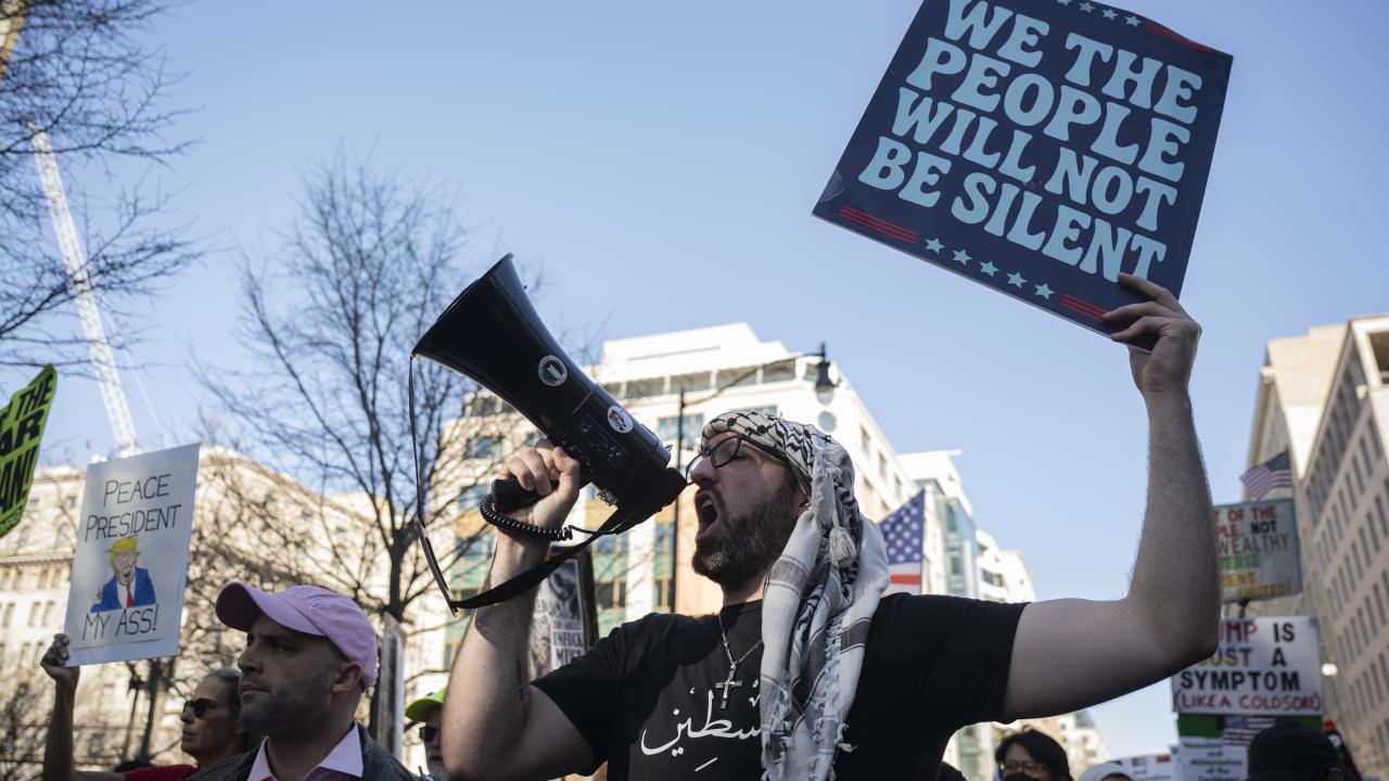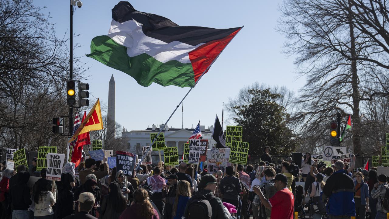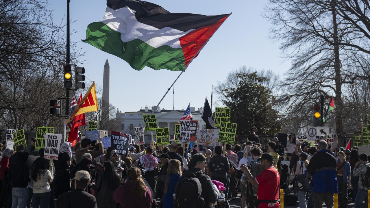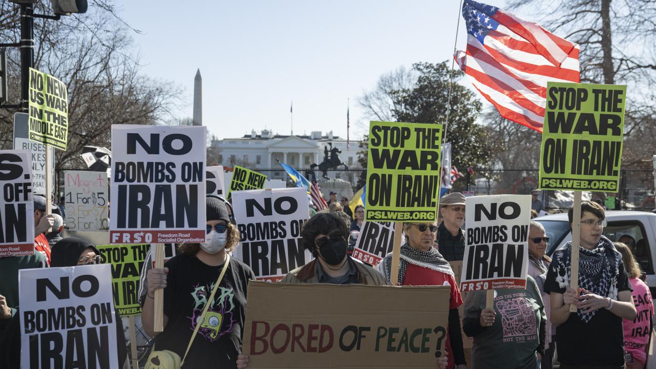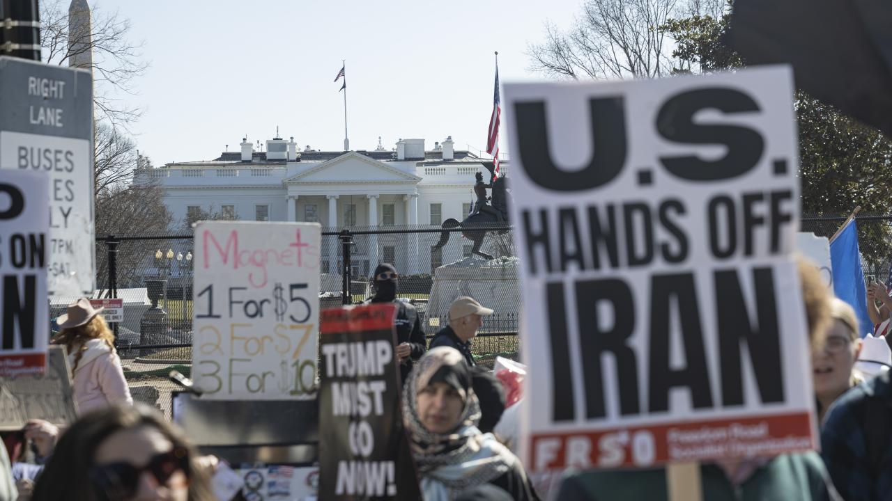 Amerika Birleşik Devletleri'nin başkenti Washington'da Beyaz Saray önünde toplanan göstericiler, ABD ve İsrail'in İran'a yönelik saldırılarını protesto etti. Savaş karşıtı sloganlar atan göstericiler, iki ülkenin İran'a karşı yürüttüğü askeri faaliyetlere tepki gösterdi.