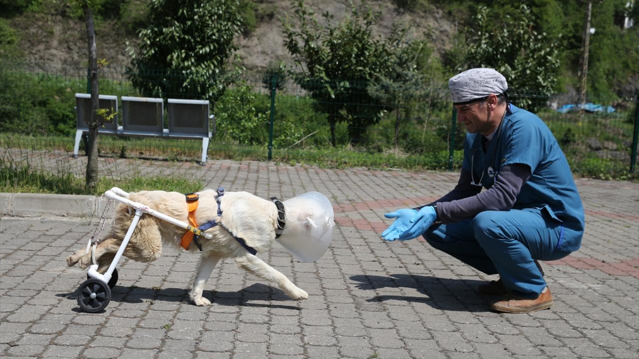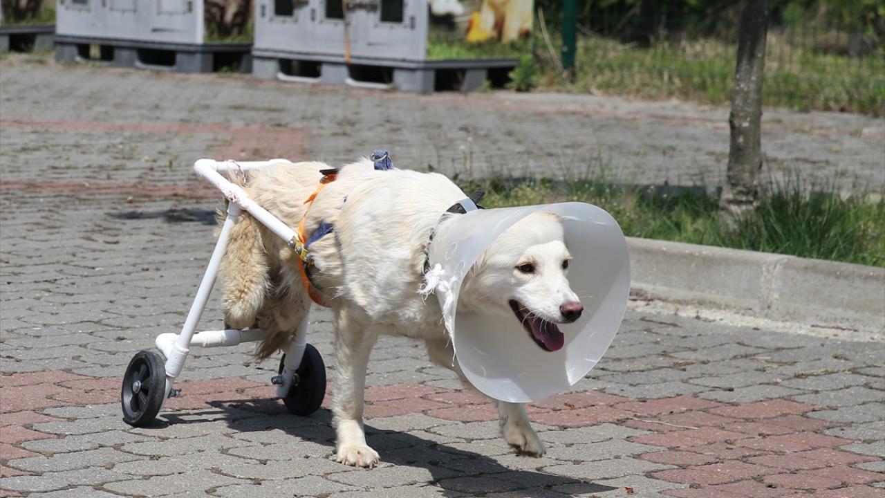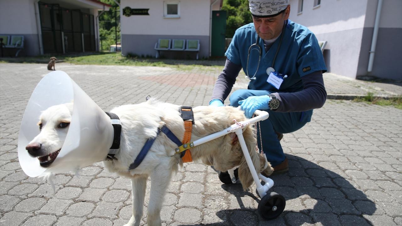 Köpeğin kazadan kaynaklı yaralarına dikiş attıklarını, bir ay boyunca ilaç tedavisi uyguladıklarını aktaran Meriç, "Bu hayvanı nasıl yürütebiliriz, ona nasıl yardımcı olabiliriz" diye düşünmeye başladıklarını anlattı.
