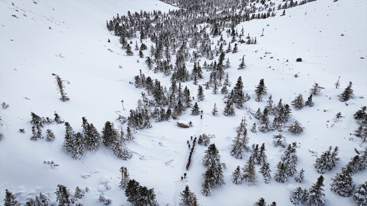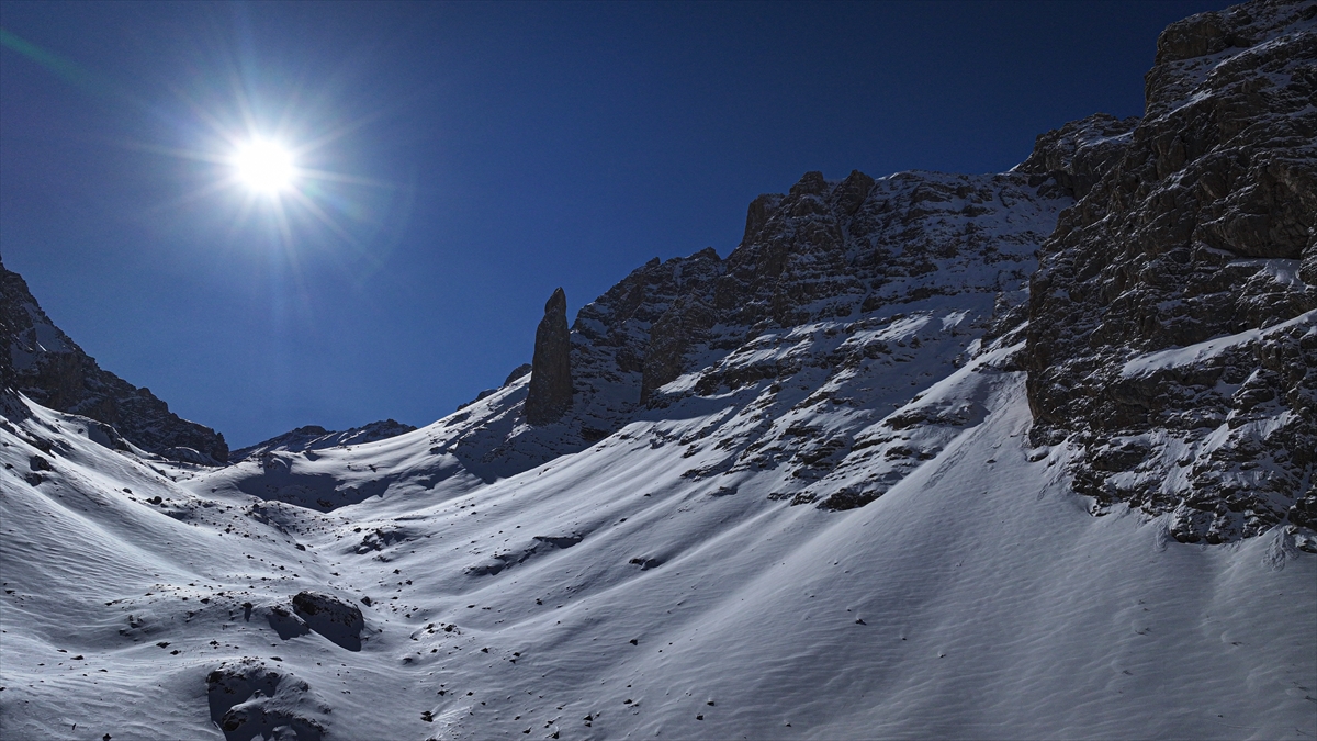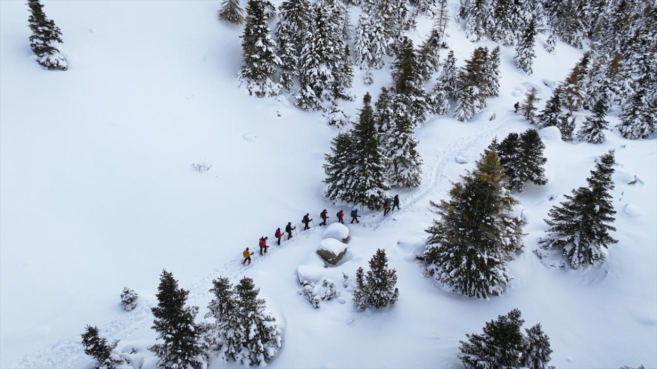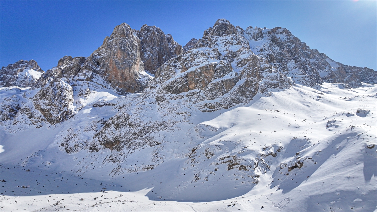 Beyaza bürünen Aladağlar Milli Parkı`ndaki kış manzarası dronla kaydedildi.