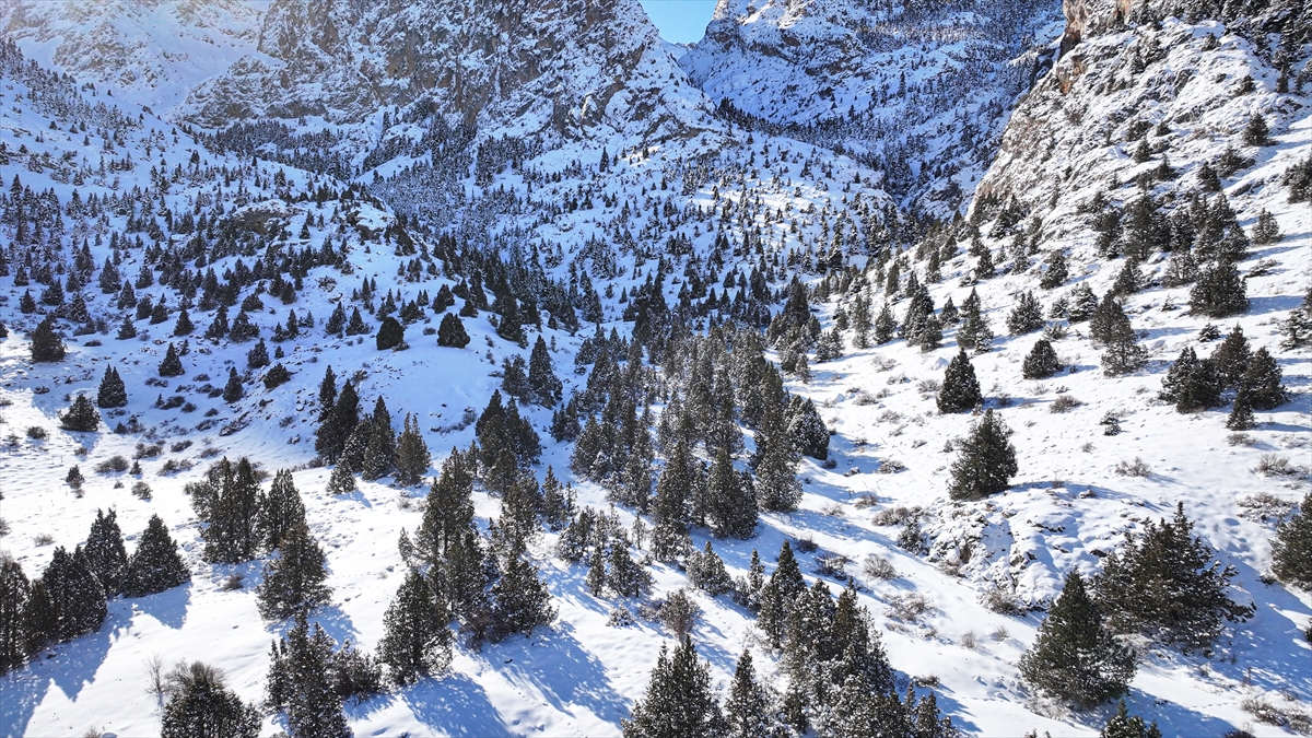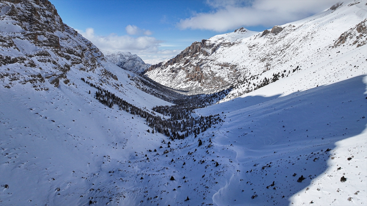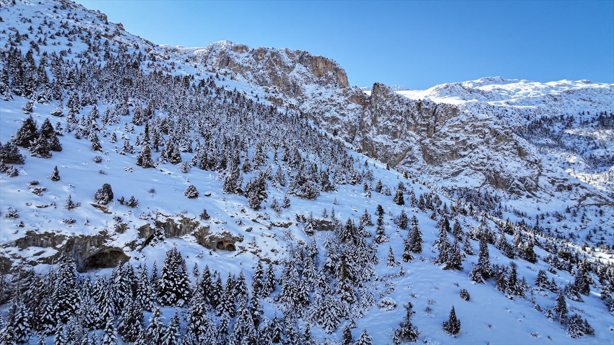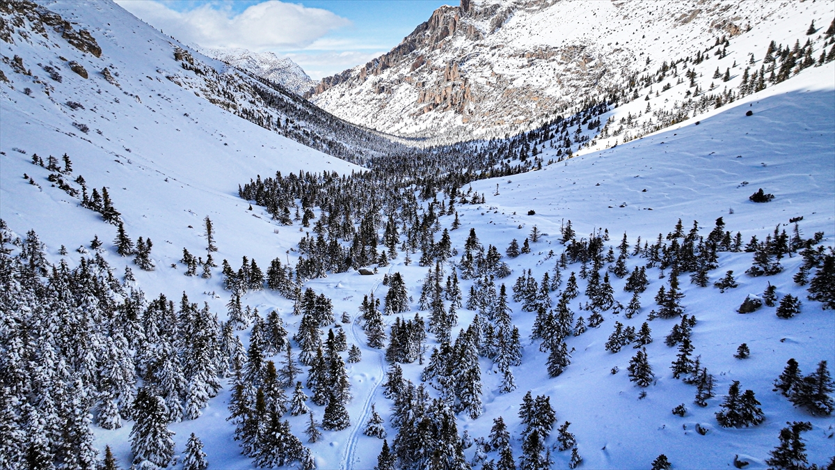 Adana, Niğde ve Kayseri sınırlarında yer alan Aladağlar Milli Parkı'nda kar yağışının ardından oluşan manzara dronla görüntülendi.