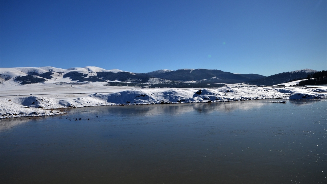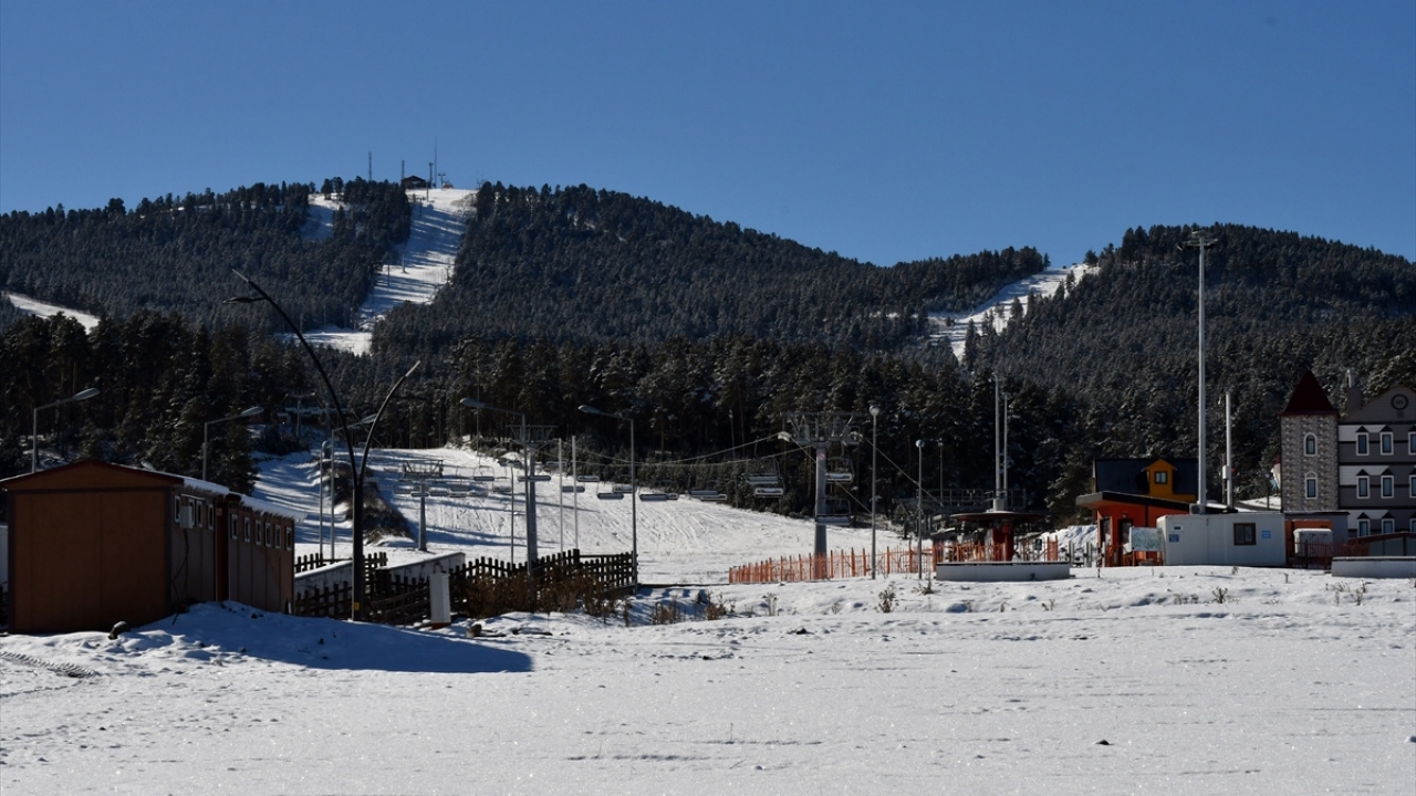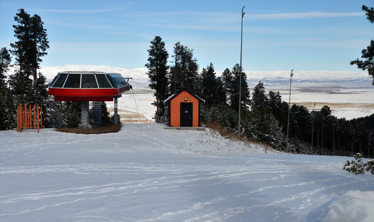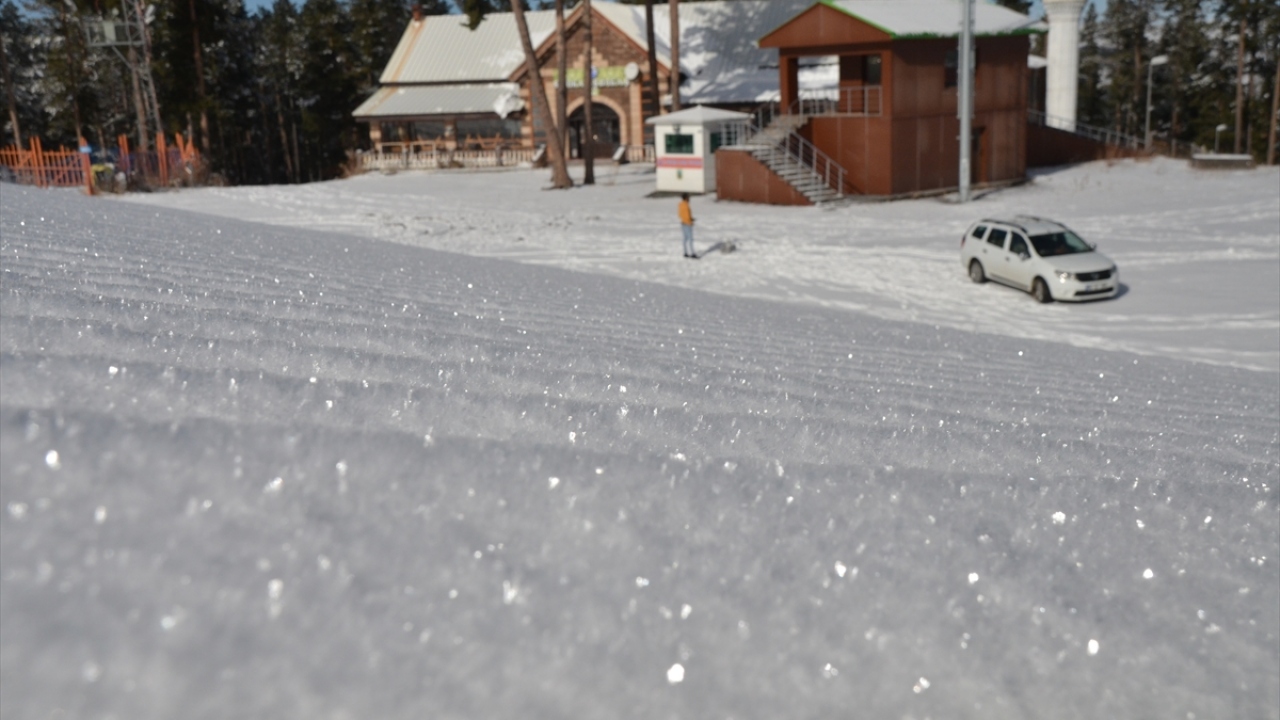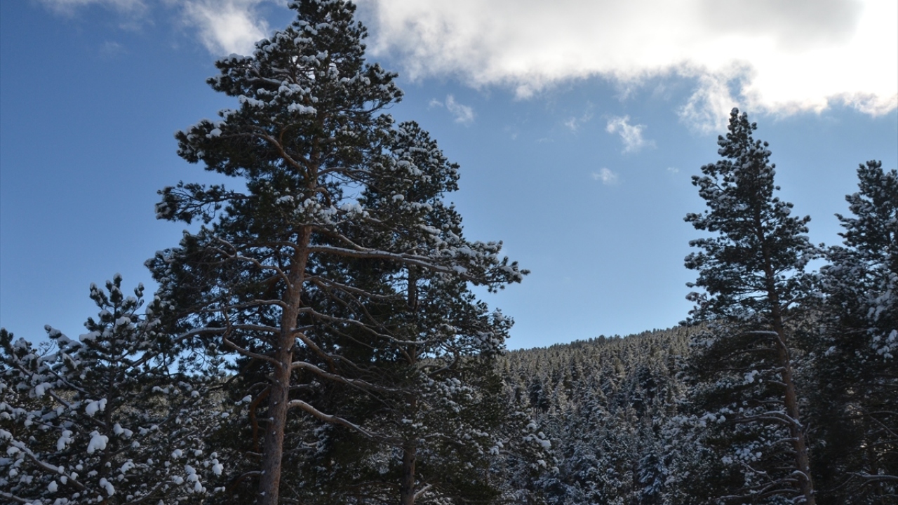 Küçük göletlerin buz tuttuğu ilçede, kayak merkezi ve dağların yanı sıra karla kaplanan sarı çam ormanlarındaki ağaçlar "beyaz gelinliğini" giydi.