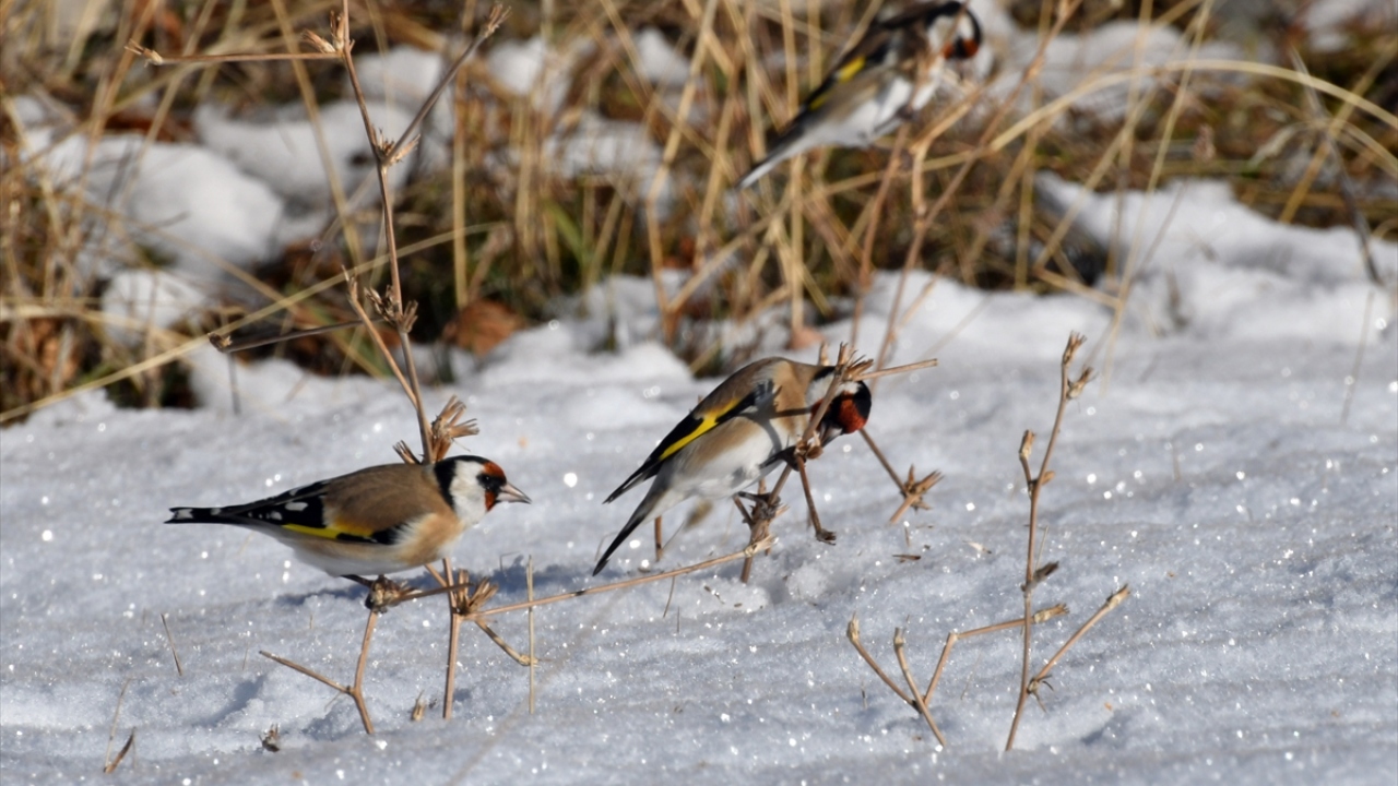 Karın yağmasıyla yiyecek bulmakta güçlük çeken şakrak kuşlarının, bitkilerin tomurcuklarını yiyerek beslenmeye çalışması dikkati çekti.