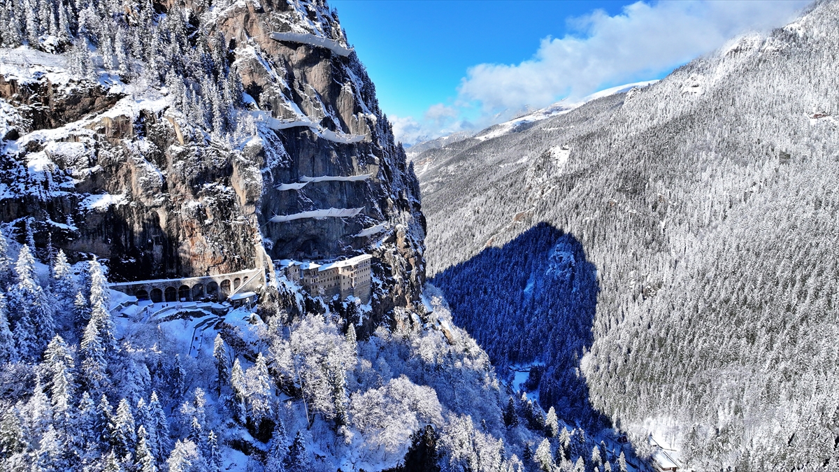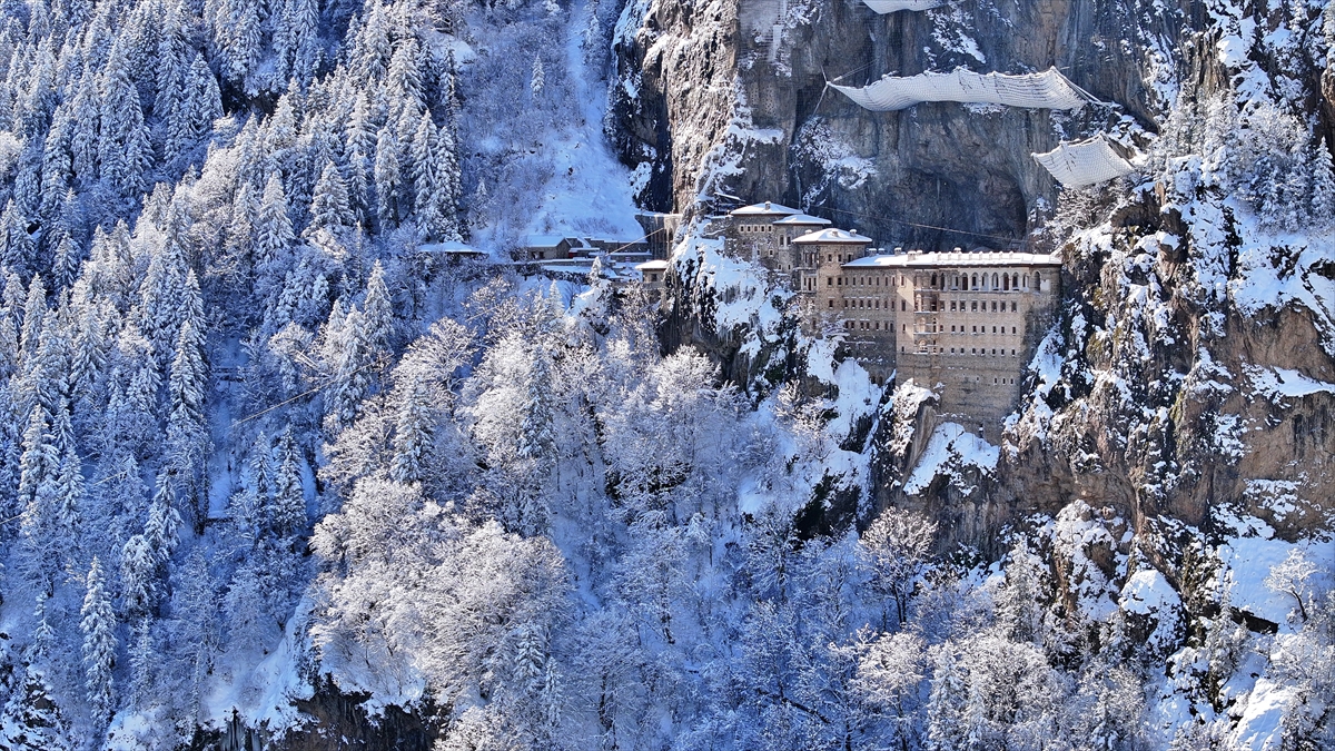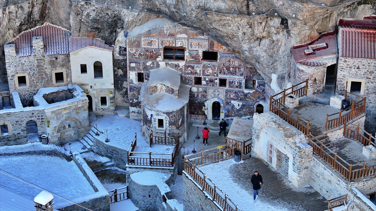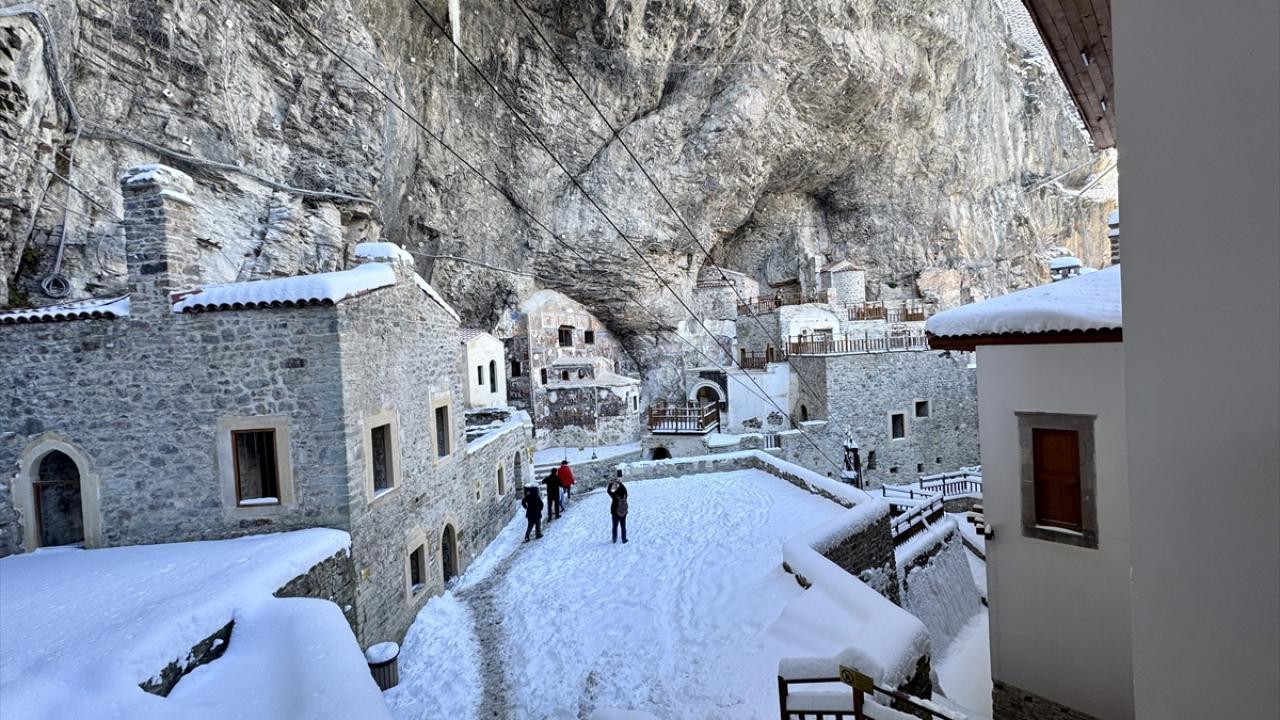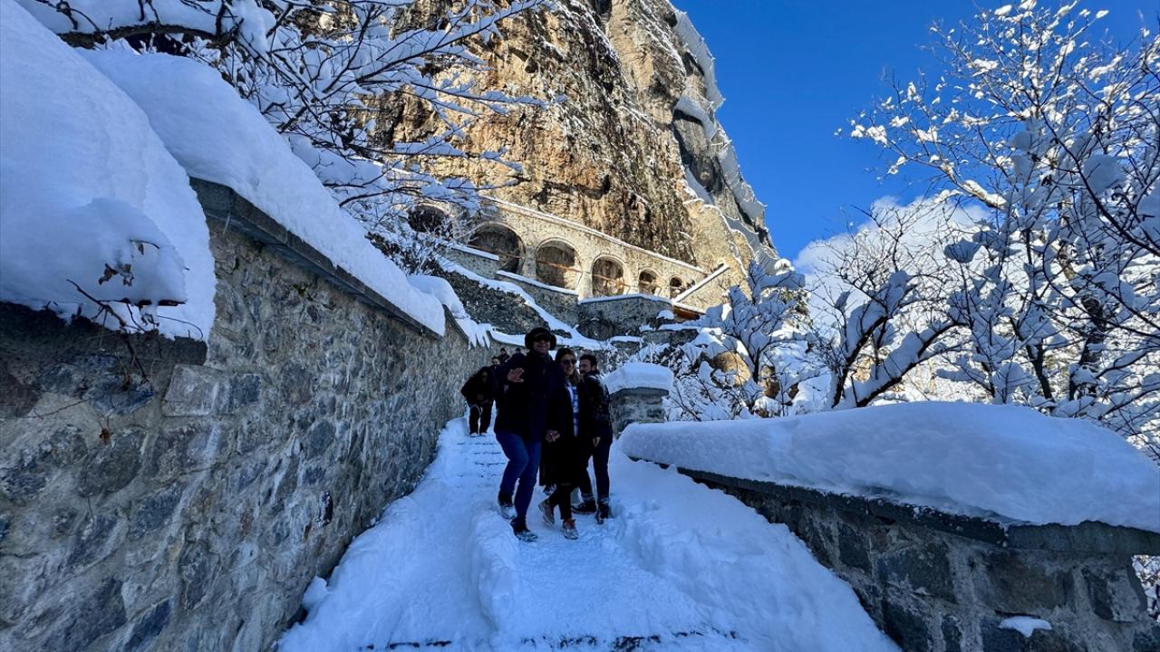 Trabzon'un Maçka ilçesindeki dünyaca ünlü Sümela Manastırı, son günlerde etkisini gösteren kar yağışının ardından yerli ve yabancı ziyaretçilerin ilgisini çekiyor.