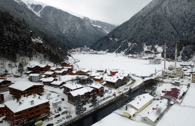 Türkiye'nin önemli turizm merkezleri arasında yer alan ve kış mevsiminde büründüğü bembeyaz görünüm ile adeta gelinlik giyinen Uzungöl, yerli ve yabancı turistlerden yoğun ilgi görüyor.