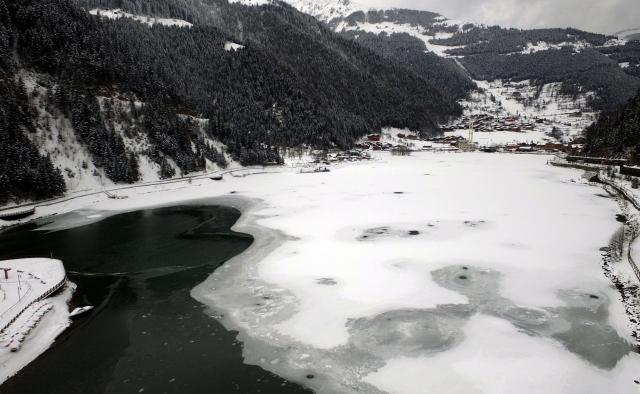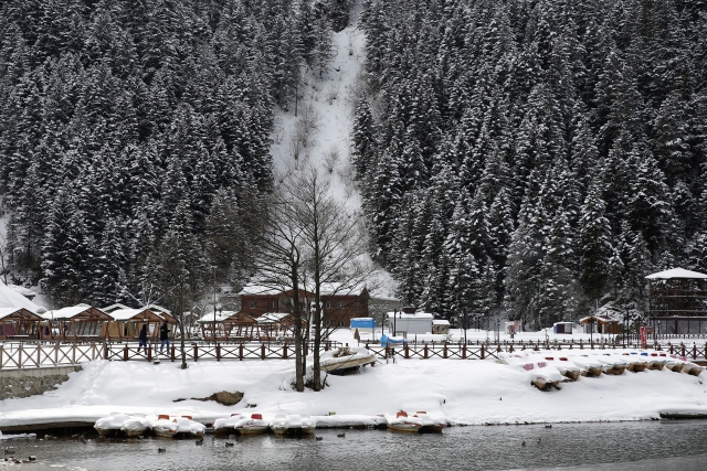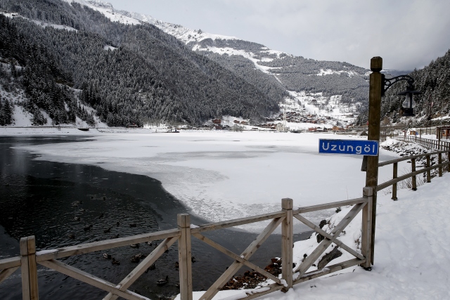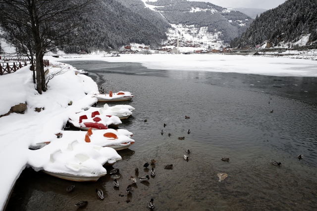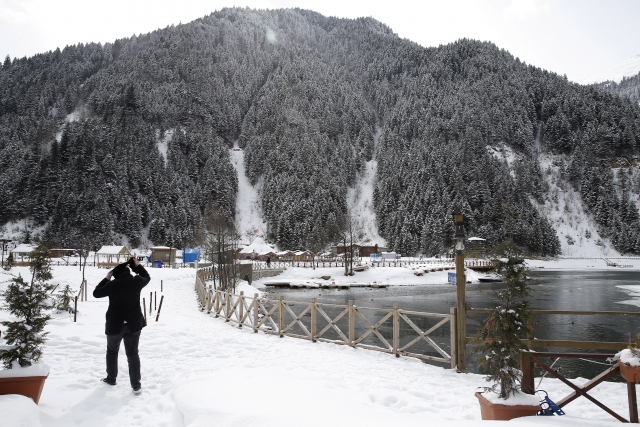 Beyaza bürünen Uzungöl'den turistler vazgeçmedi