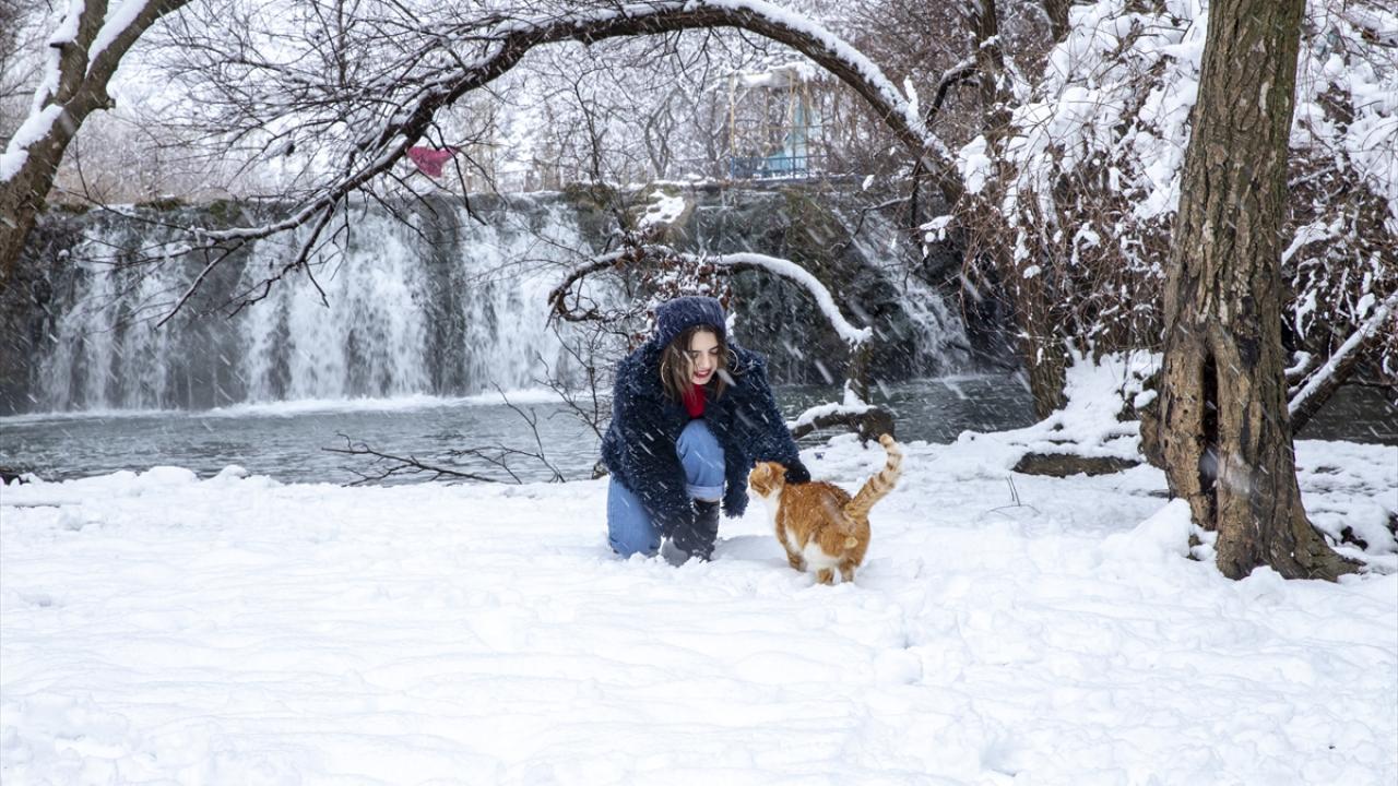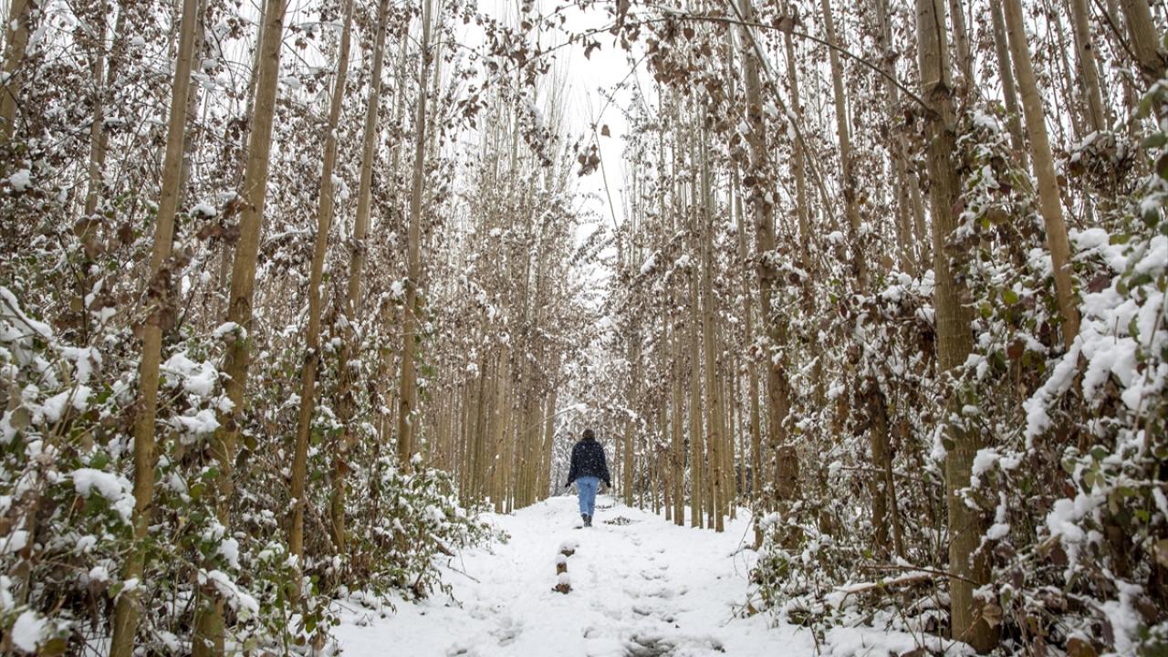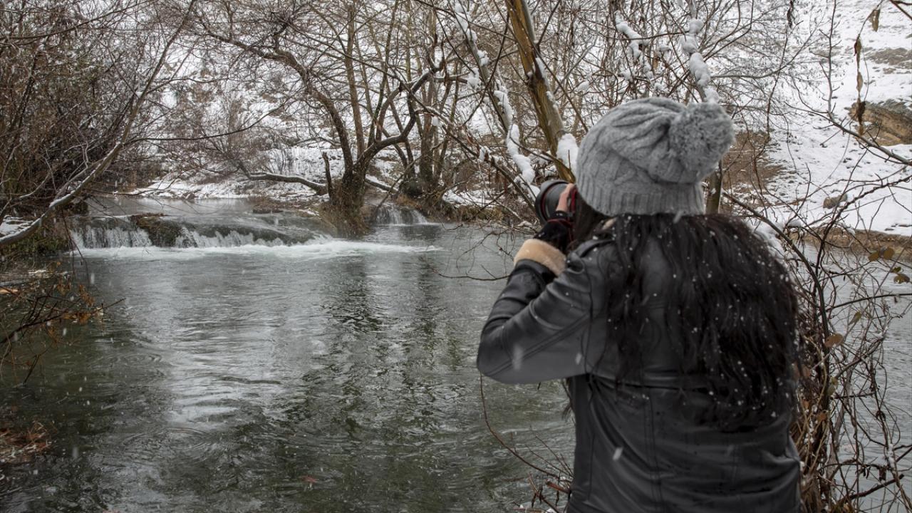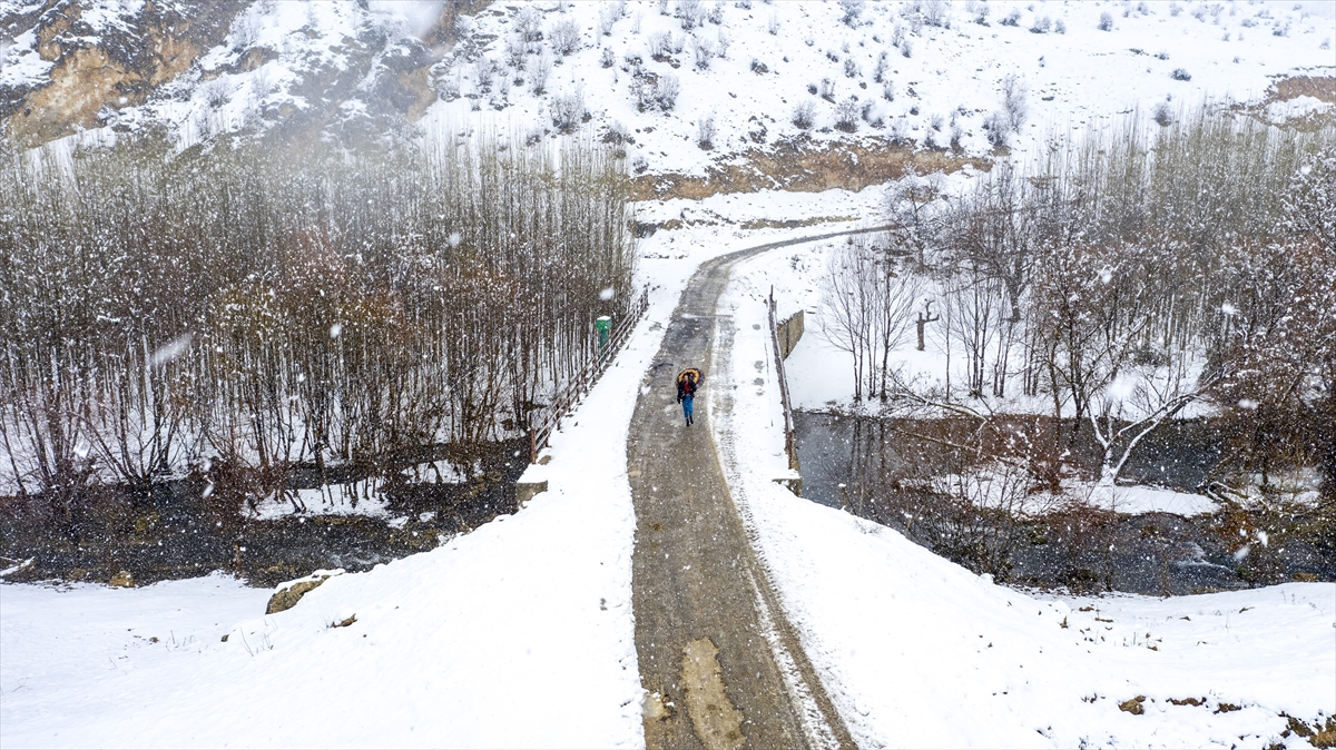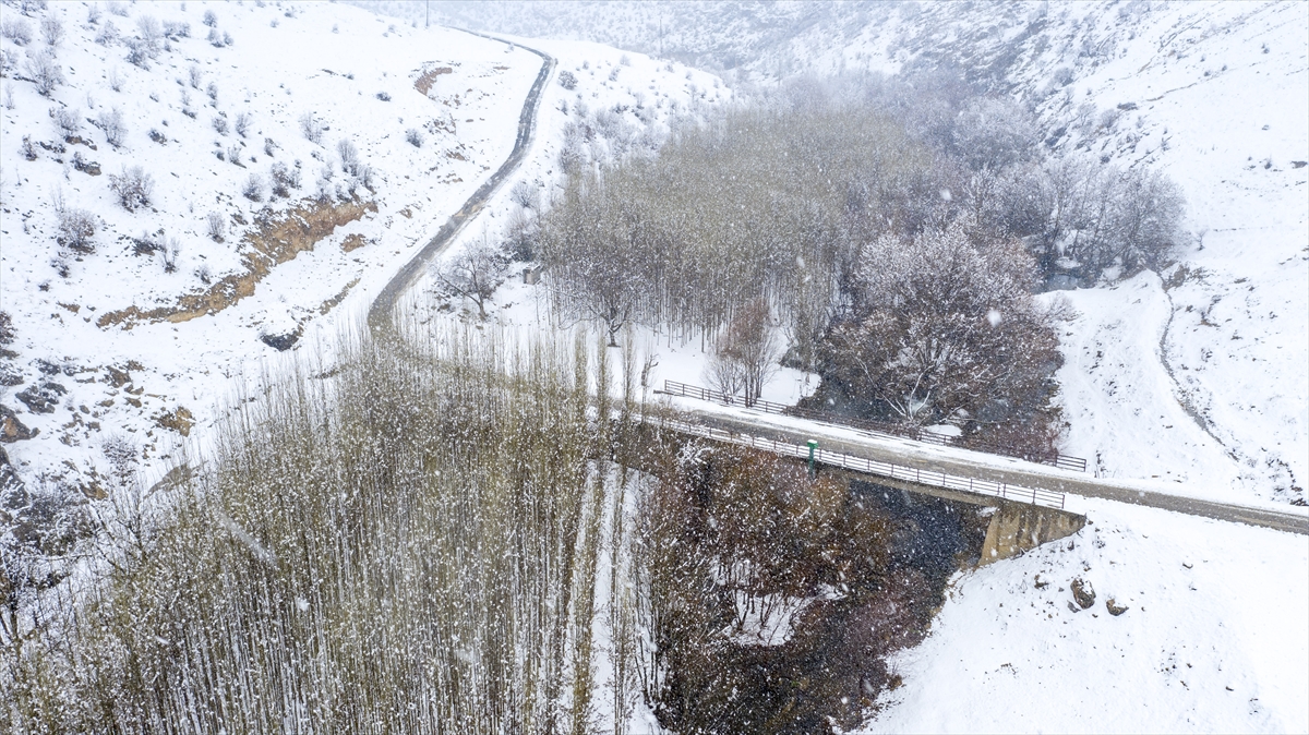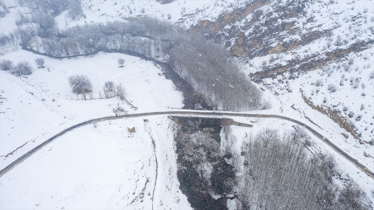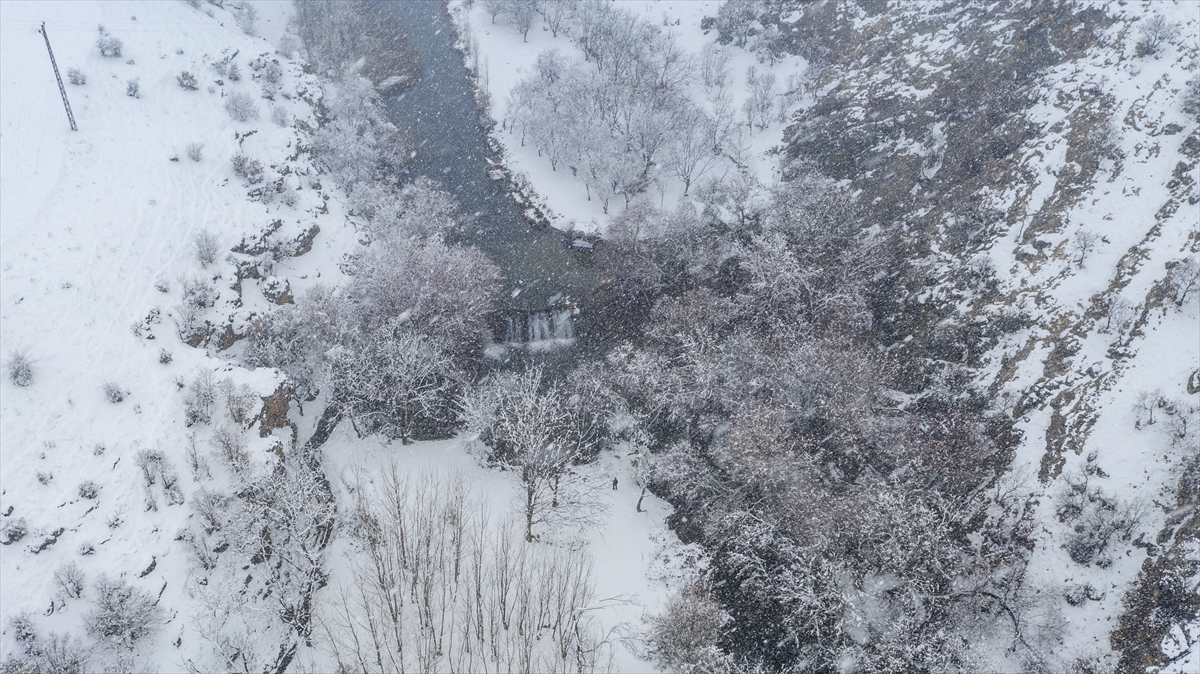 Mardin`in Mazıdağı ilçesindeki Karasu Çayı, kar yağışının ardından beyaza büründü.