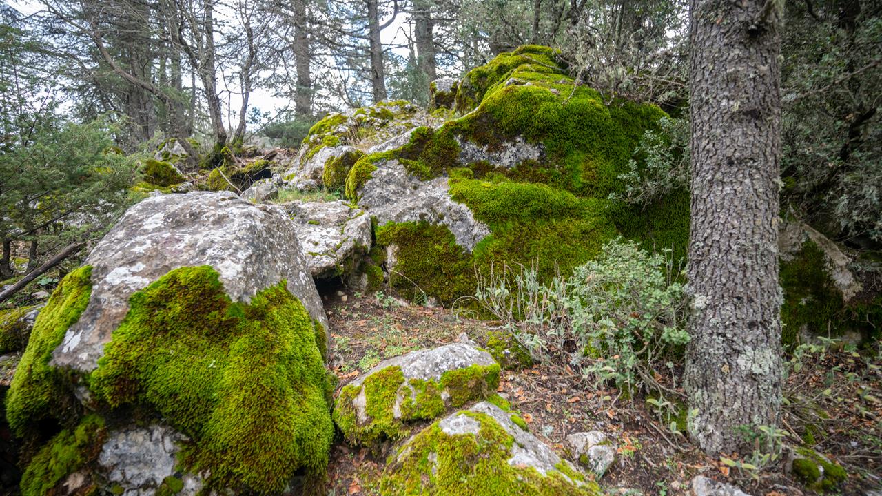 Beydağları`nın kuzey yamaçlarında sıklıkla rastlanan yosunlar dikkat çekici bir şekilde artış gösterirken kayaları kaplayan yeşil örtü ortaya güzel görüntüler çıkardı.