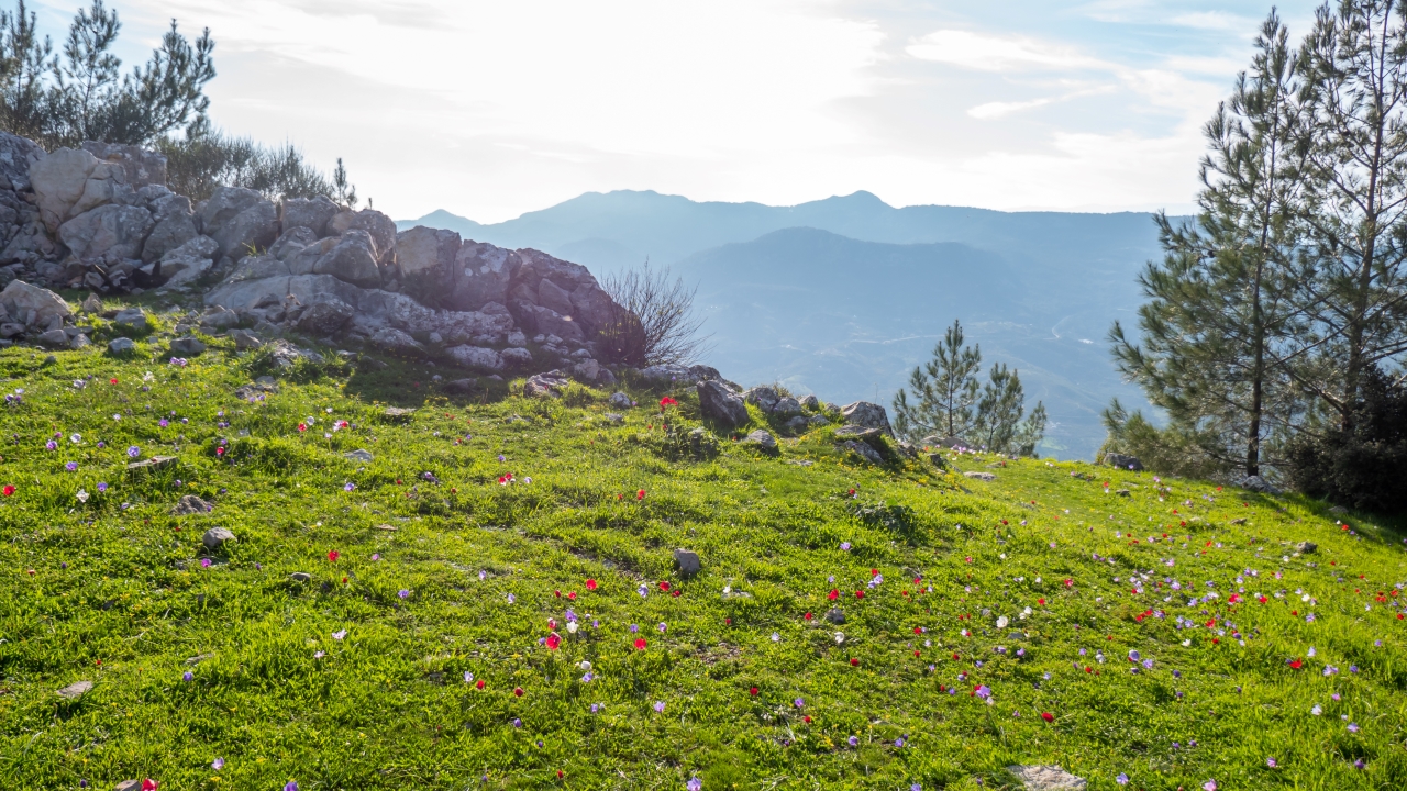 Antalya`yı çevreleyen dağların yüksek kesimleri kar örtüsünü hala korurken etekleri rengarenk bahar çiçekleriyle kaplandı.