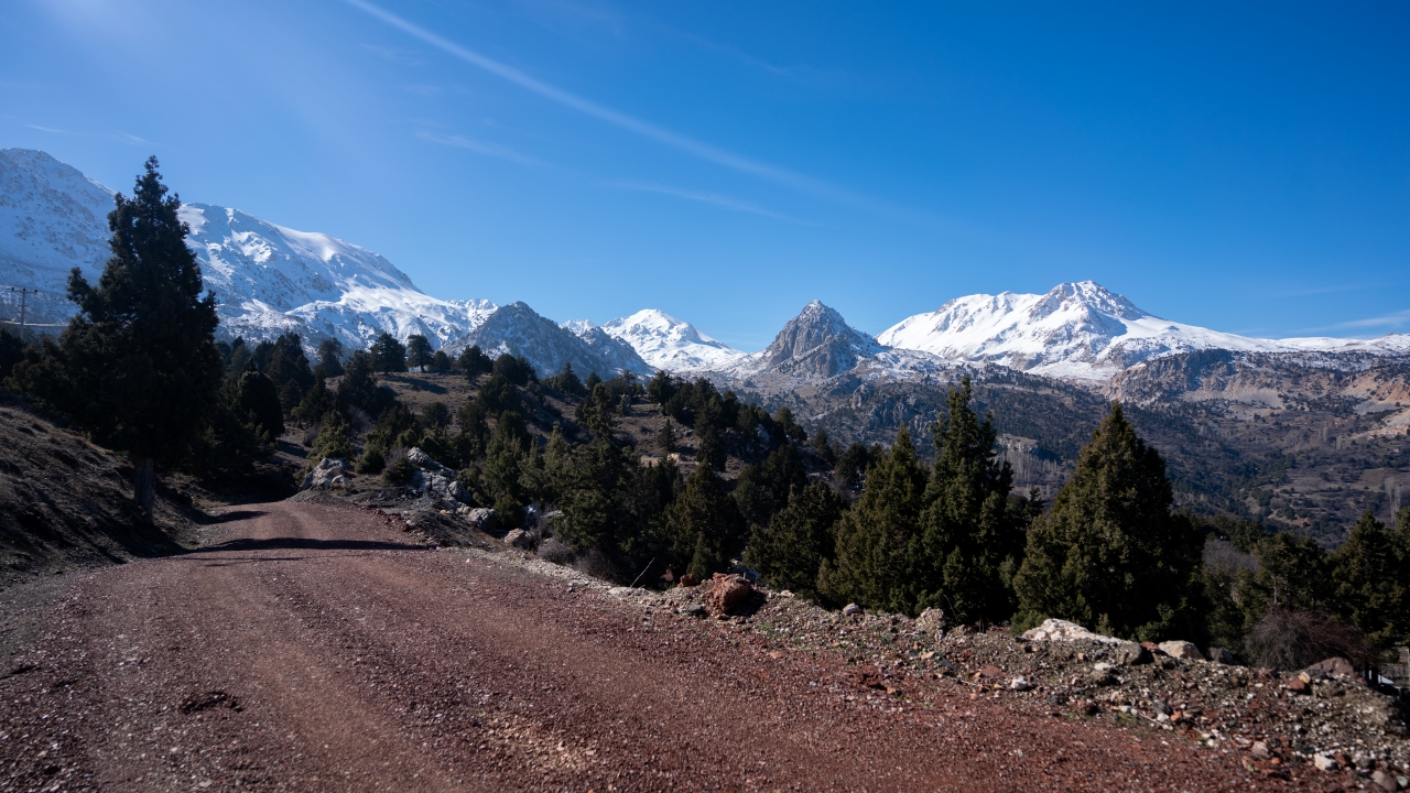Antalya'nın batısında yer alan ve Toroslar'ın önemli bir bölümünü oluşturan Beydağları'nın orta ve aşağı bölümleri bahar coşkusu yaşarken yüksek kesimlerinde kar varlığını sürdürmeye devam ediyor.