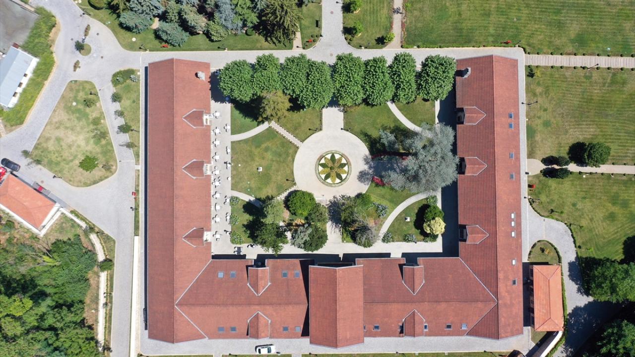 Dron görüntüsü bahçedeki yeşil alan ile müze kapısından başlıyor. Müzenin içindeki cam sanat eserleri, tarihi binanın iç mekan görüntüsü, çeşitli tarihi eserler, vazolar, avizeler, renkli pencere camları detaylı şekilde dron ile görüntüleniyor.