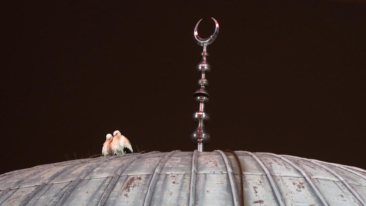 Beykoz'daki caminin kubbesi 11 yıldır leyleklere yuva oluyor