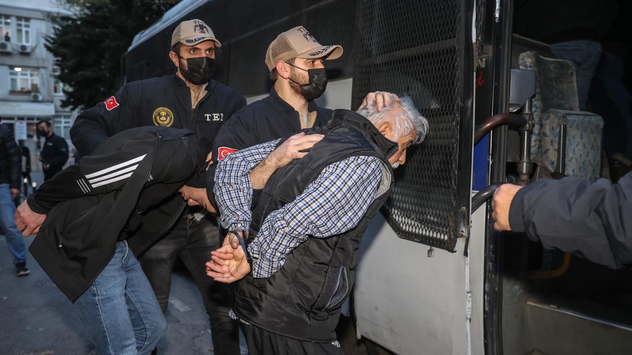 İstanbul Emniyet Müdürlüğünün Vatan Caddesi`nde bulunan yerleşkesinden 4 polis minibüsüne bindirilen çok sayıda zanlı, zırhlı araçlar eşliğinde çevredeki hastanelerde sağlık kontrolüne götürüldü.
