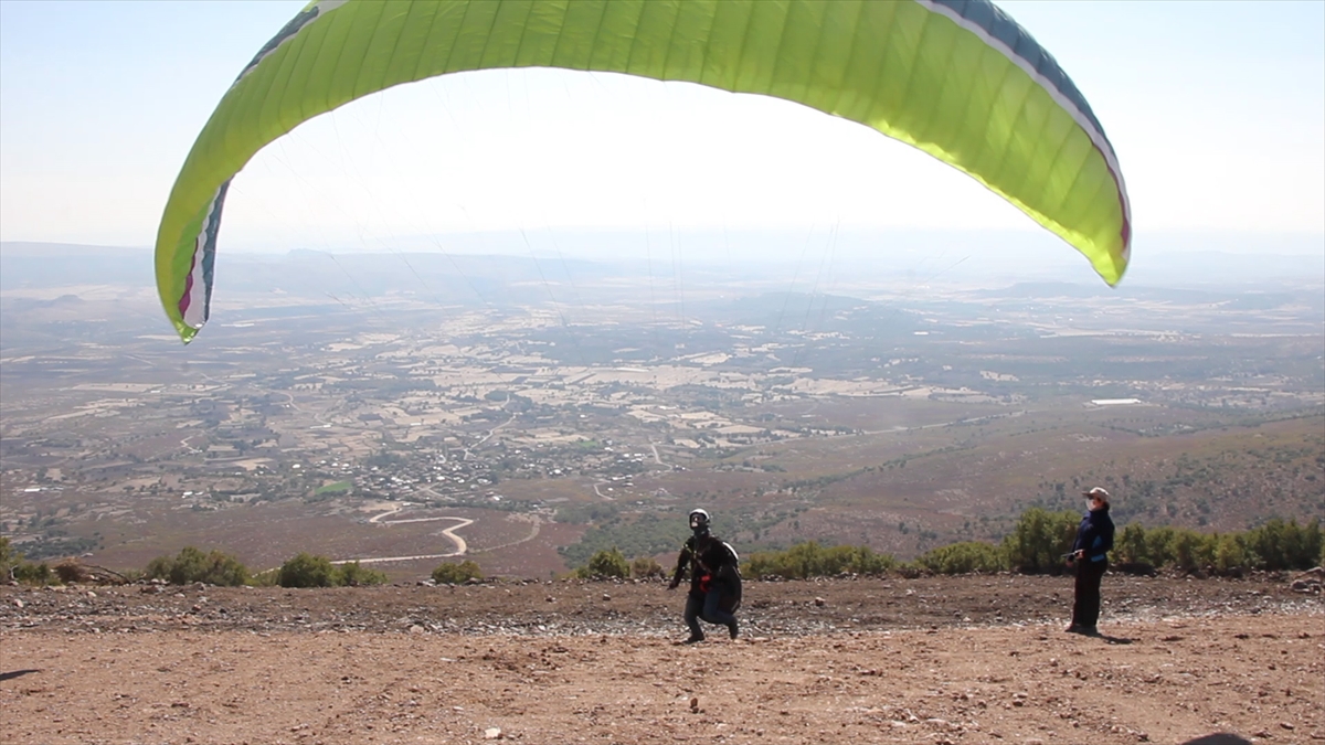 Ankara'nın Beypazarı ilçesi Üreğil Mahallesi'ne yapılan yamaç paraşütü pistinin ardından, yamaç paraşütçüleri alana akın etti.