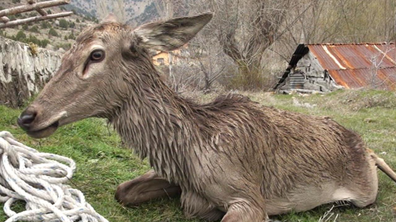 Ankara'nın Beypazarı ilçesine bağlı Keltepe bölgesindeki dağlık alanlarda yaşayan geyikler yerleşim yerlerine indi.