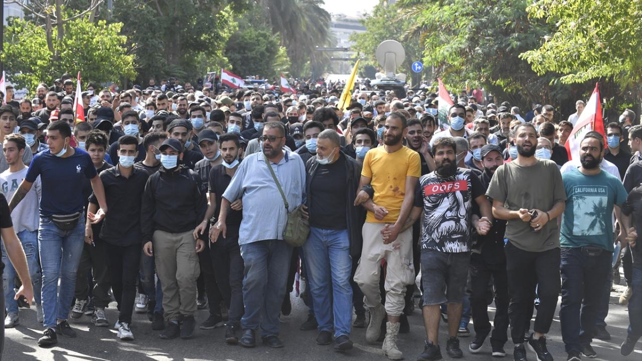 Şii Emel Hareketi ve Hizbullah destekçileri, hakim Tarık el-Bitar`ın yerine başkasının atanması talebiyle Beyrut Adalet Sarayı önüne doğru yürüyüş için toplandı.