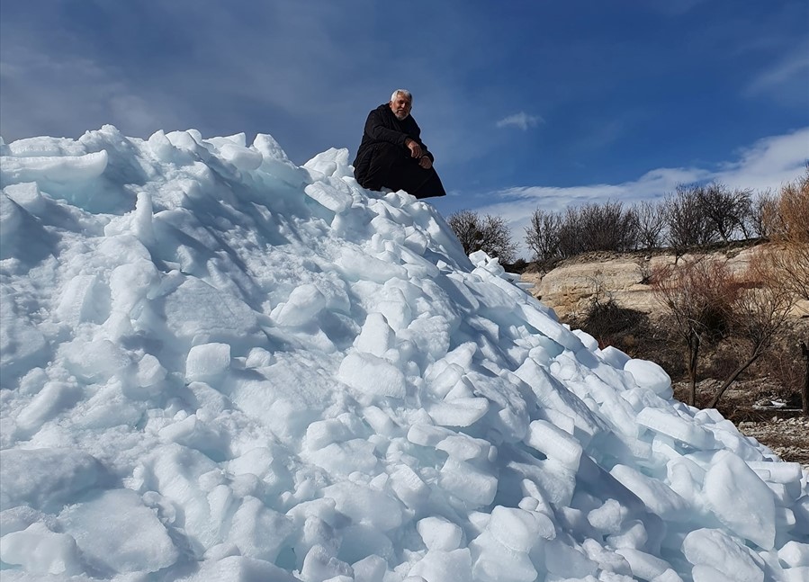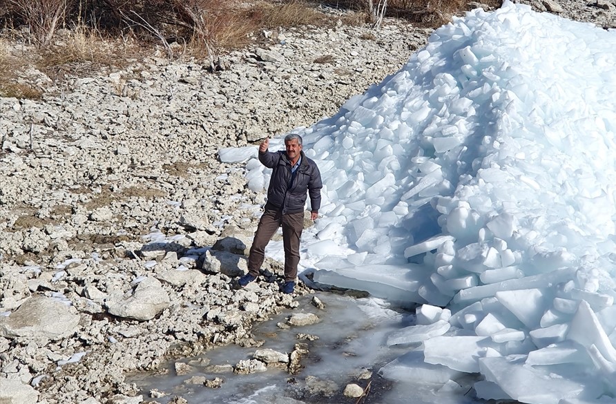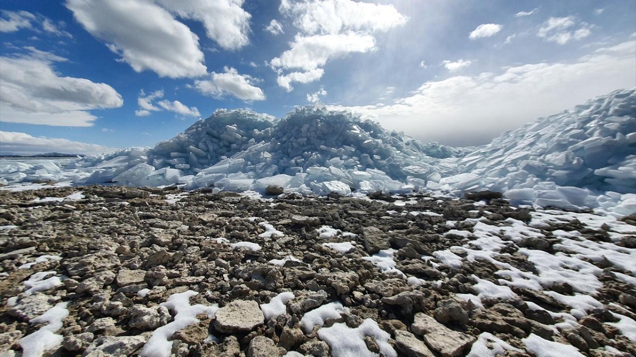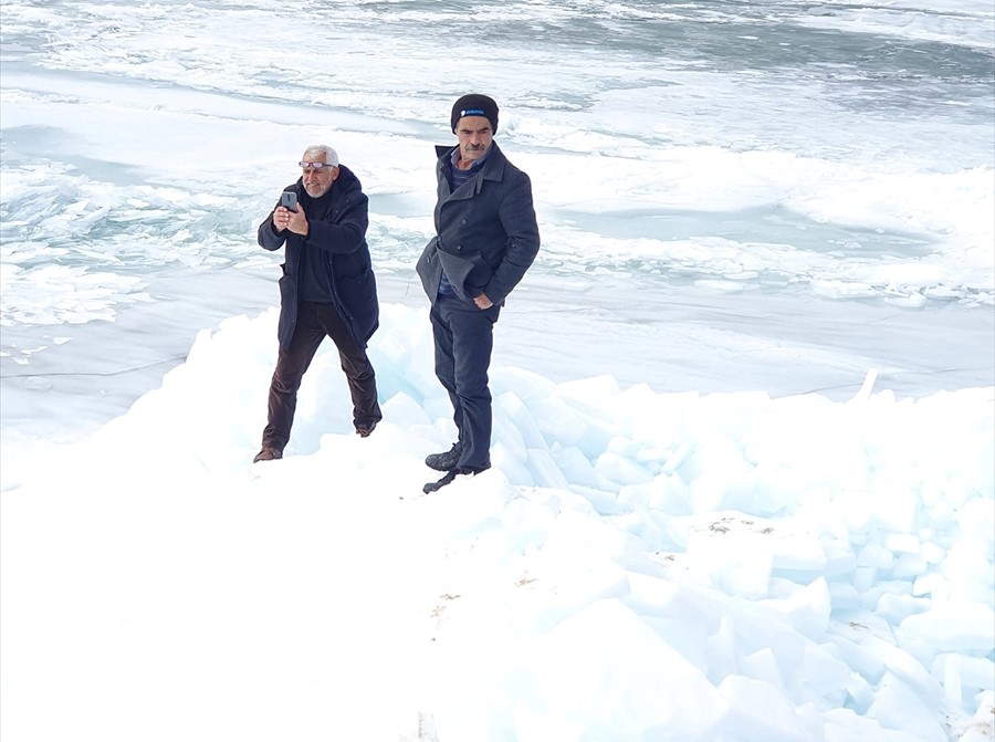 Mahalle sakinlerinden Erol Öksüz, gölde esen lodosun Akburun Mahallesi kıyısındaki Çetenin Burnu Mevkisinde karaya yığdığı buz kırıklarının en az 3 metrelik bir yükselti oluşturduğunu belirterek, uzun yıllardır böyle ilginç bir manzaraya tanıklık etmediklerini belirtti.