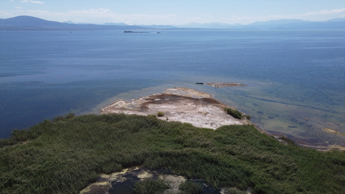 Gölde su miktarının giderek azalması ve derinliğin sürekli düşmesi sebebiyle yerleşim merkezlerine yakın alanlarda dört tarafı suyla çevrili küçük adacıklar oluşmaya başladı.
