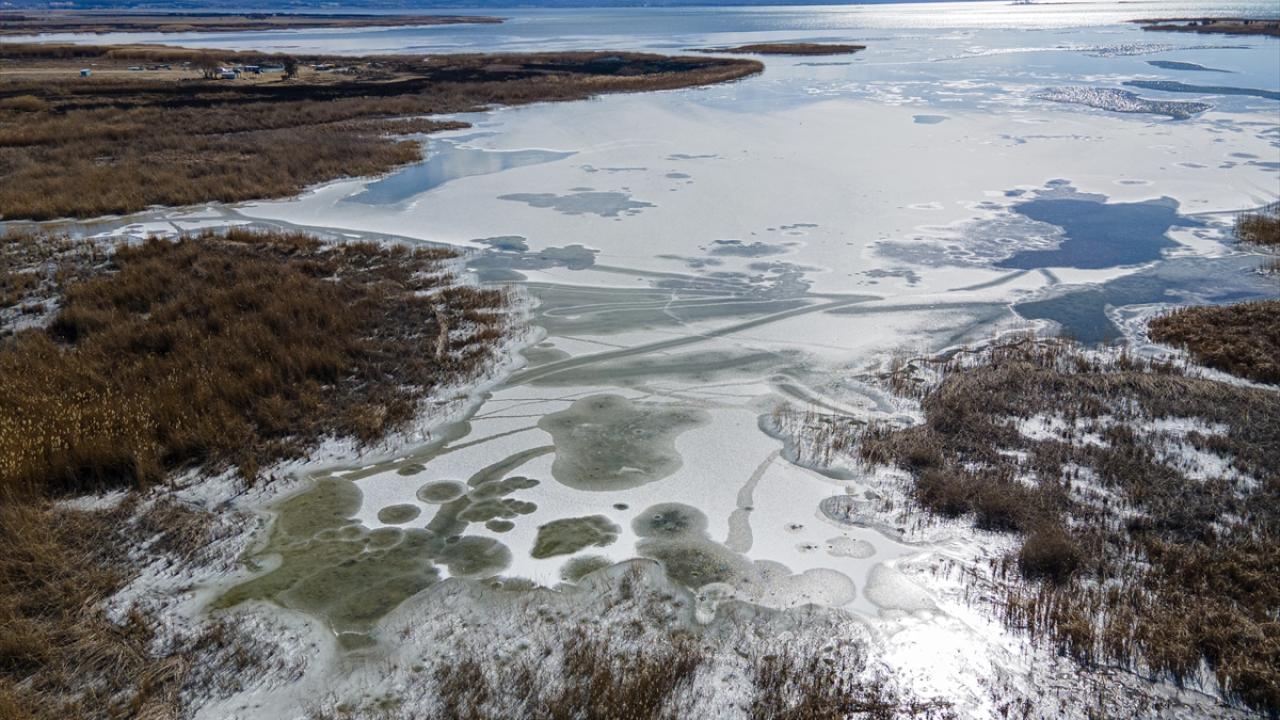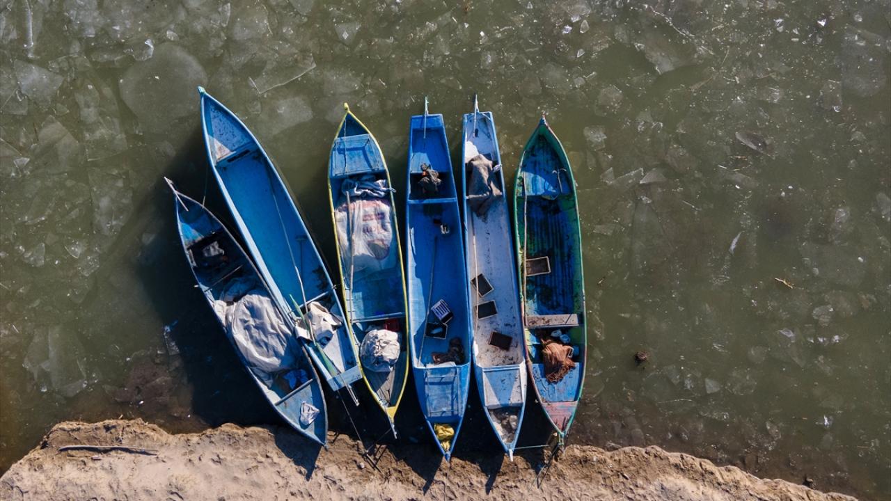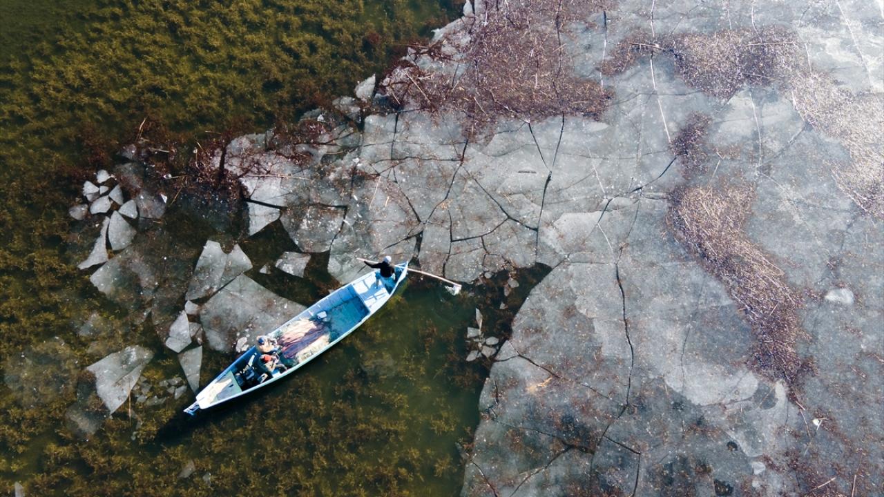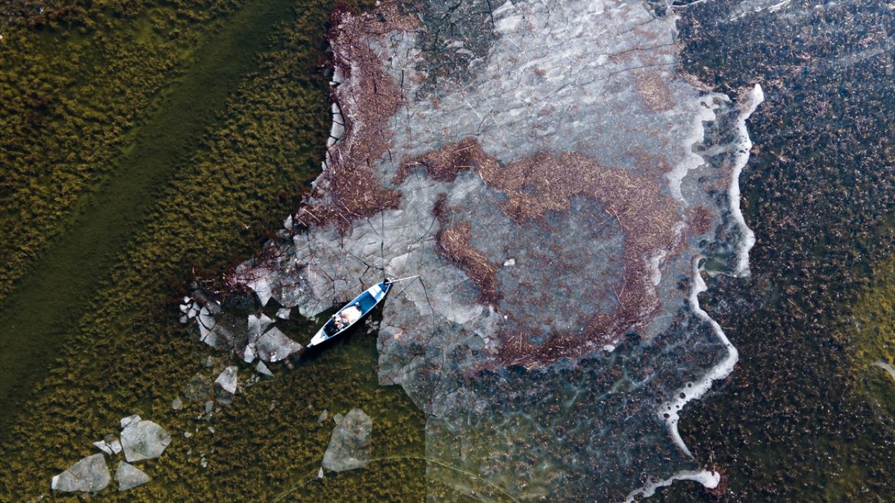 Konya’nın Beyşehir İlçesinde, soğuk havanın etkisiyle kıyı kesimleri donan Beyşehir Gölü’nde balıkçılar, avlanabilmek için buzların erimesini bekliyor.
