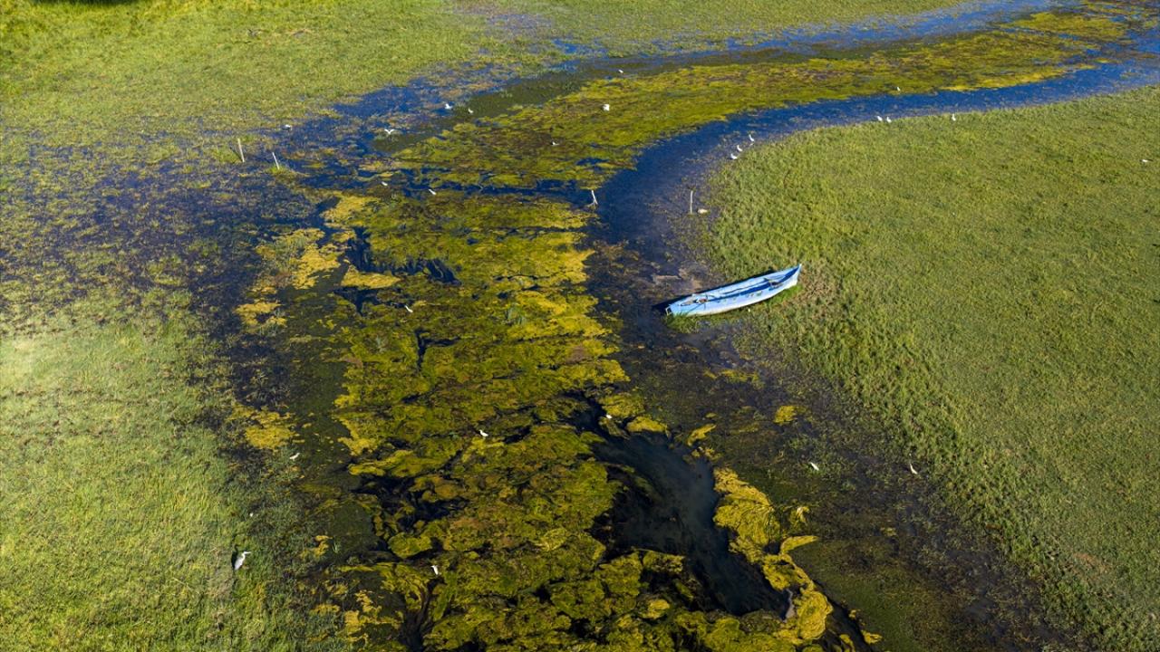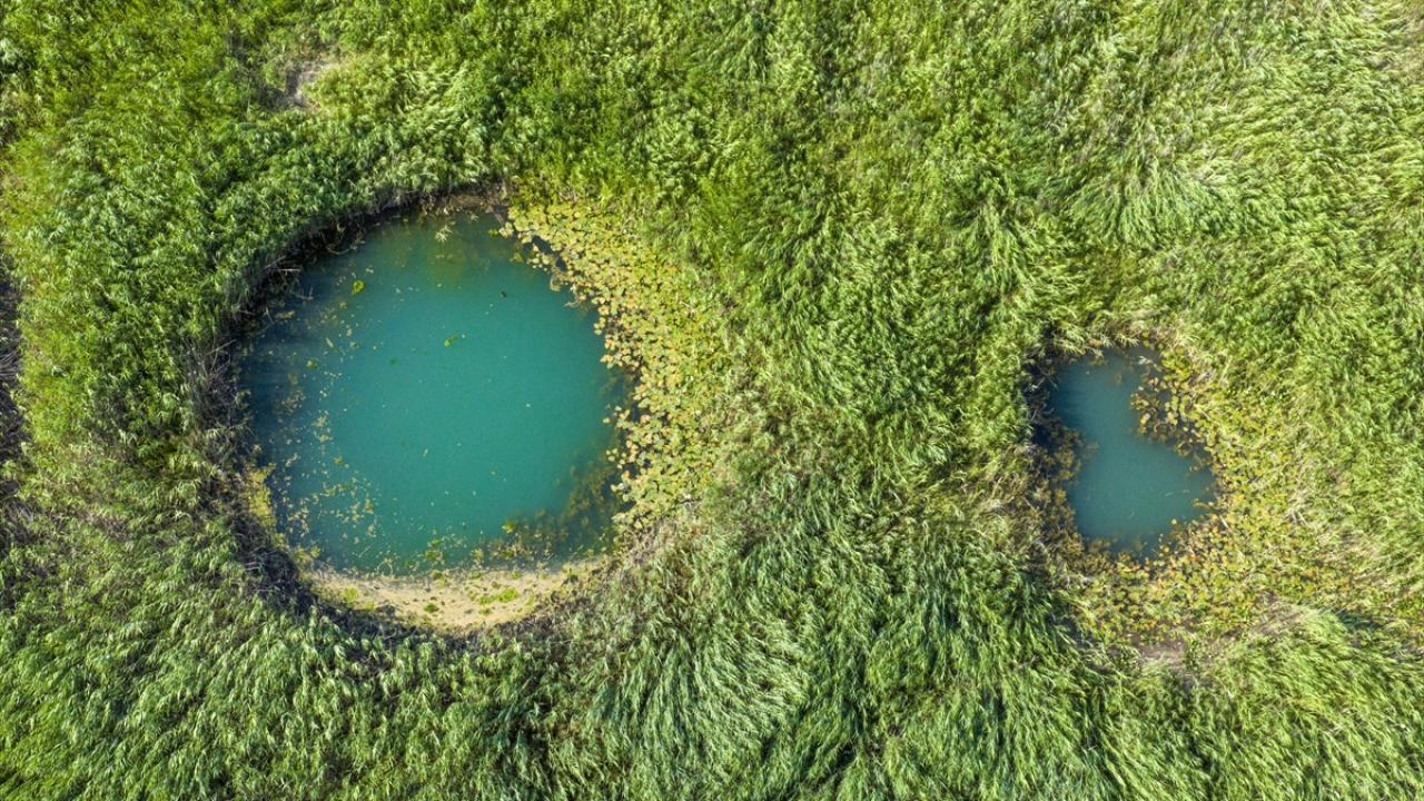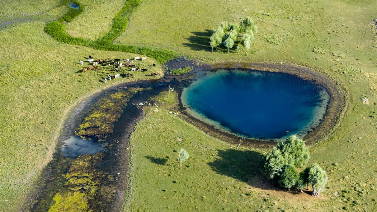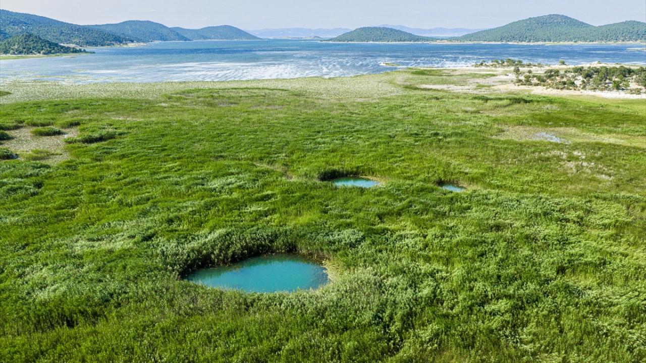 Yaz aylarında etkili olan yüksek sıcaklıklar ve yetersiz yağış nedeniyle göldeki çekilme gözle görülür şekilde artarken, suyun geri çekildiği alanlarda ortaya çıkan doğal kaynak gözeleri havadan görüntülendi.