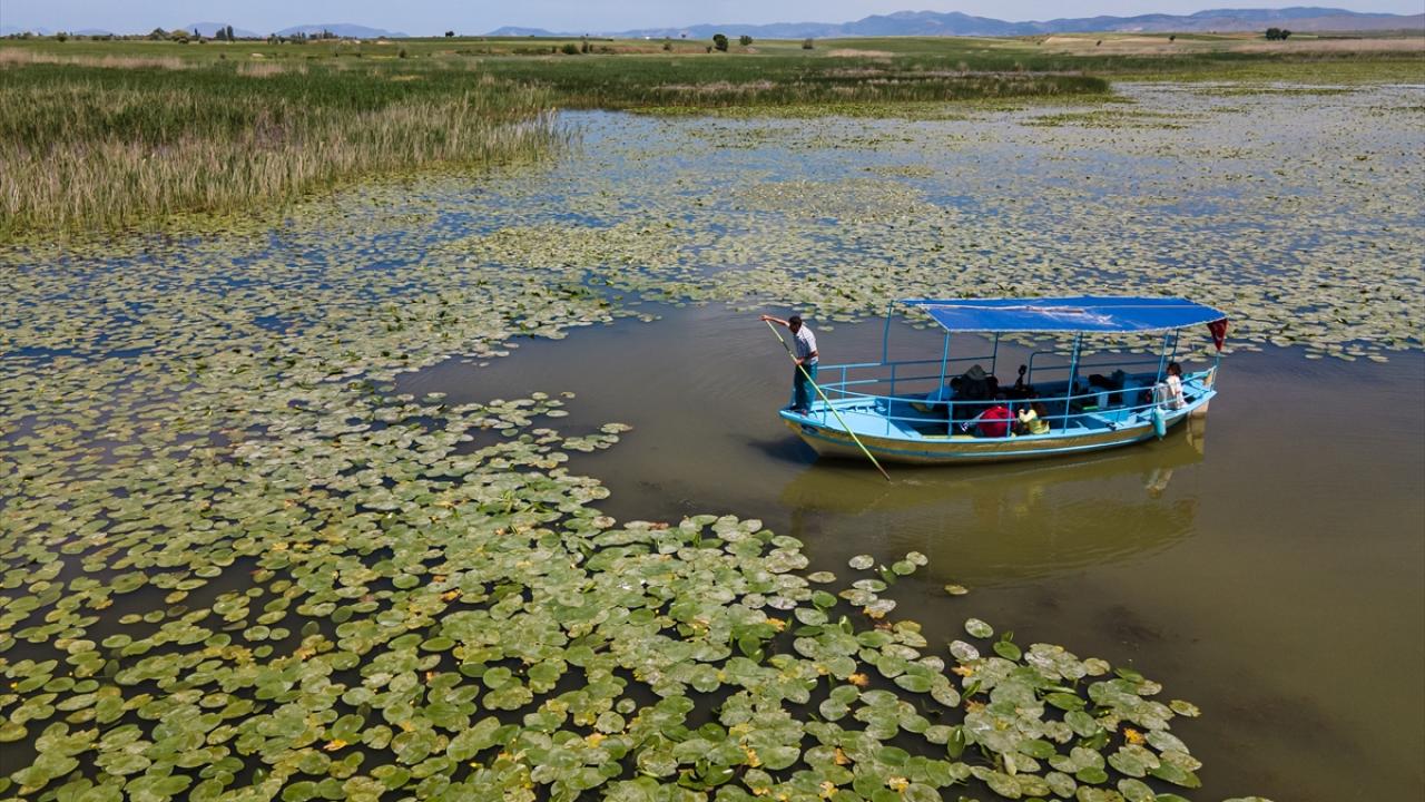 Bölgeye gelen ziyaretçiler, hem göl manzarasının tadını çıkarıyor hem de nilüfer çiçeklerinin oluşturduğu doğal tabloyu görüntüleme fırsatı buluyor.