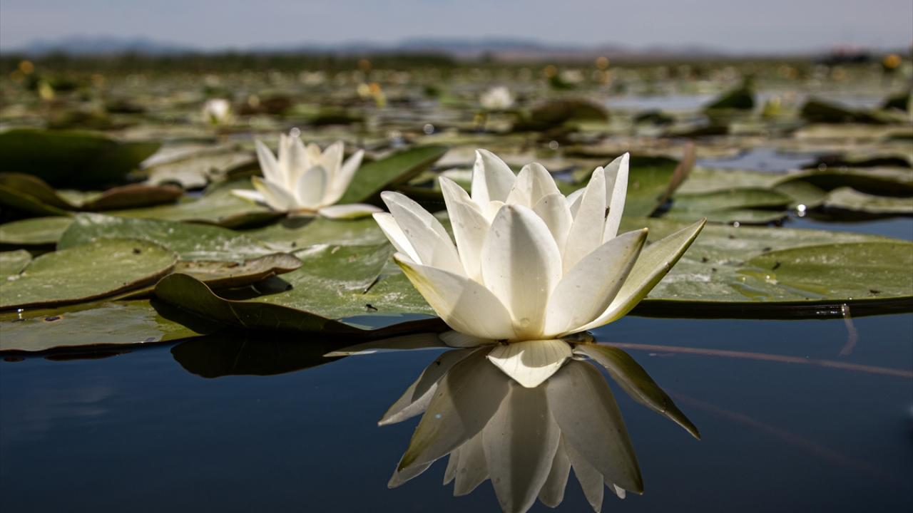 Gölde açan nilüfer çiçekleri, görenleri kendine hayran bırakıyor. Özellikle sabah saatlerinde güneşin doğuşuyla birlikte su yüzeyine açılan nilüferler, öğle saatlerinde hava sıcaklığının artmasıyla birlikte suyun altına çekilerek kapanıyor.