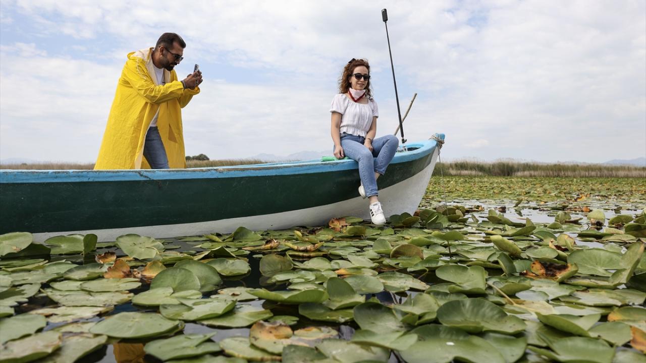 Beyşehir Gölü'ndeki nilüferler, ziyaretçilerin ilgisini çekiyor