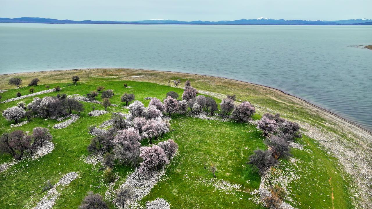 Beyşehir Gölü`nün adalarında yeşil çayırlar kendini gösterirken, çiçek açan ağaçlar ile zirvelerdeki kar örtüsünün oluşturduğu manzara, bölgeye ayrı bir güzellik kazandırıyor.