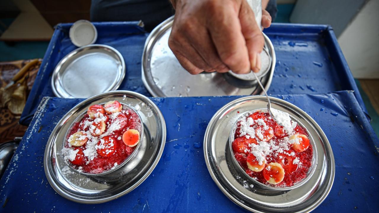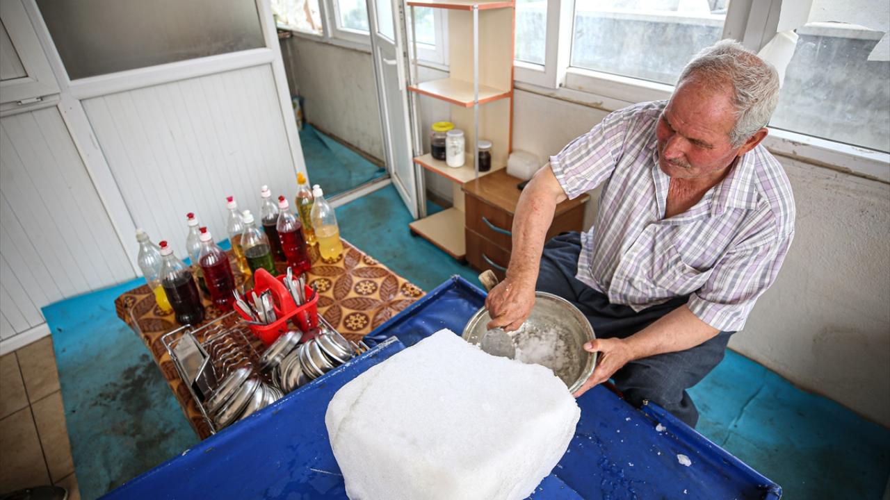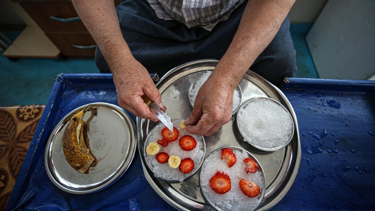 Mersinli 70 yaşındaki Sezai Küçükçongar, 16 yıldır yaz aylarının başlamasıyla Toros Dağları'nın yüksek kesimlerinden topladığı karı, karsambaç ve bici bici gibi yöresel tatlılara dönüştürüyor.