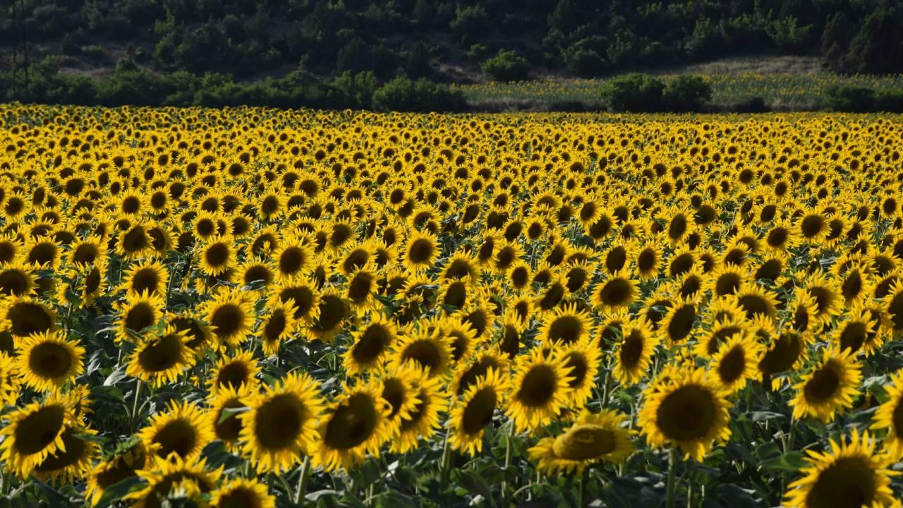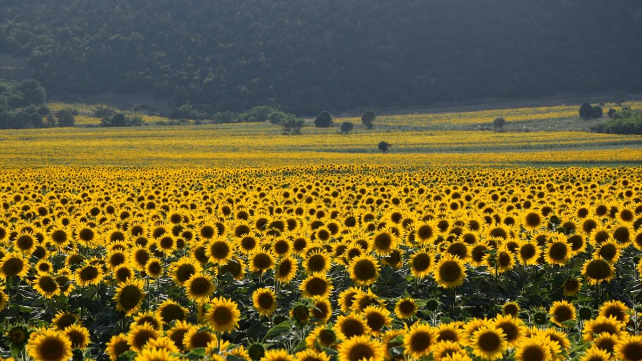 Sarının farklı tonlarıyla ilgi çeken ayçiçeği tarlaları, özellikle gün doğumu ve batımında ayrı güzellik sunuyor.