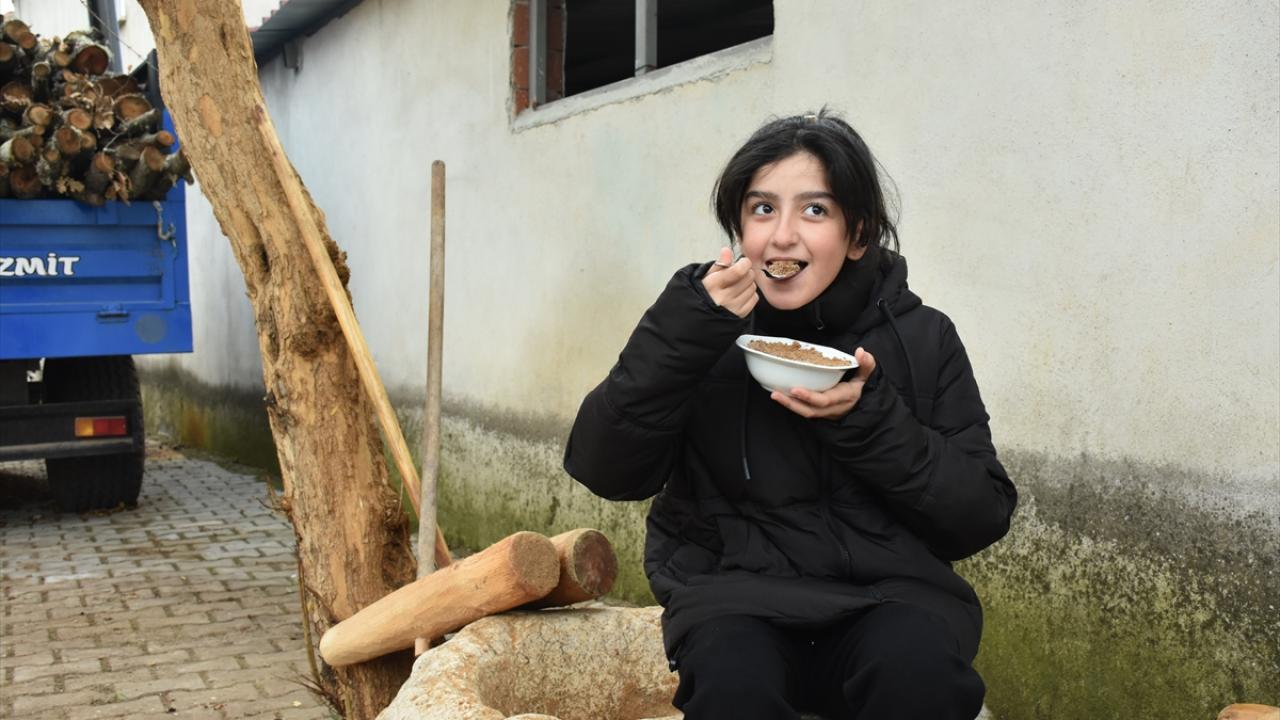 Susam, bulgur ve mısırın kendi üretimleri olduğunu anlatan Ergün, "Yorucu bir süreç ama sonunda güzel bir lezzet ortaya çıkıyor. Bu lezzeti özellikle kışın misafirlerimize ikram etmekten büyük mutluluk duyuyoruz" dedi.