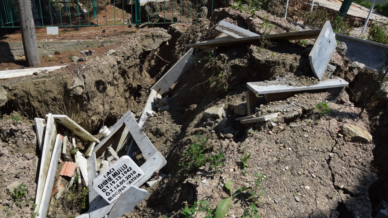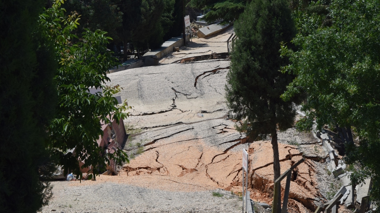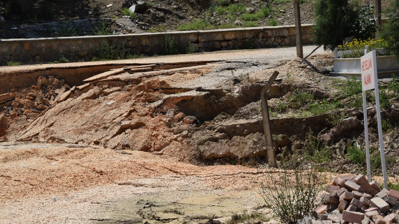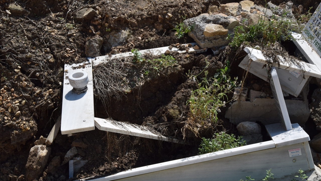 Bilecik'te şehir mezarlığının yanında geçen yol, toprak kayması nedeniyle kapatıldı.