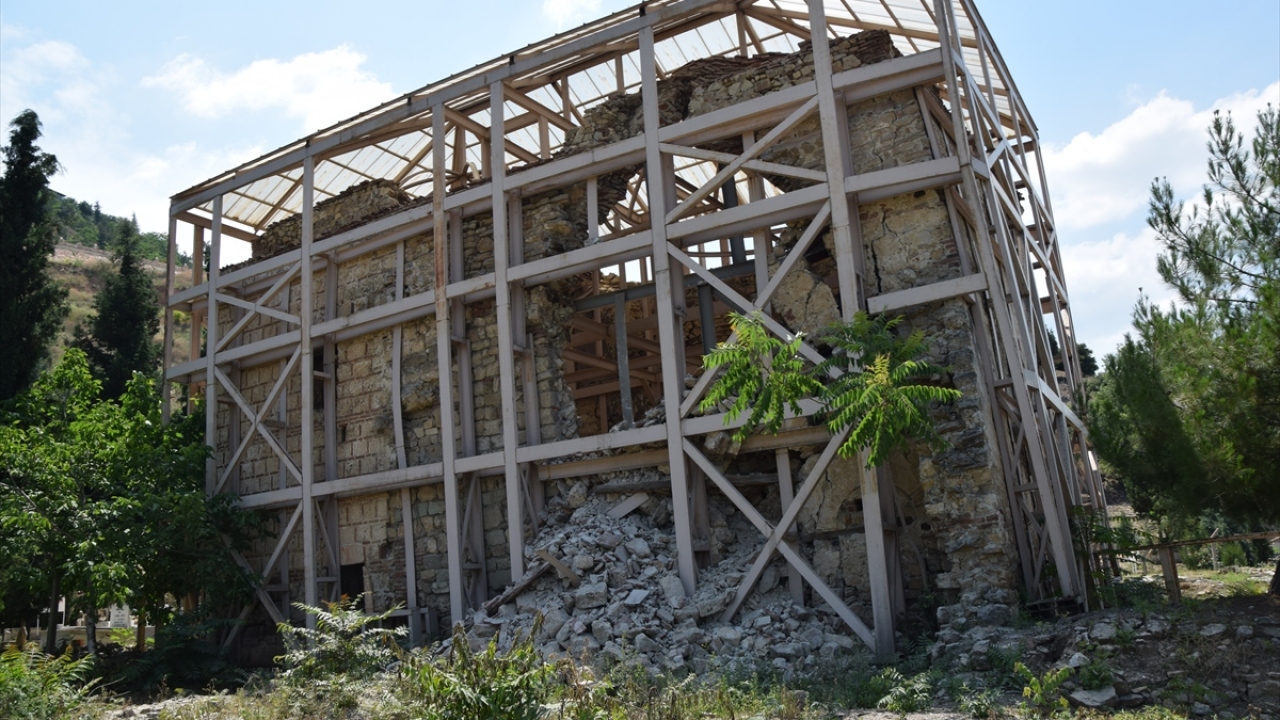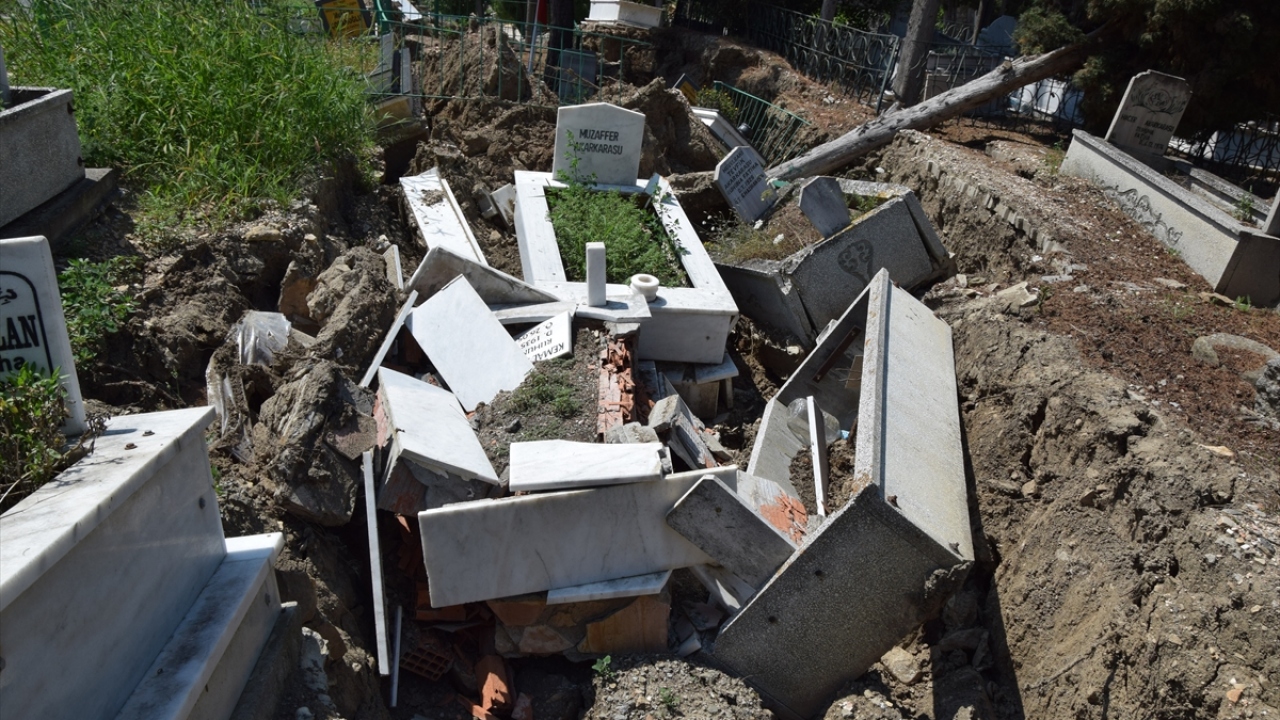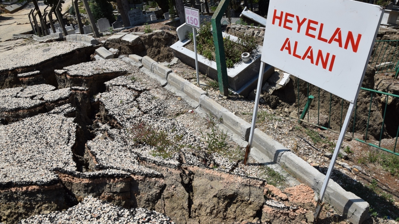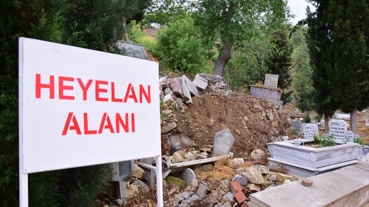 Bilecik'te şehir mezarlığının yanında geçen yol, toprak kayması nedeniyle kapatıldı.