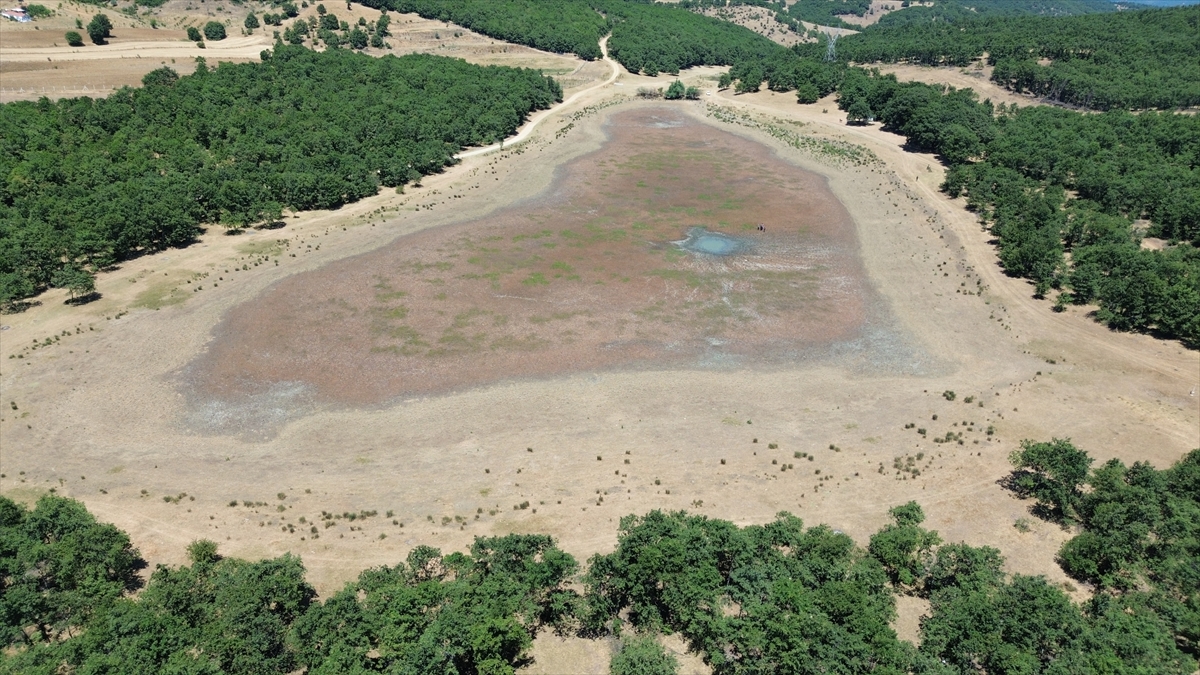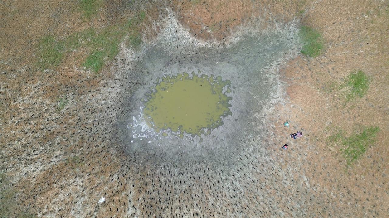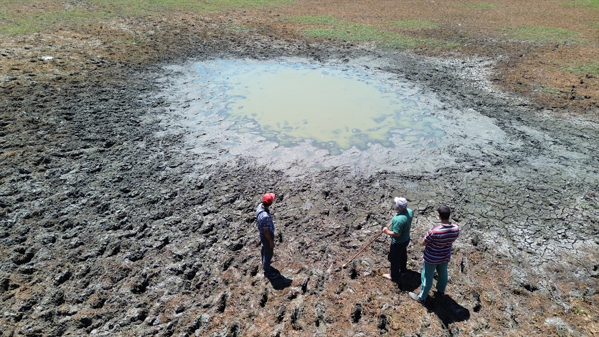 Kapladığı alan 100 metrekareye kadar düşen gölet, tamamen kuruma tehdidiyle karşı karşıya kaldı.