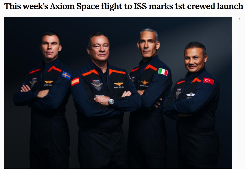 AmericaSpace sitesinde de, "Mike Lopez-Alegria liderliğindeki Ax-3 ekibinde İtalya`danWalter Villadei, İsveç`ten Marcus Wandt ve Türkiye`nin ilk milli uzay gezgini Alper Gezeravcı yer alıyor" ifadesi kullanıldı.