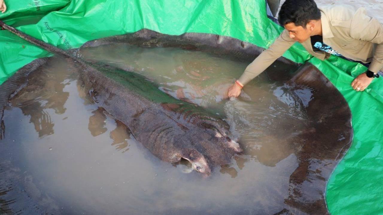 Dev tatlı su vatozları nesli tükenmekte olan bir türdür. Bu, ekip tarafından Mayıs ayından bu yana incelenen ikinci dev vatoz.