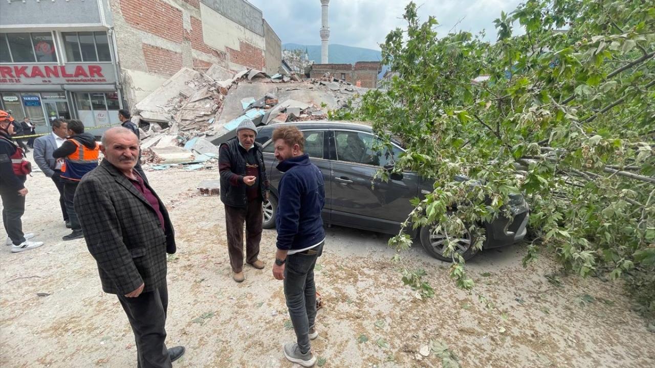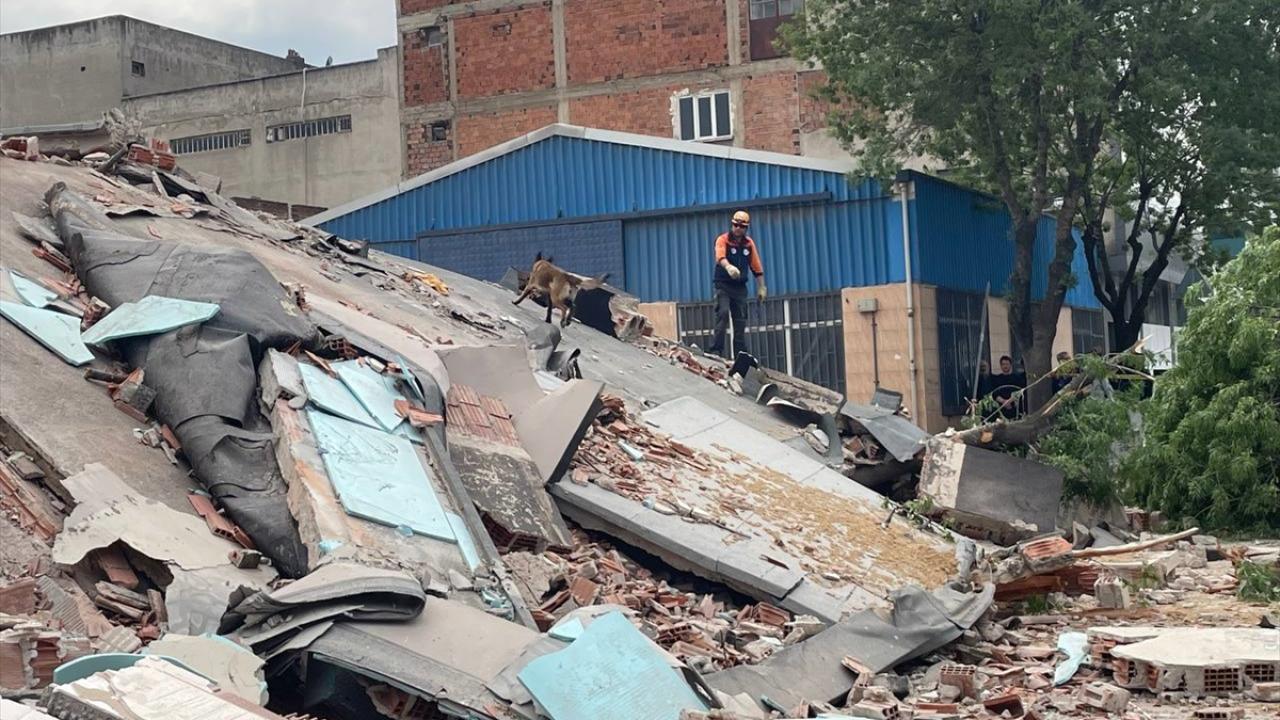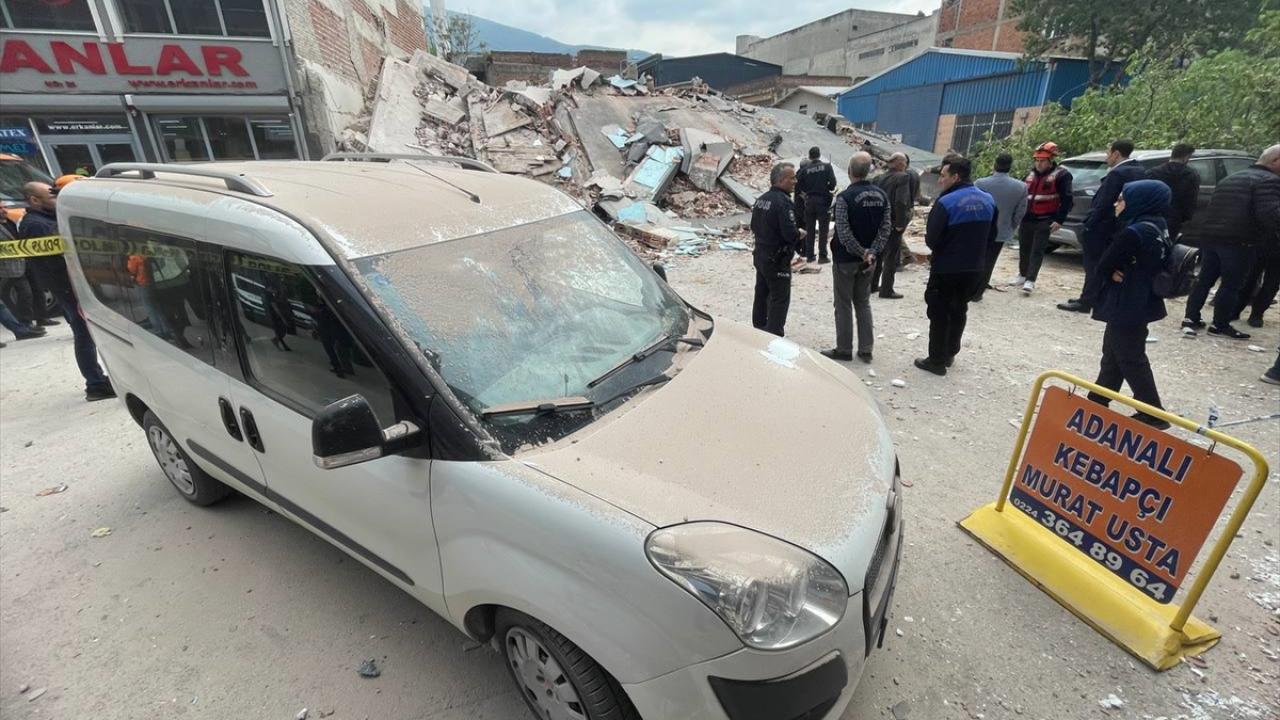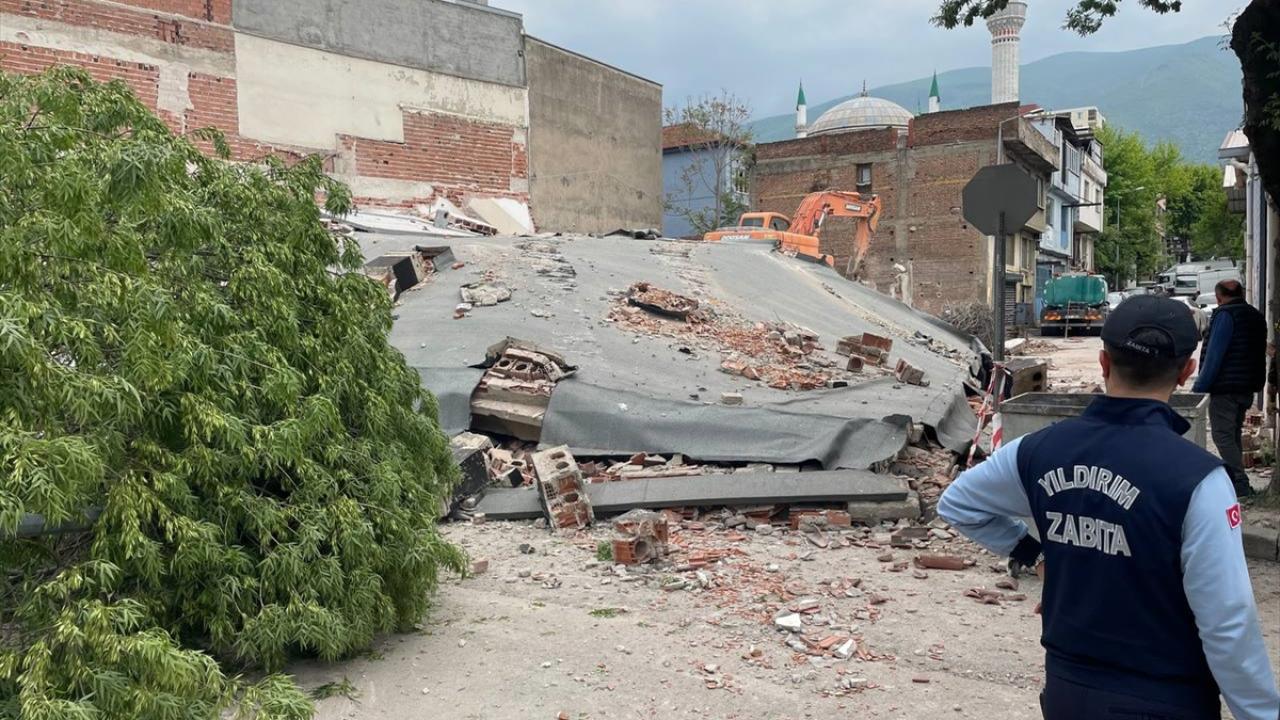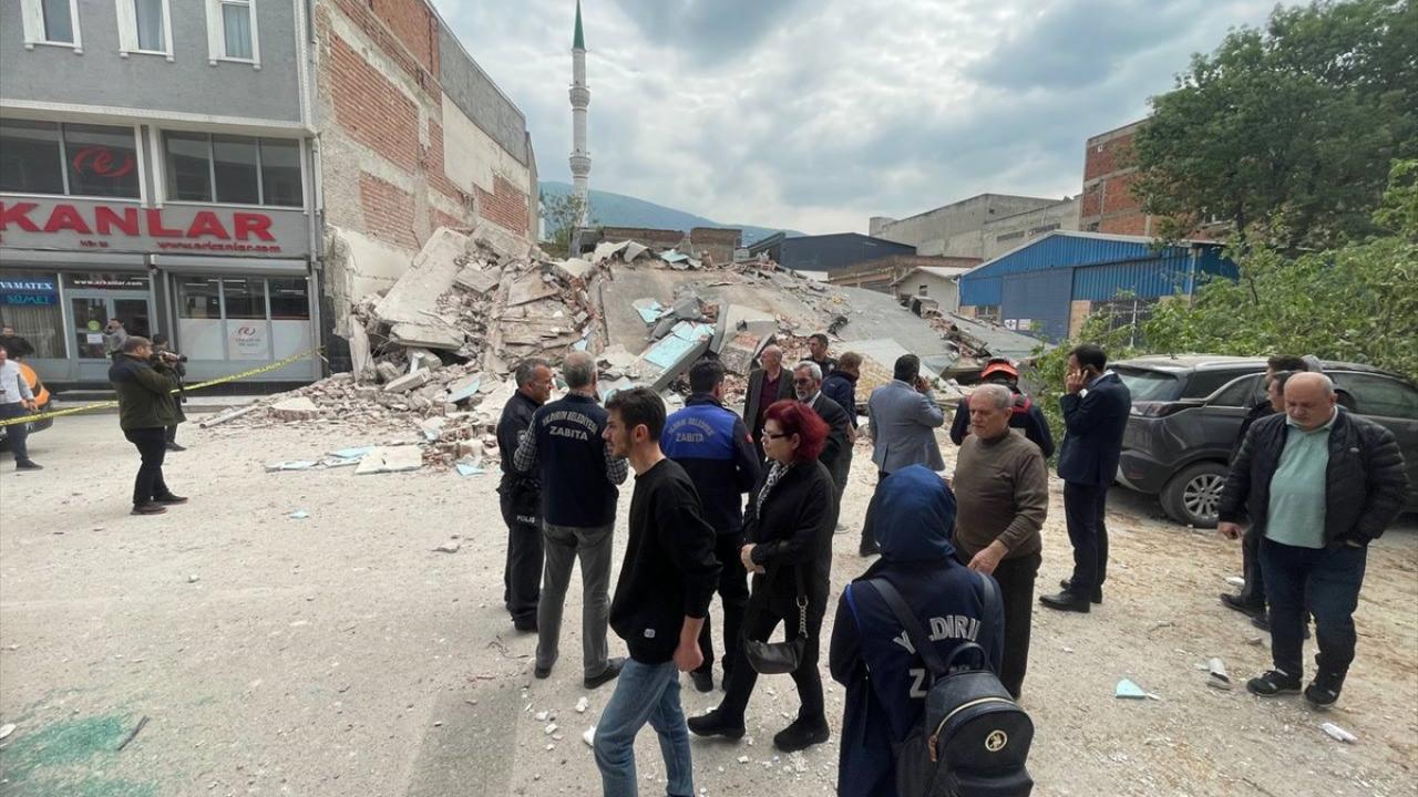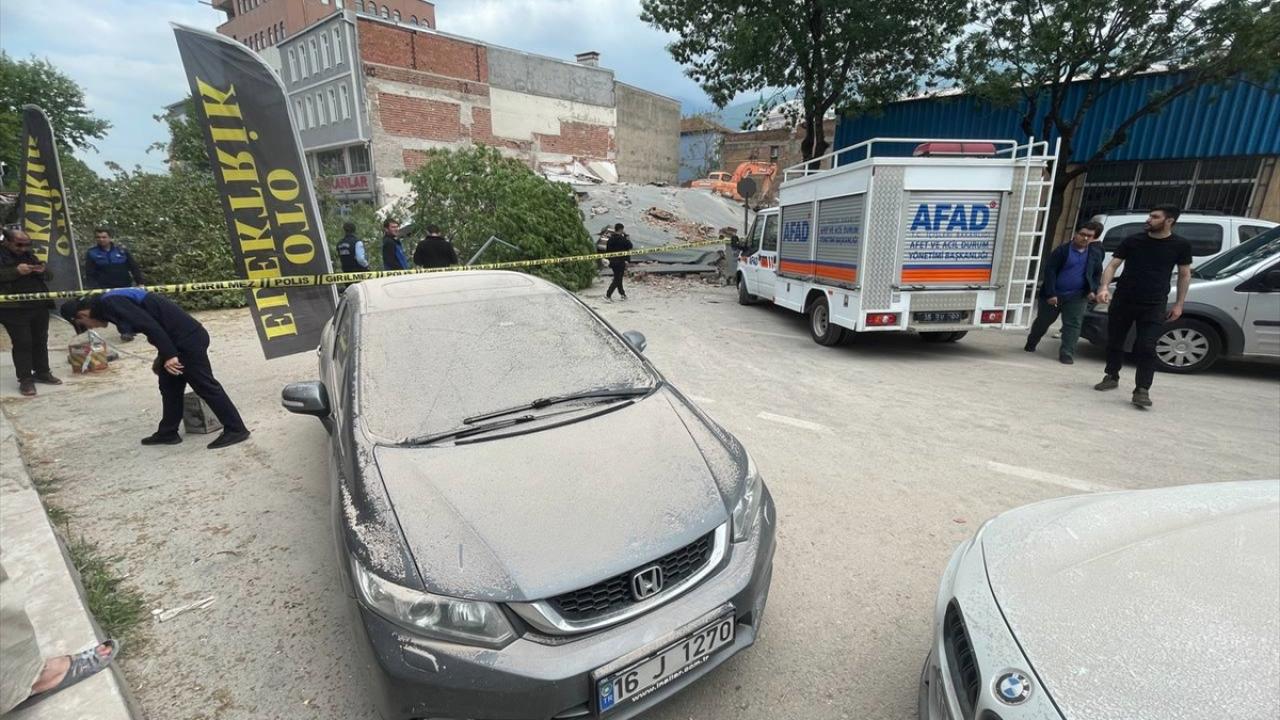 Bursa'nın Yıldırım ilçesinde kontrollü olarak yıkılan binanın caddeye devrilmesinin ardından enkazda tedbir amaçlı arama çalışması başlatıldı.