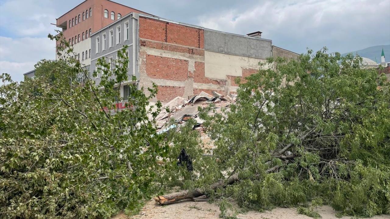 Bu sırada yıkılan 4 katlı binanın enkazı caddeye devrildi. Yıkılmanın etkisiyle bir ağaç, otomobilin üzerine düştü. Olayda 3 otomobil zarar gördü.
