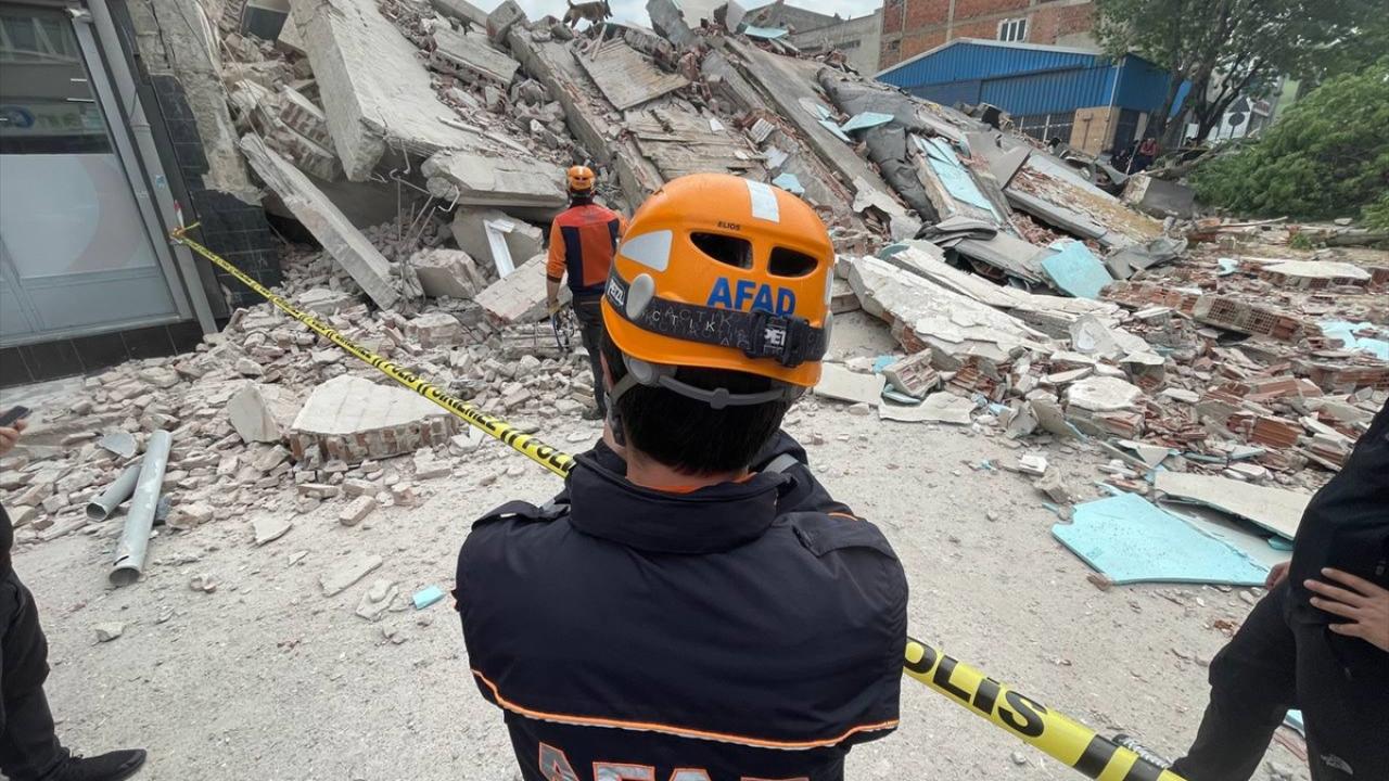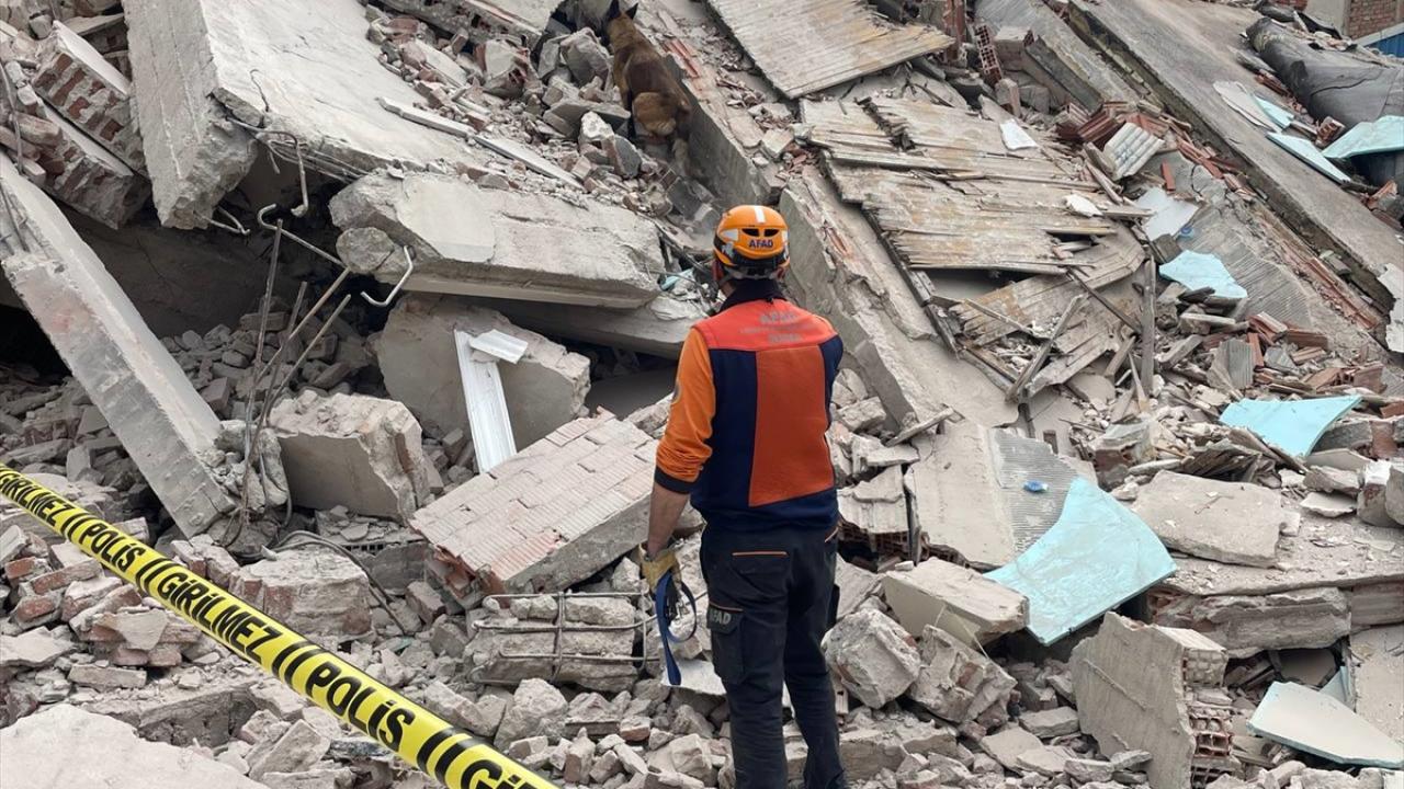 AFAD ekipleri, binanın altında kalan kişi ya da kişiler olabileceği ihtimaline karşı dedektör köpekle arama çalışması başlattı.