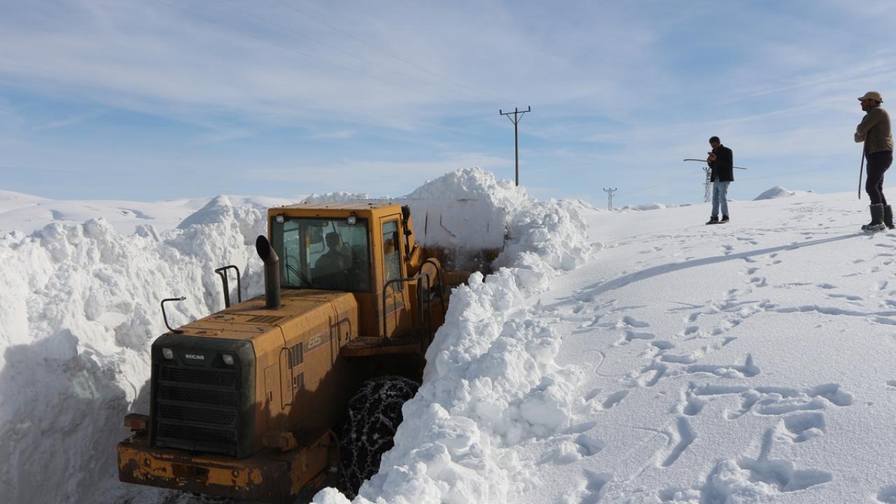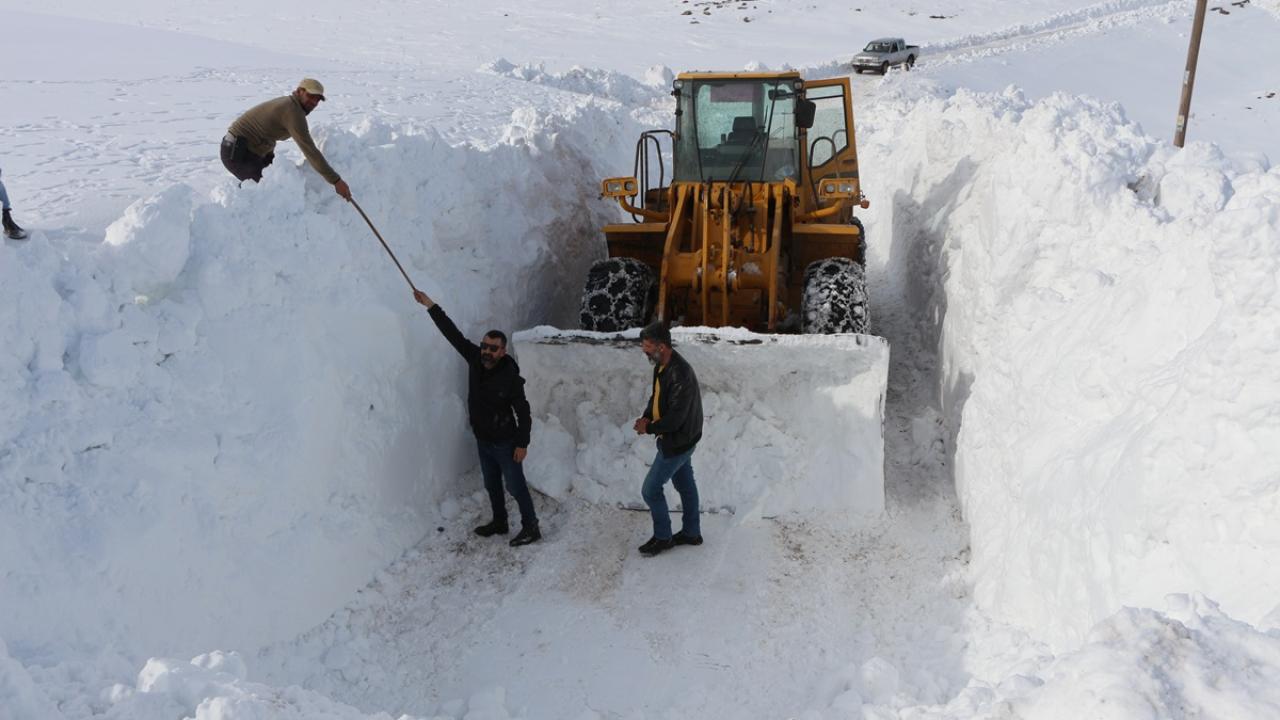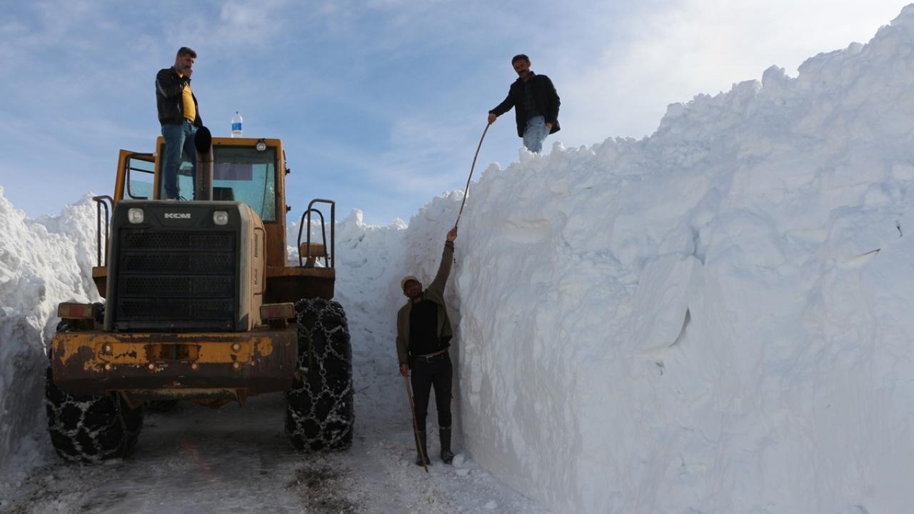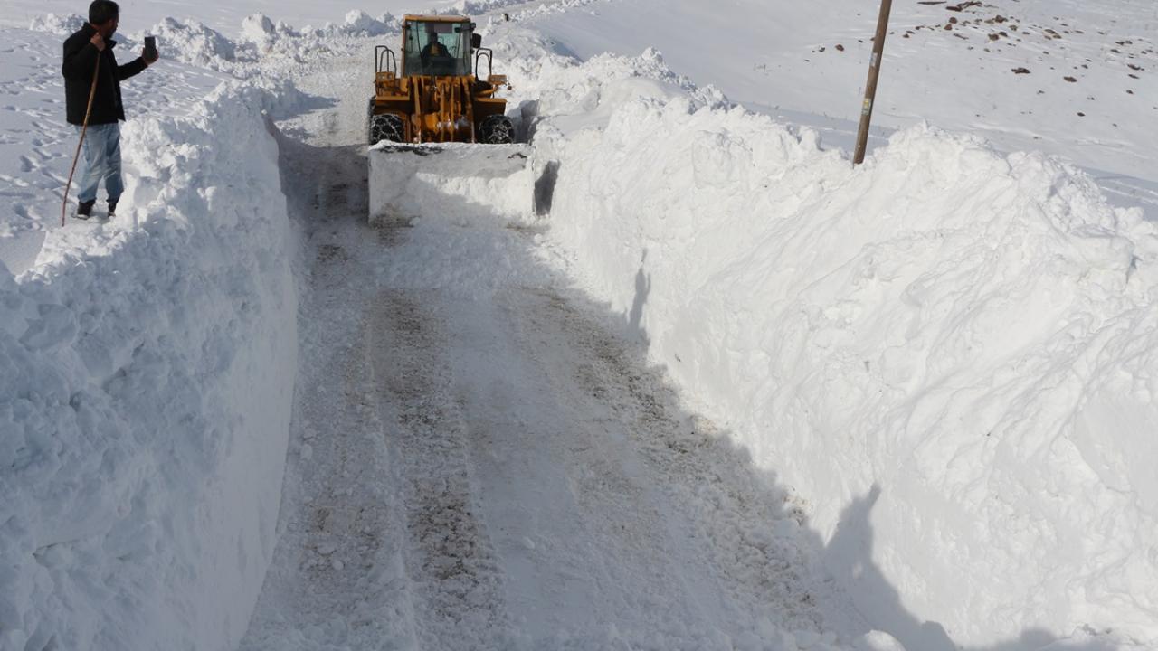 İlçe kırsalında yağışlarla birlikte kar kalınlığı iş makinelerinin boyunu aşarak yer yer 6 metreye ulaştı.