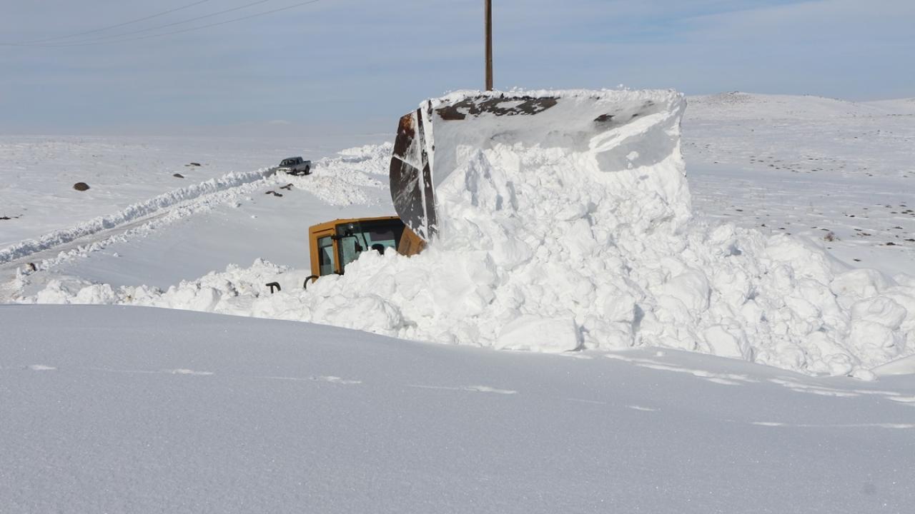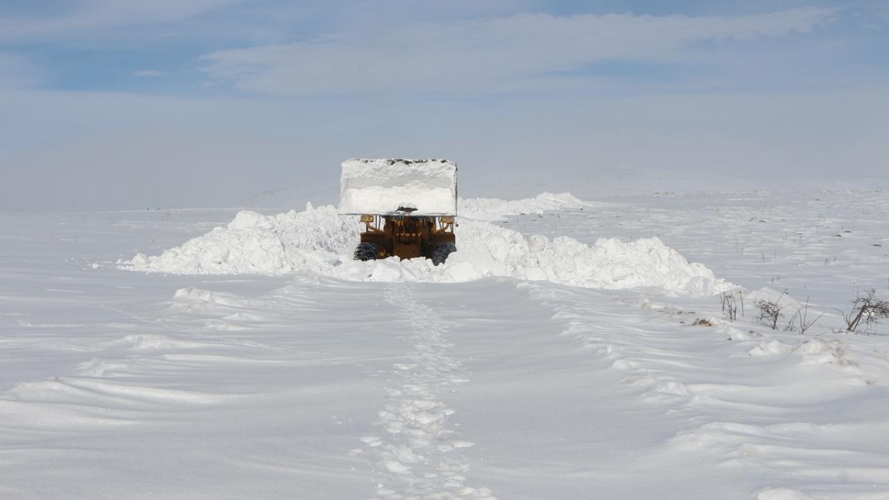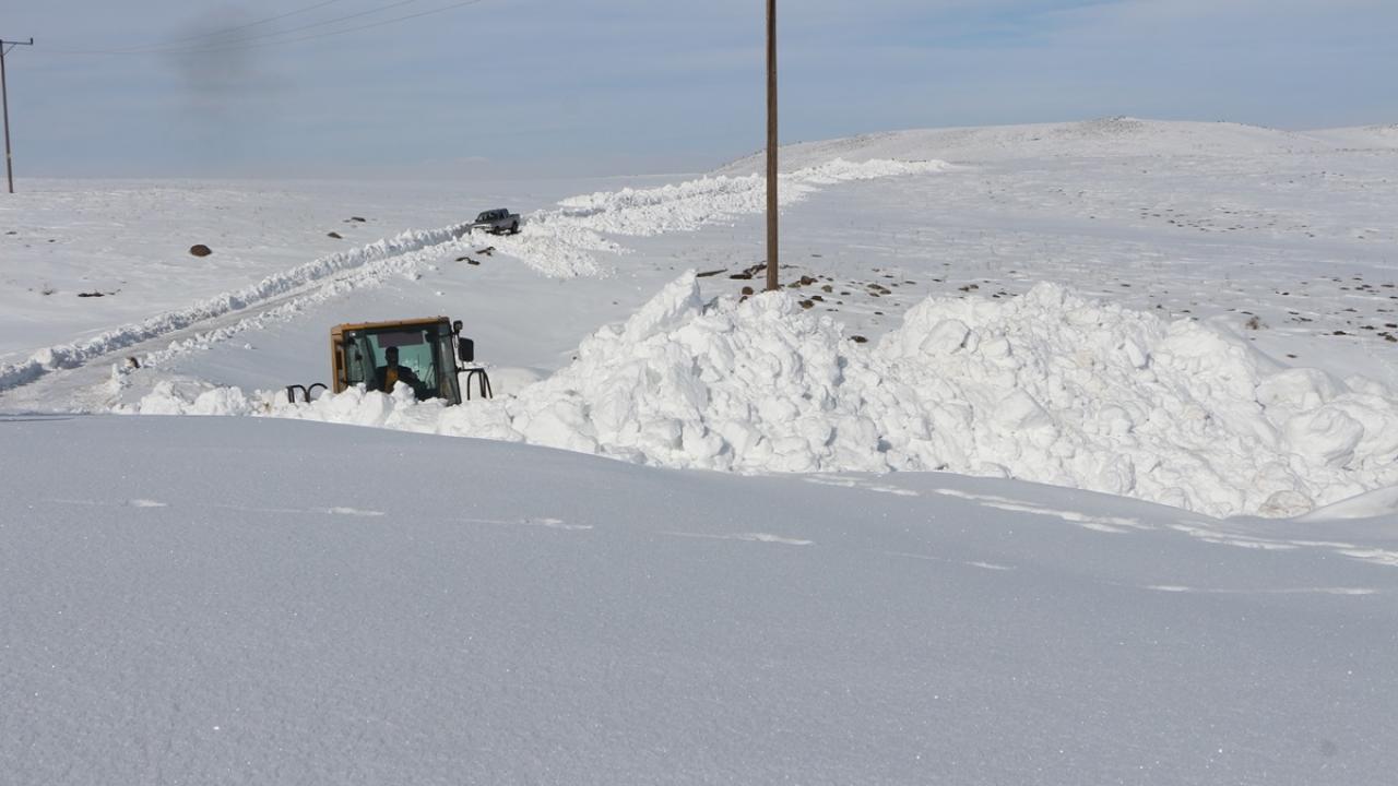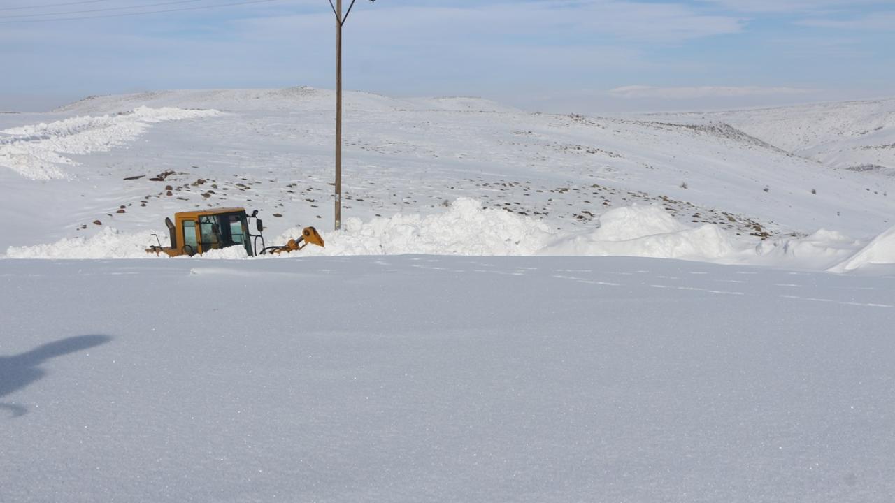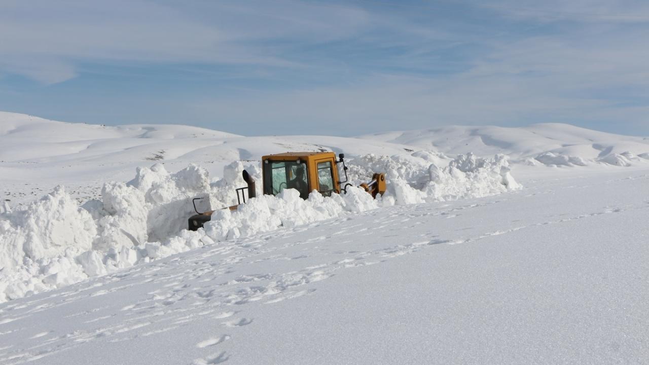 İlçe kırsalında yağışlarla birlikte kar kalınlığı iş makinelerinin boyunu aşarak yer yer 6 metreye ulaştı.
