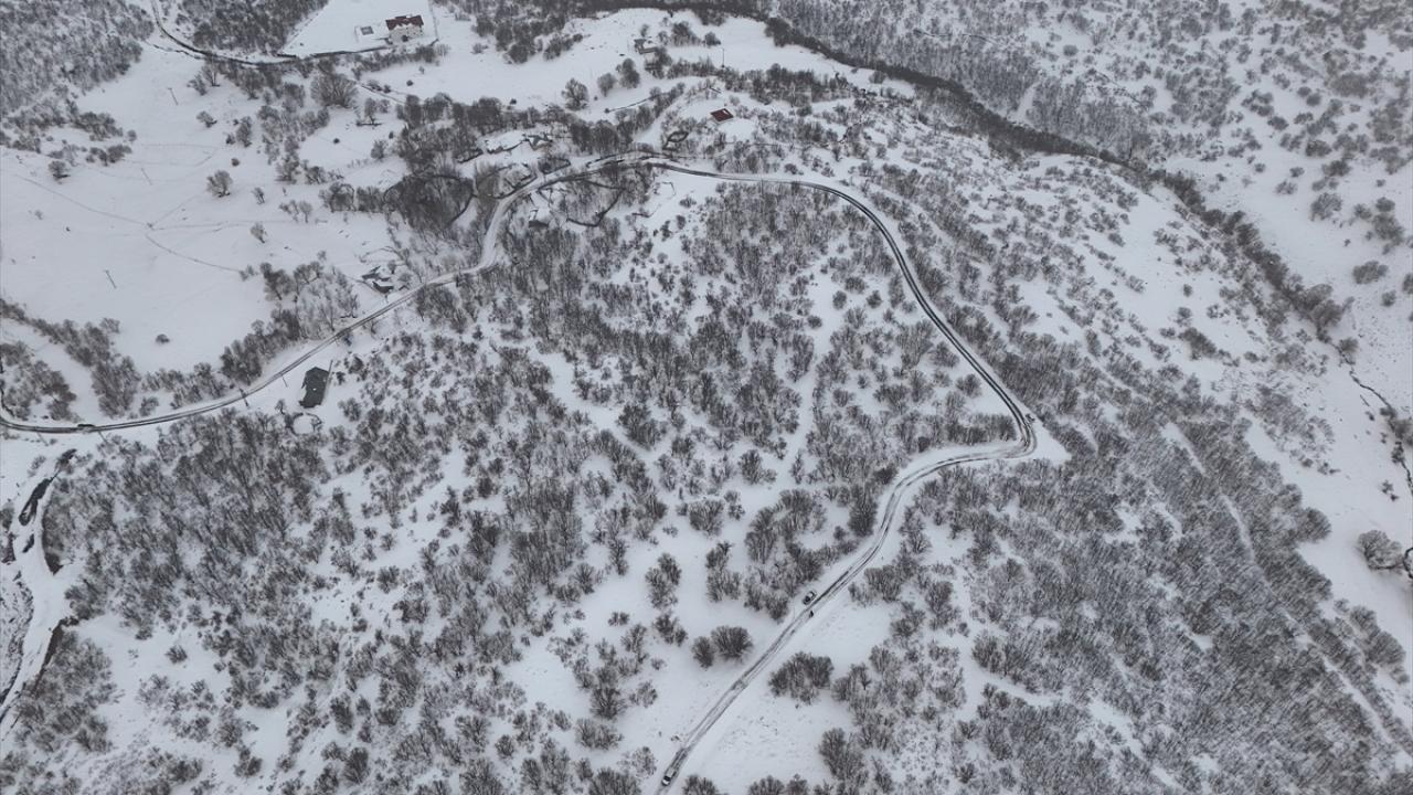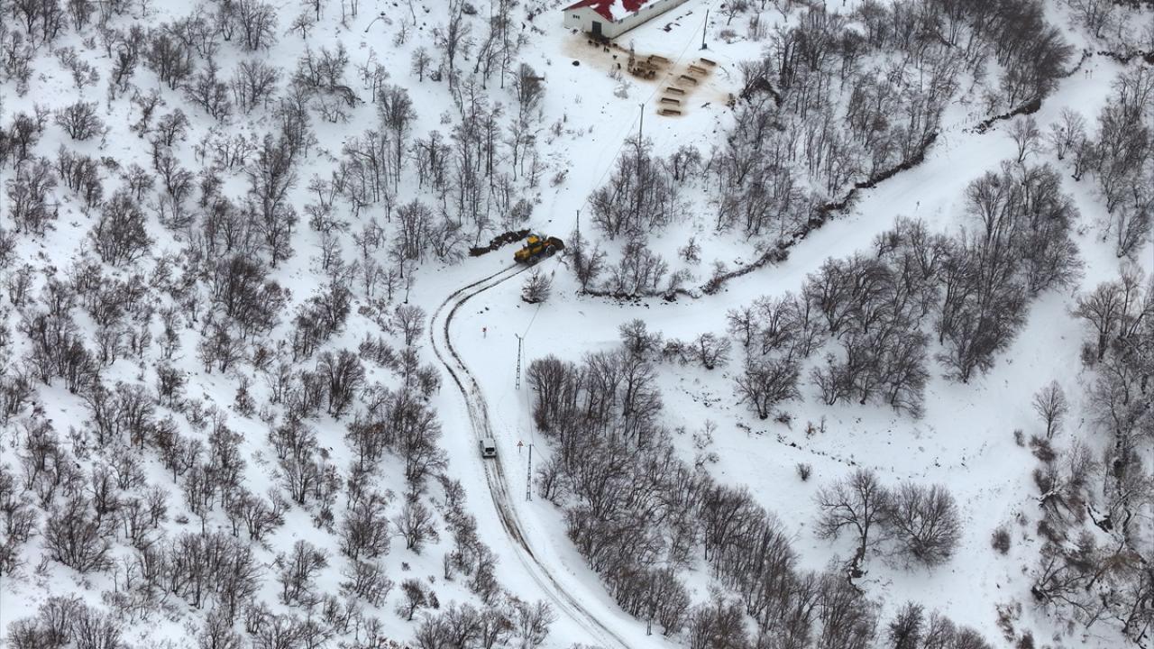 Ekiplerin 77 köy yolunun açılması için sürdürdüğü çalışmalar dronla görüntülendi.