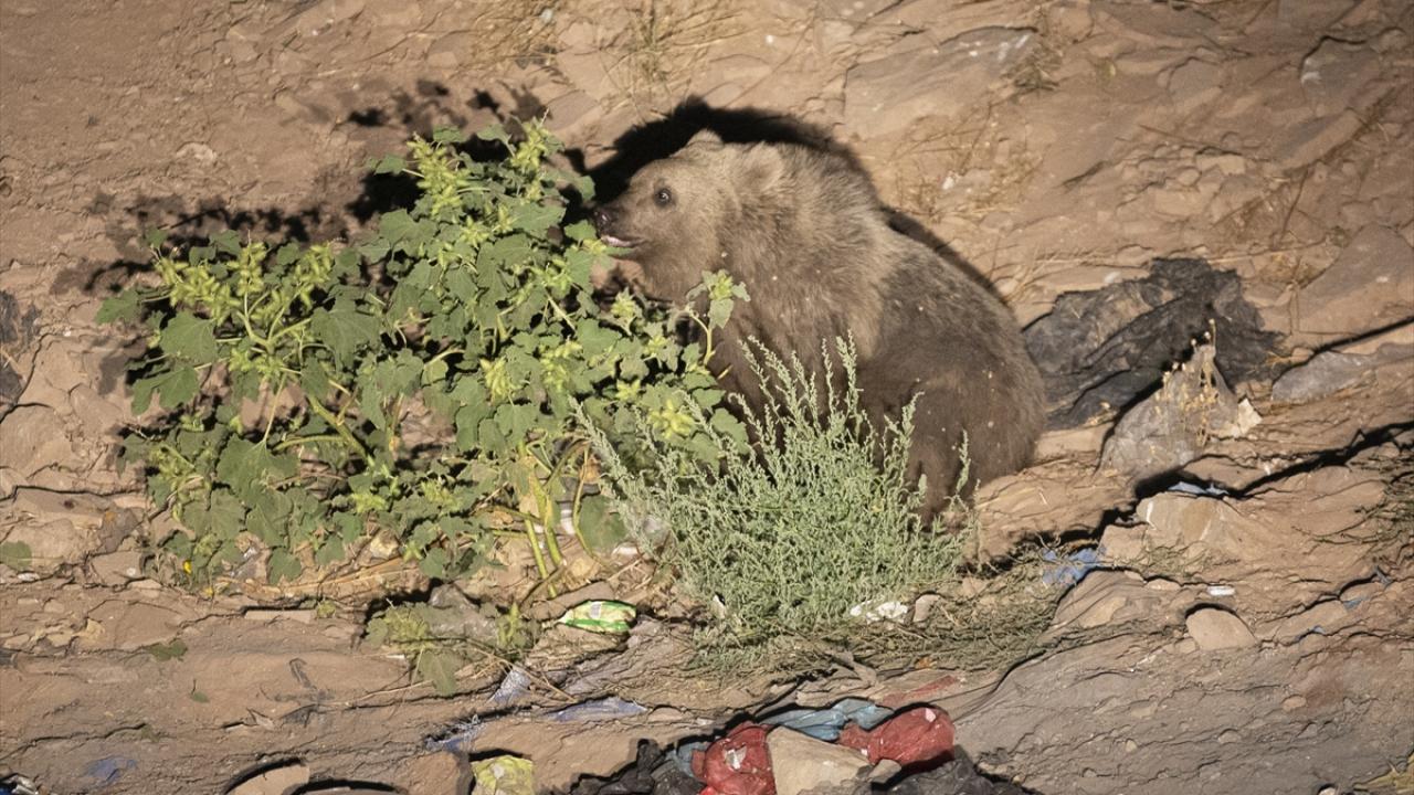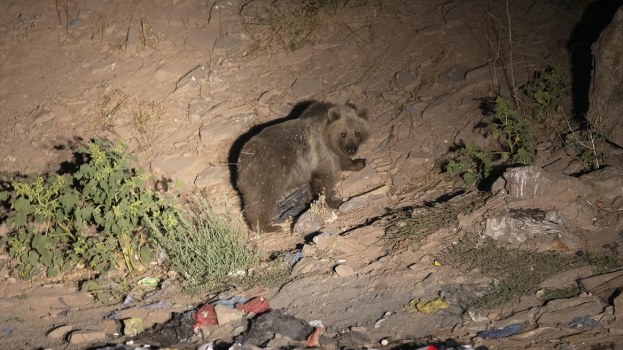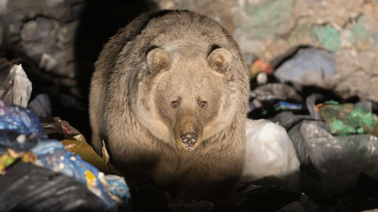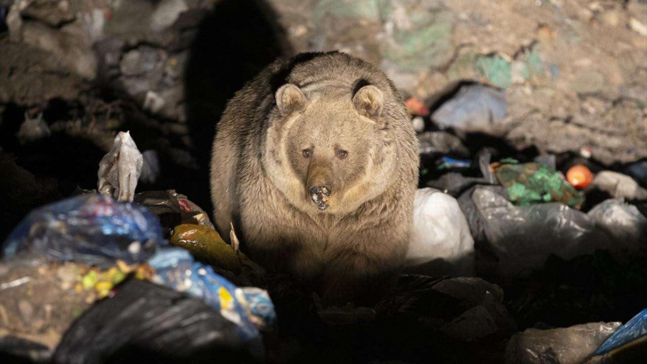Gece saatlerinde bozayı ve tilkiler dağlık alandan yiyecek bulabilmek için çöplüğe iniyor.