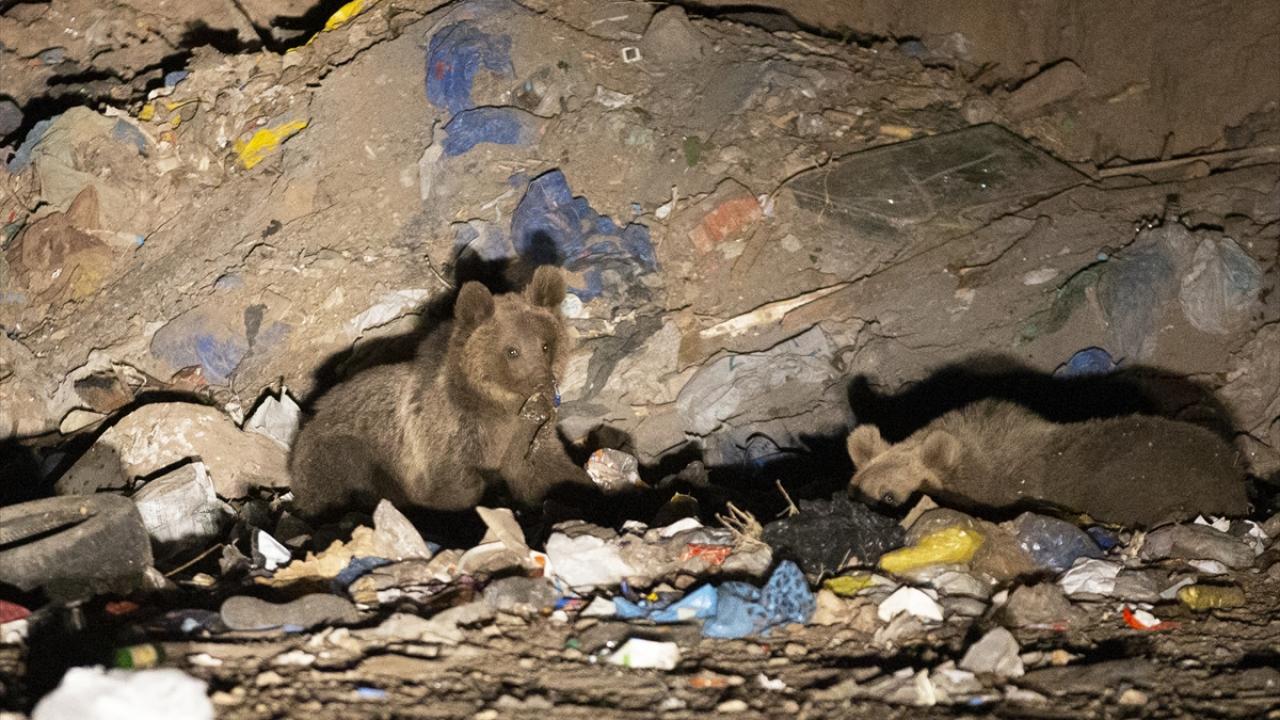 Bingöl'ün Kiğı ilçesinde yavrularıyla çöplükte beslenen bozayı ailesi kameraya yansıdı.