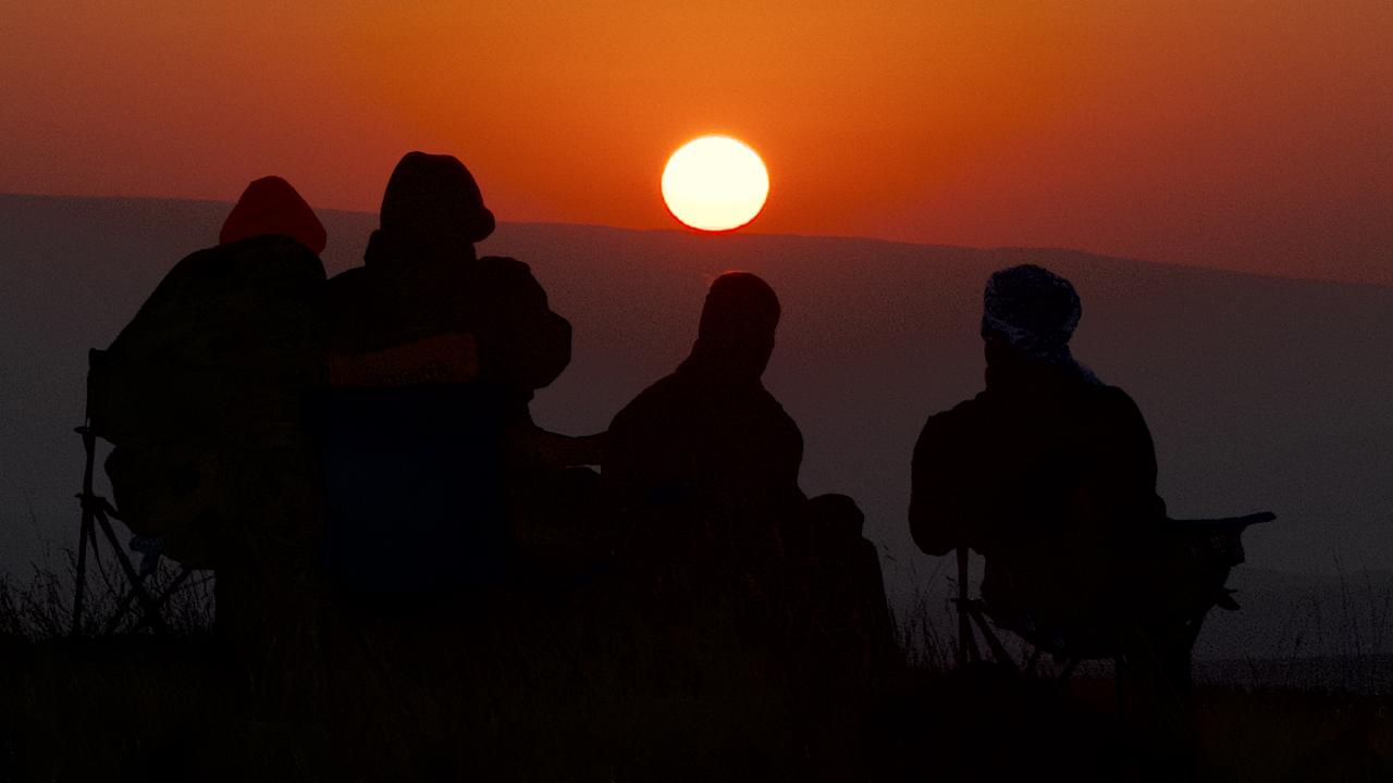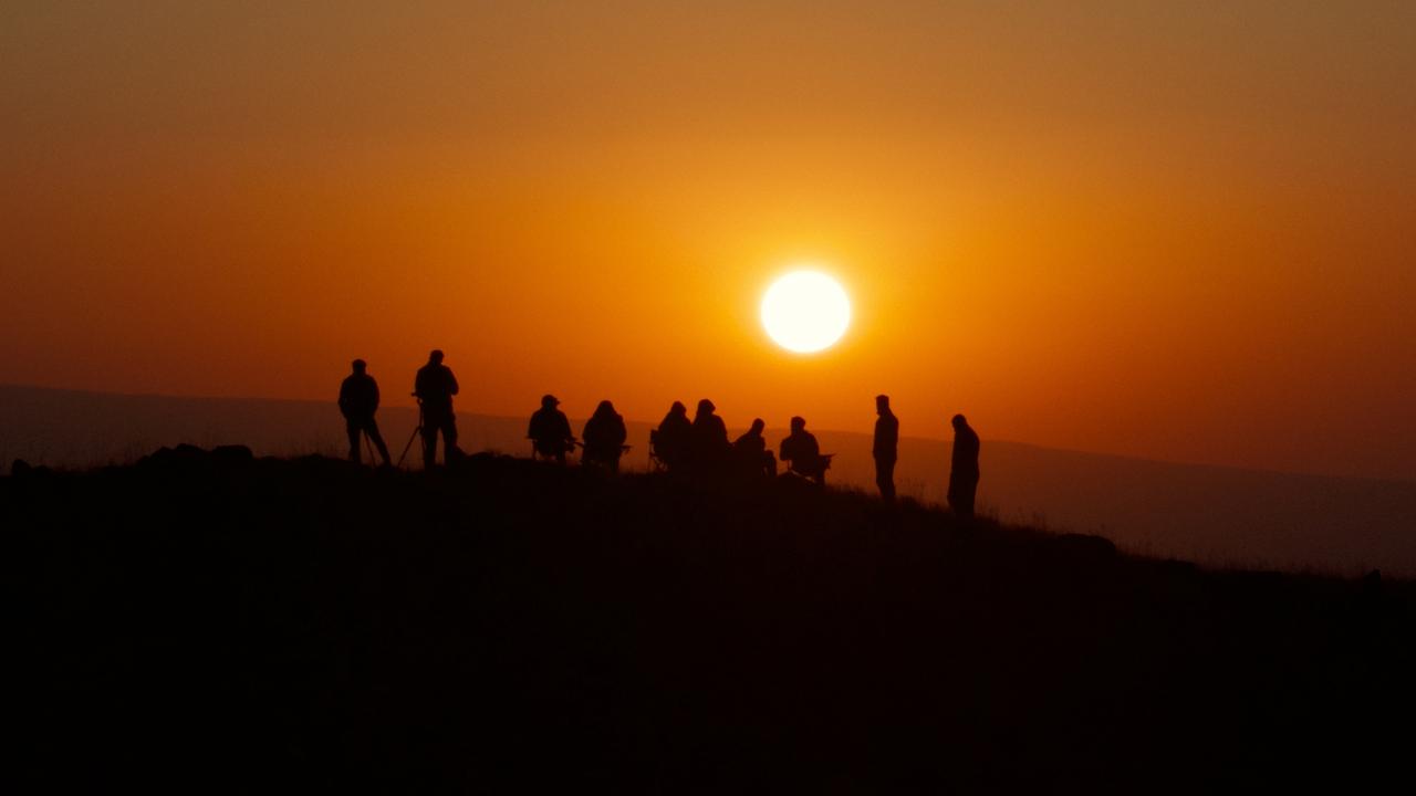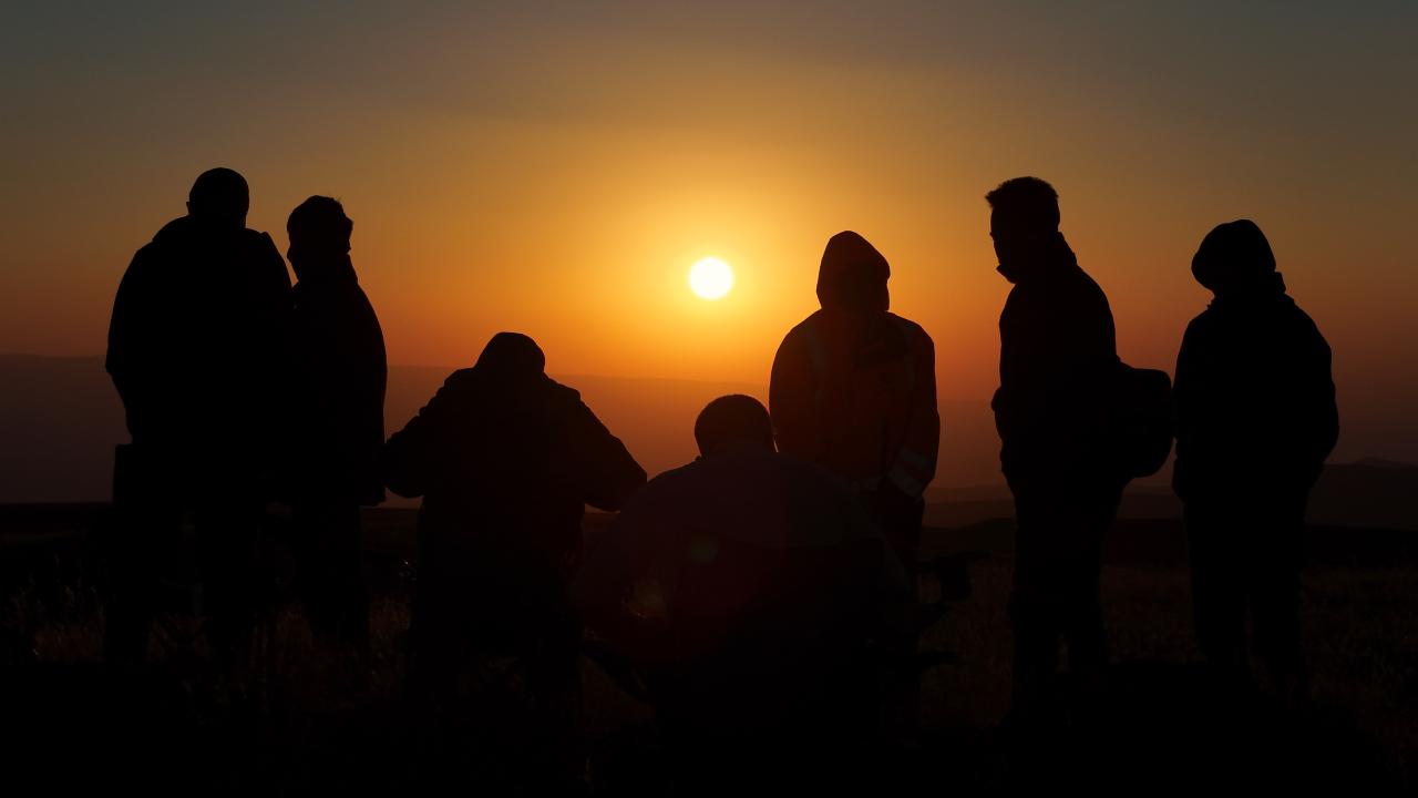 Arazi aracıyla yaklaşık 8 kilometrelik zorlu yolculuğun ardından zirveye çıkan köy sakinleri, ilk olarak gün batımını izliyor ve güneşin doğuşunu görebilmek için geceyi dağın zirvesinde geçiriyor.