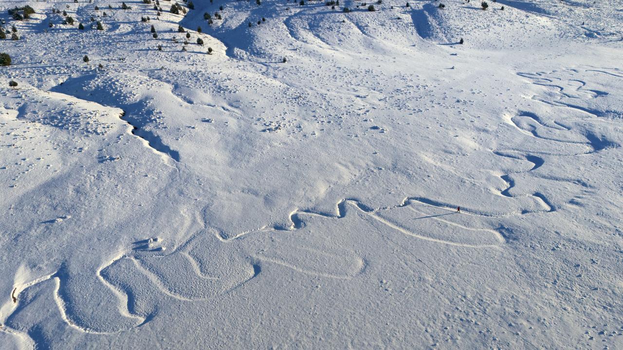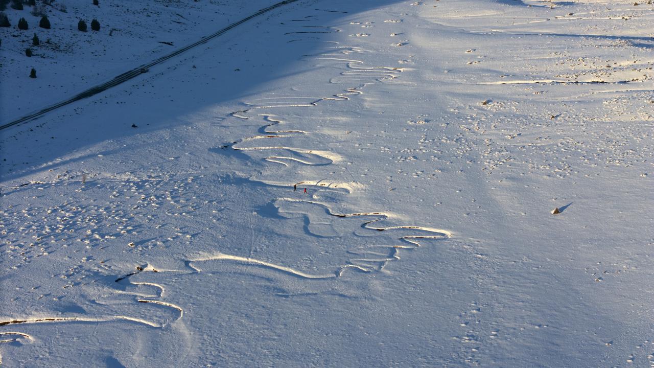 Bingöl'ün yüksek rakımlı bölgesinde karla kaplanan menderesler dronla görüntülendi.