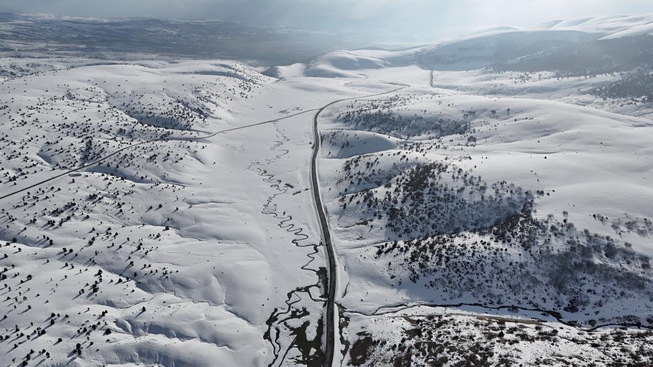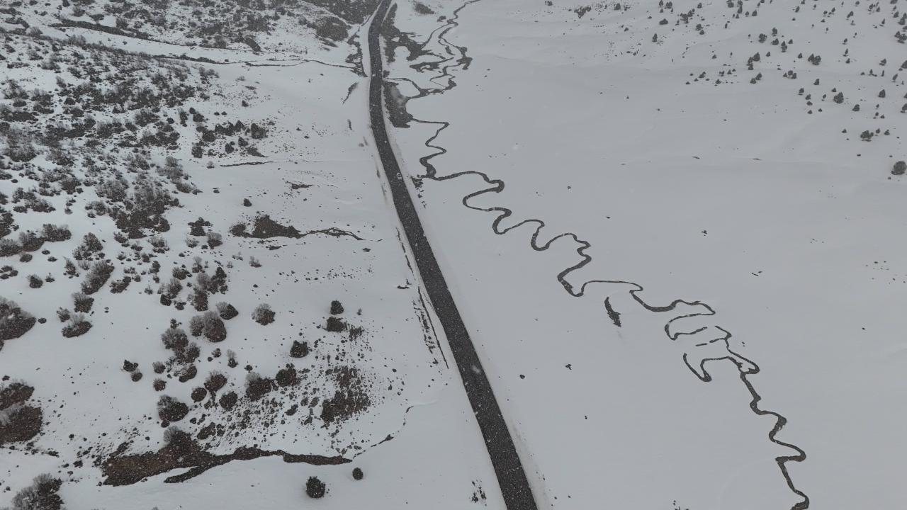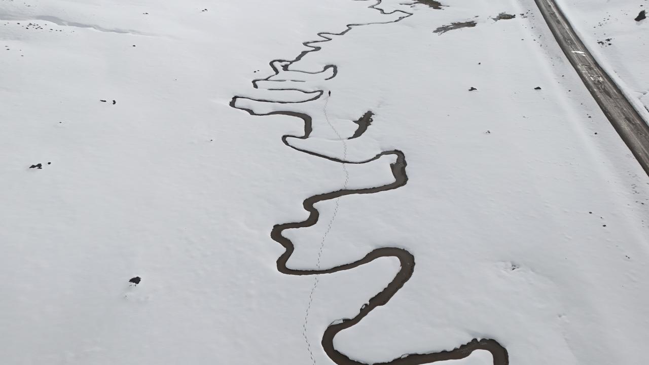 Bingöl'ün yüksek rakımlı bölgesinde karla kaplanan menderesler, kış aylarında fotoğraf tutkunlarına eşsiz kareleri yakalama fırsatı sunuyor. Beyaza bürünen menderesler dron ile havadan görüntülendi