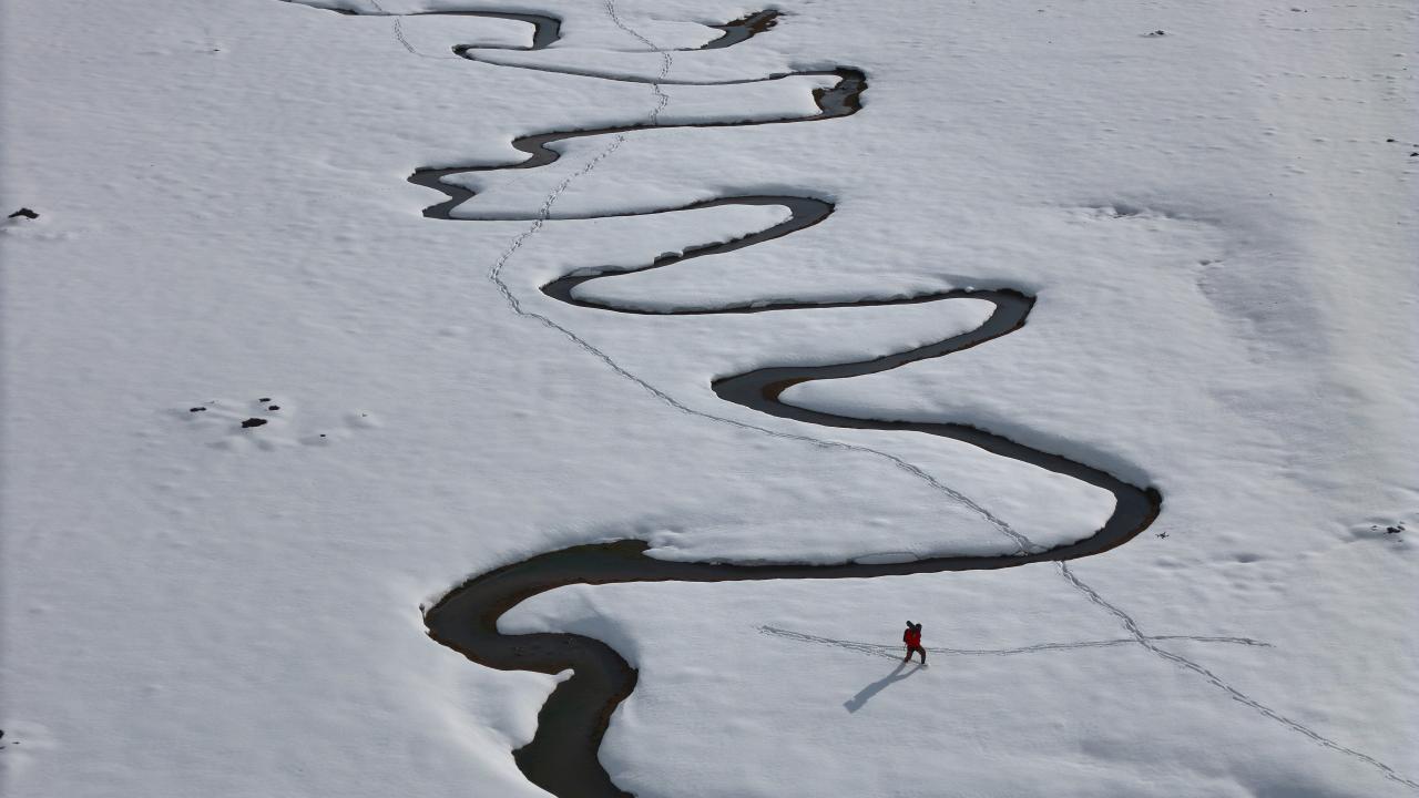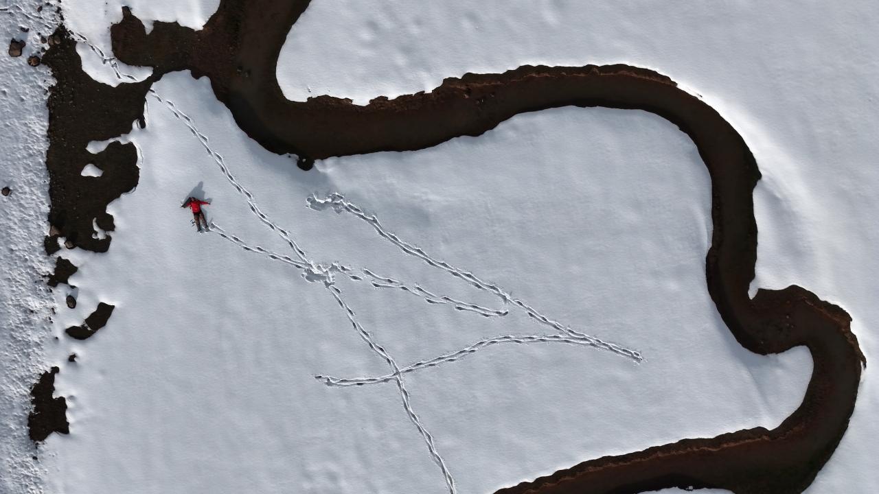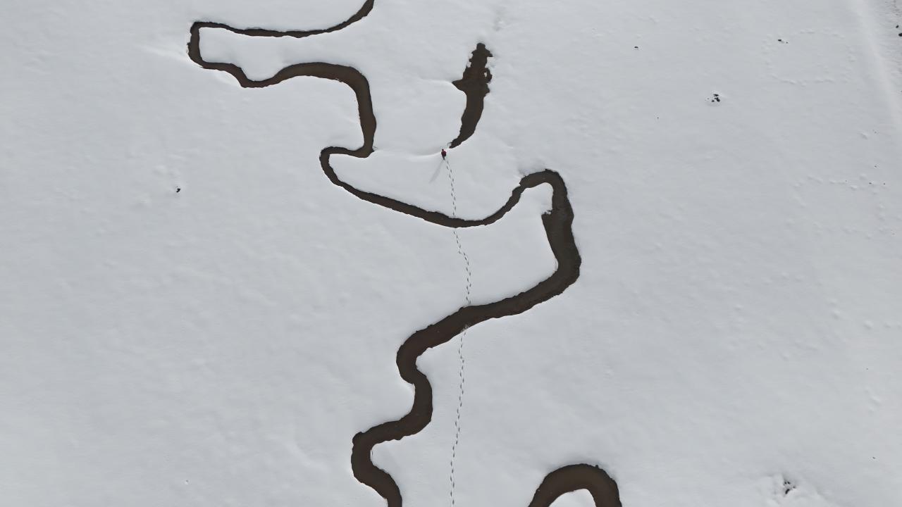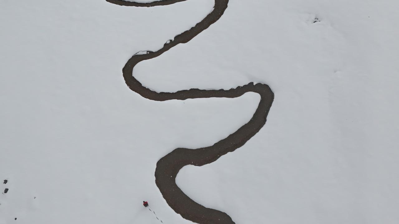 Bingöl'ün yüksek rakımlı bölgesinde karla kaplanan menderesler, kış aylarında fotoğraf tutkunlarına eşsiz kareleri yakalama fırsatı sunuyor. Beyaza bürünen menderesler dron ile havadan görüntülendi